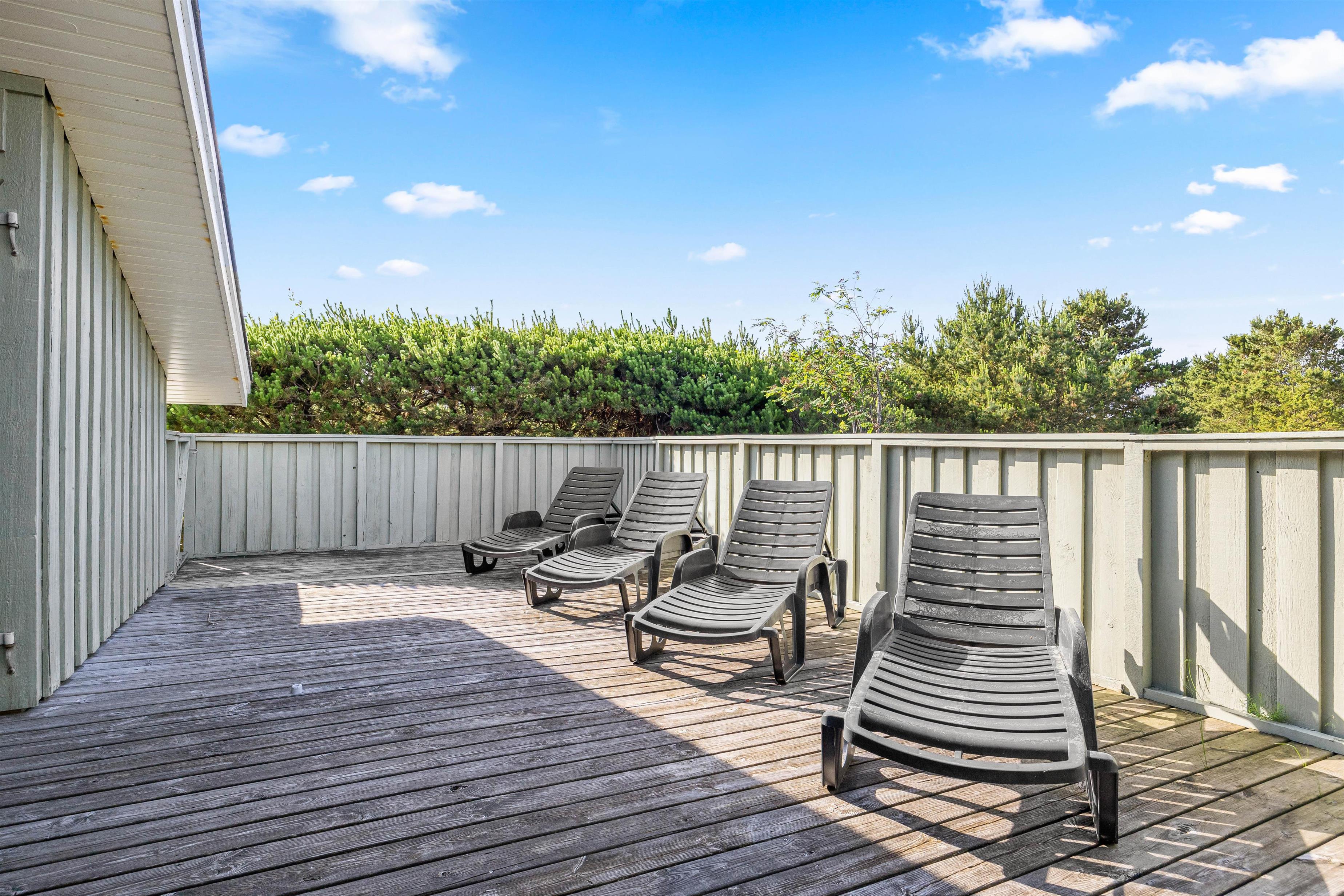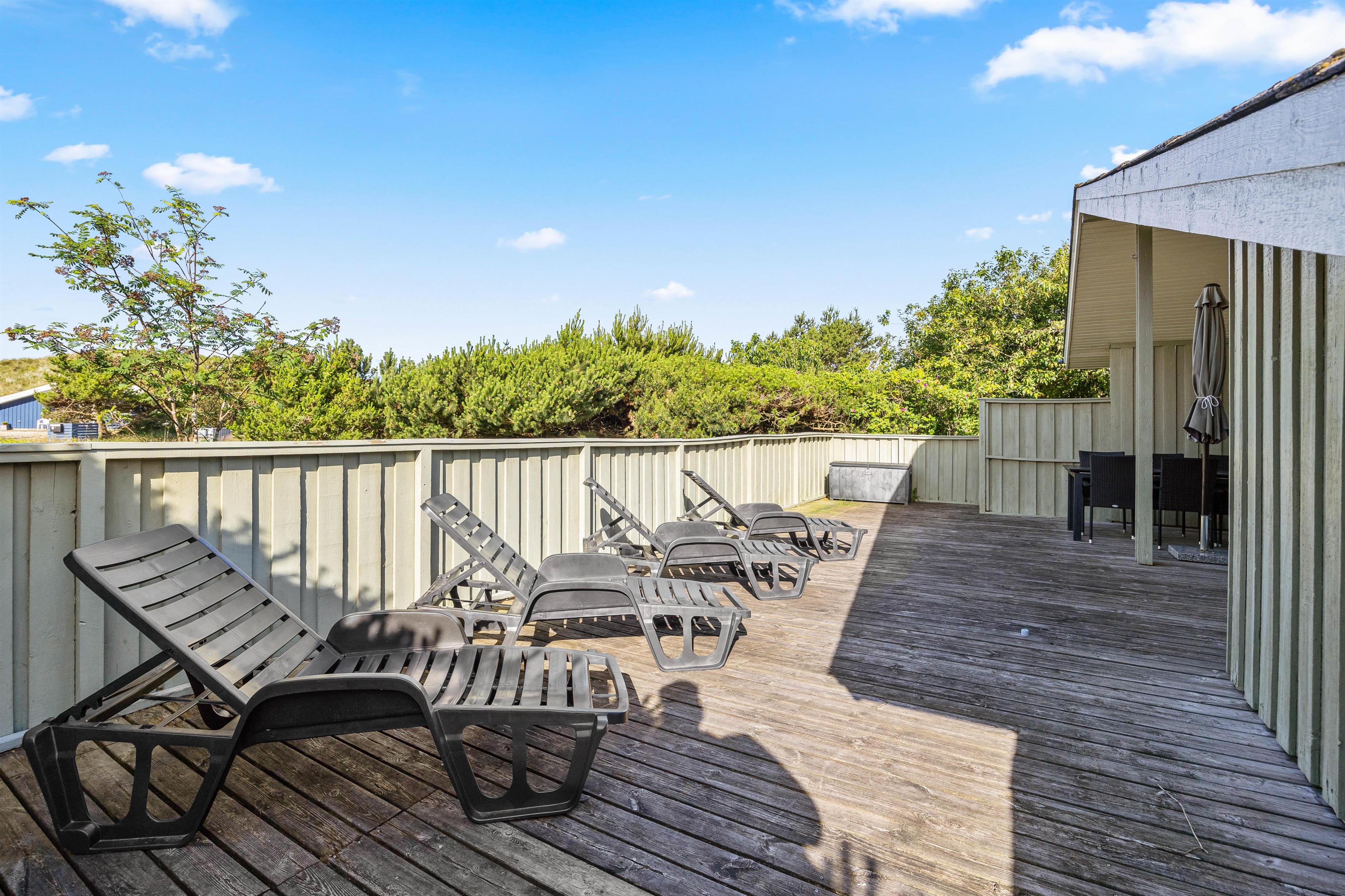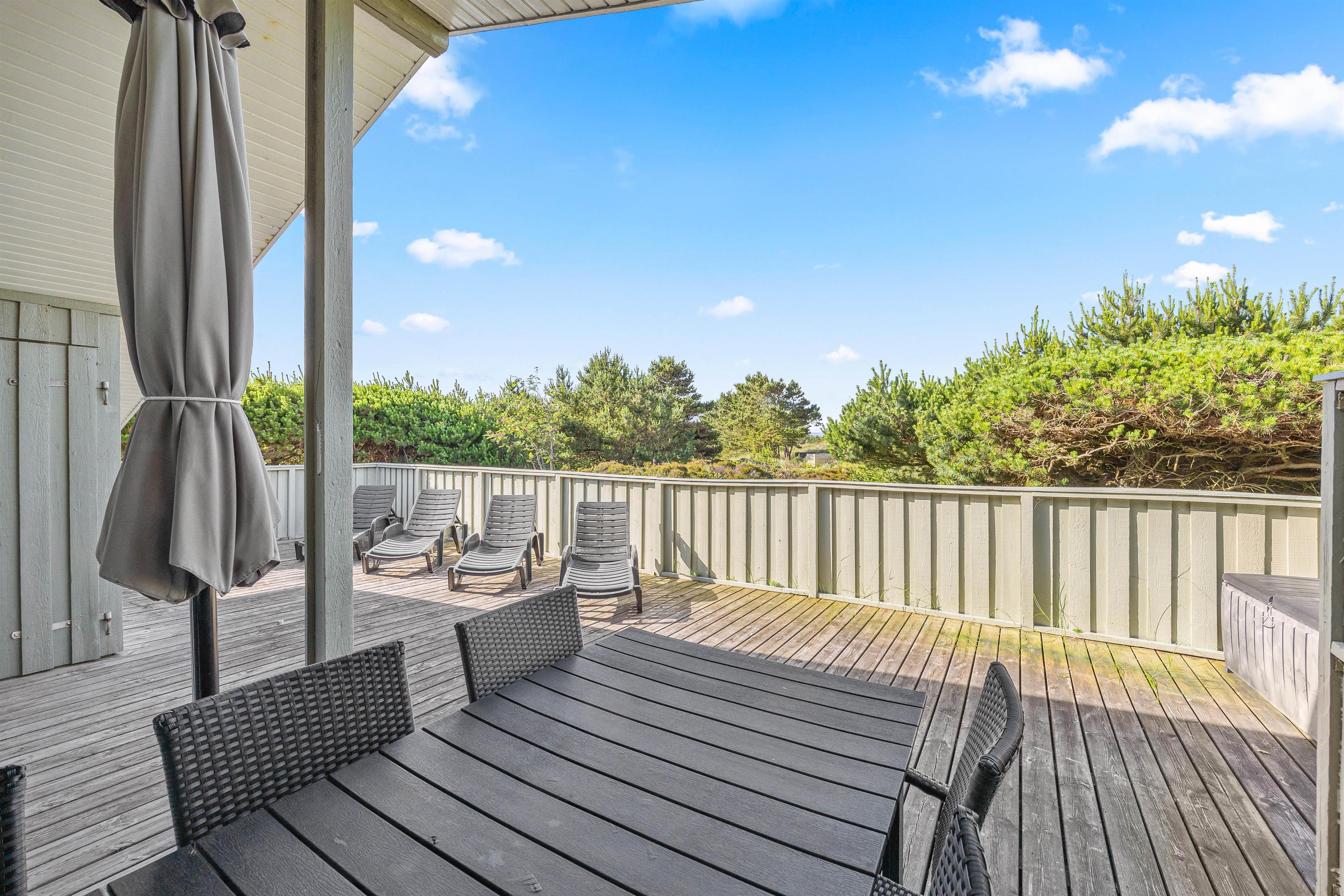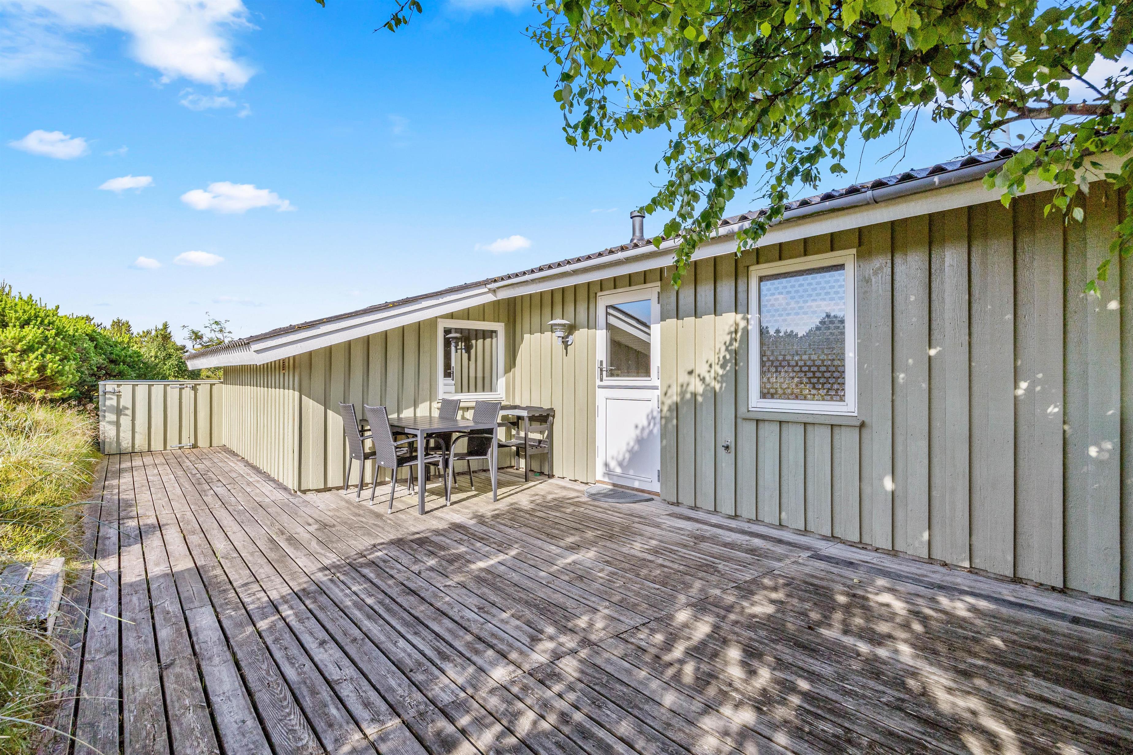 Afslapning under åben himmel er der rig mulighed for her. Feriehuset har en dejlig lukket terrasse, hvor I kan nyde solen. Her kan hunden også bevæge sig frit rundt. Havemøblerne står klar, og her kan I nyde morgenkaffen eller aftensmaden. Aftensmaden kan nydes under den overdækkede terrasse og skal naturligvis tilberedes på grillen.