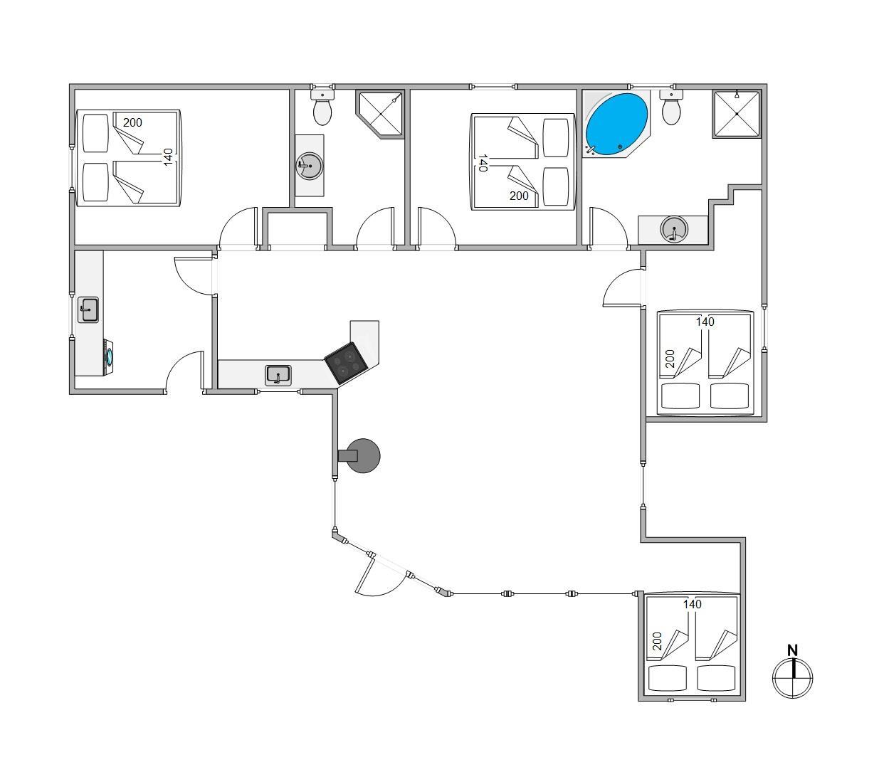 De 3 soveværelser er hver især indrettet med en dobbeltseng på 140 x 200 cm, så alle gæster får en god nattesøvn. Derudover er der en hyggelig alkove med de resterende 2 sovepladser.