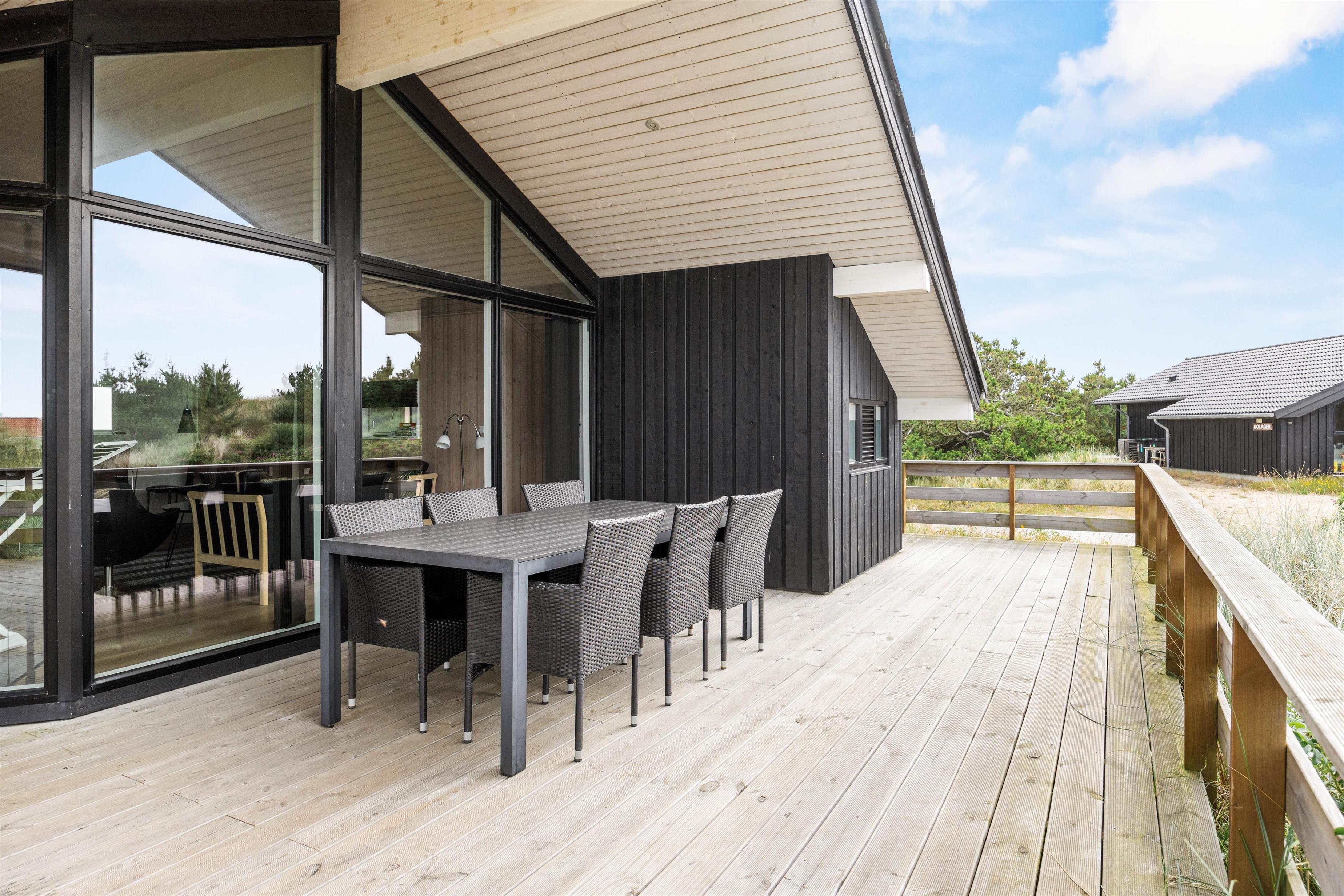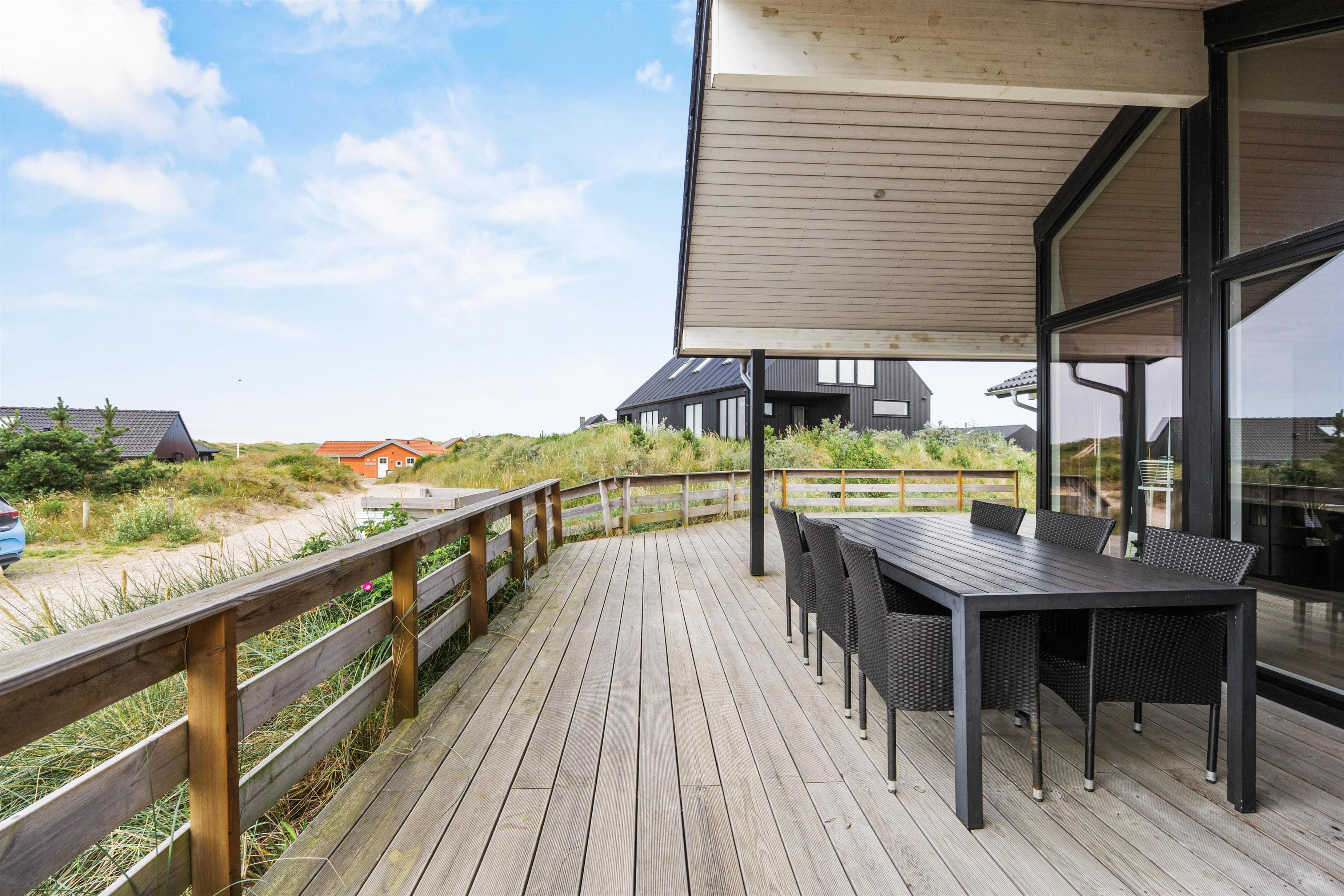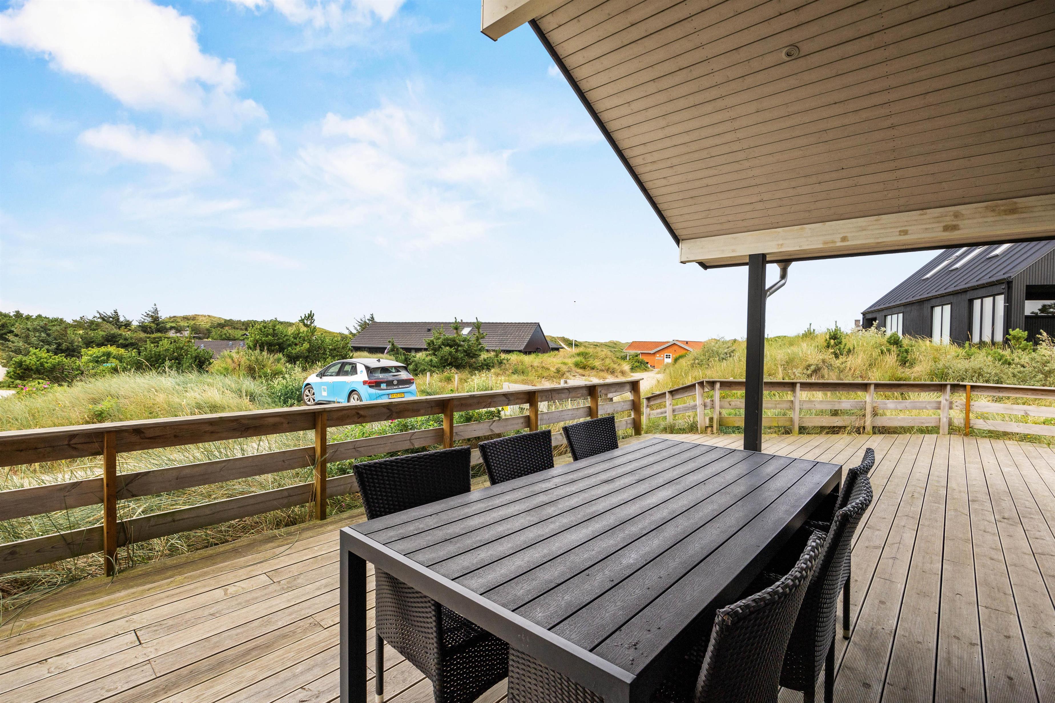 Udendørs kan I nyde den friske havbrise på en af de 3 terrasser: en afskærmet, en overdækket og en åben terrasse, der alle indbyder til afslapning. Om aftenen kan I nyde en lækker grillmiddag og roligt lade dagen rinde ud. Nyd de endeløse sommerdage eller den fantastiske stjernehimmel om efteråret.