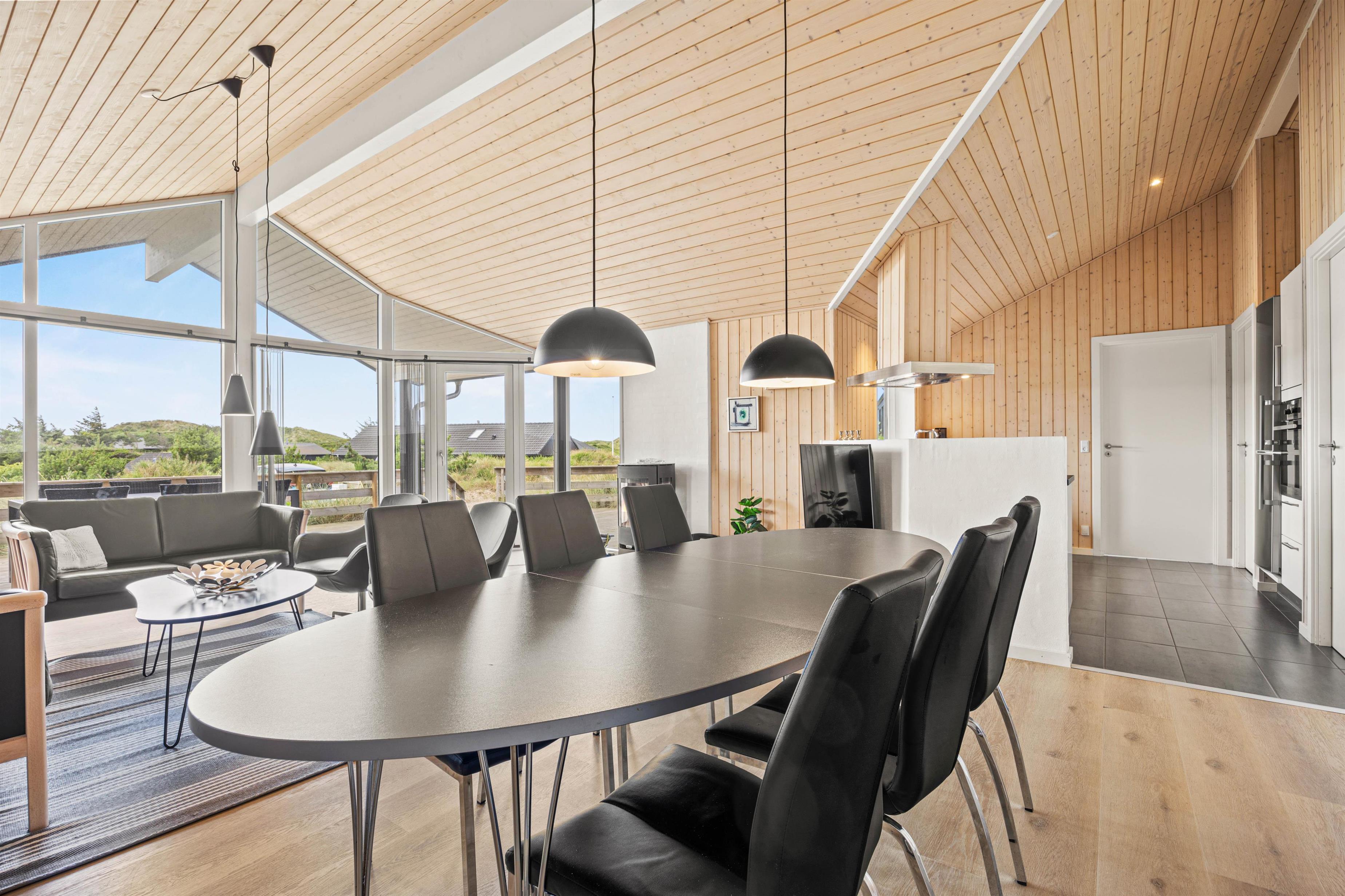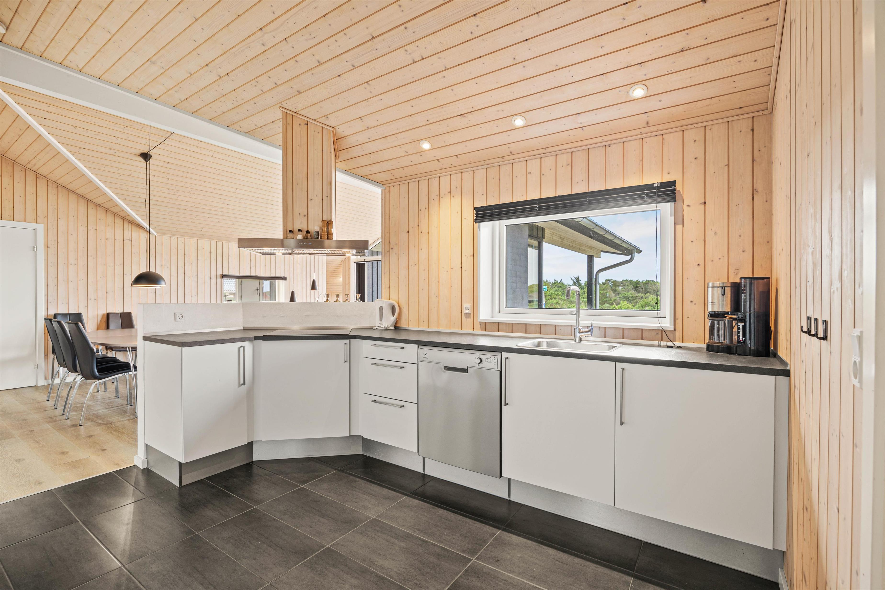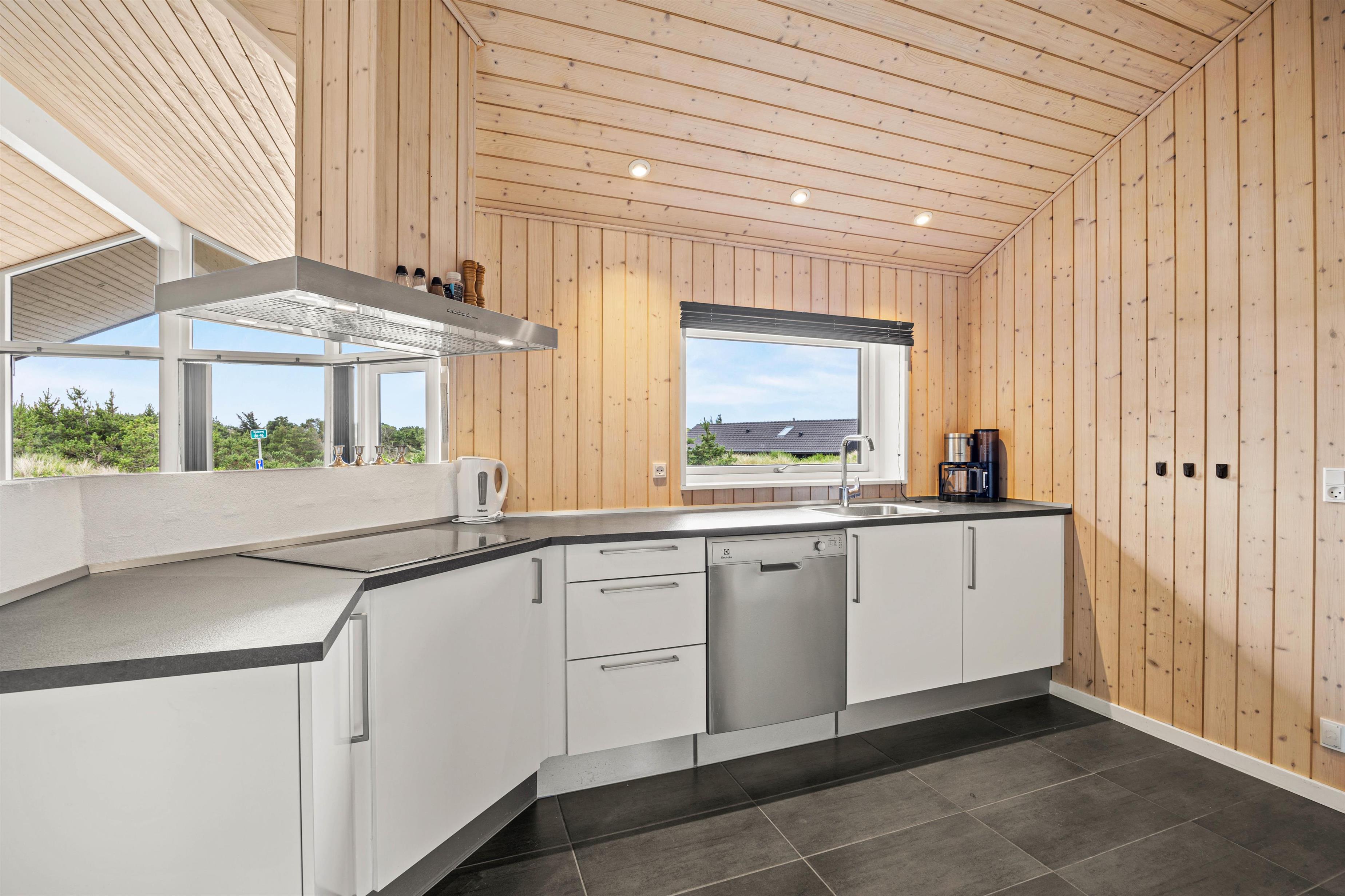 Den åbne planløsning skaber en behagelig atmosfære. Spiseområdet har god plads til alle gæster, og her kan I nyde hyggelige stunder sammen. Køkkenet er godt udstyret, så I kan tilberede lækre måltider i fællesskab, og bagefter kan I nyde fordelene ved den integrerede opvaskemaskine, der klarer det kedelige arbejde for jer.