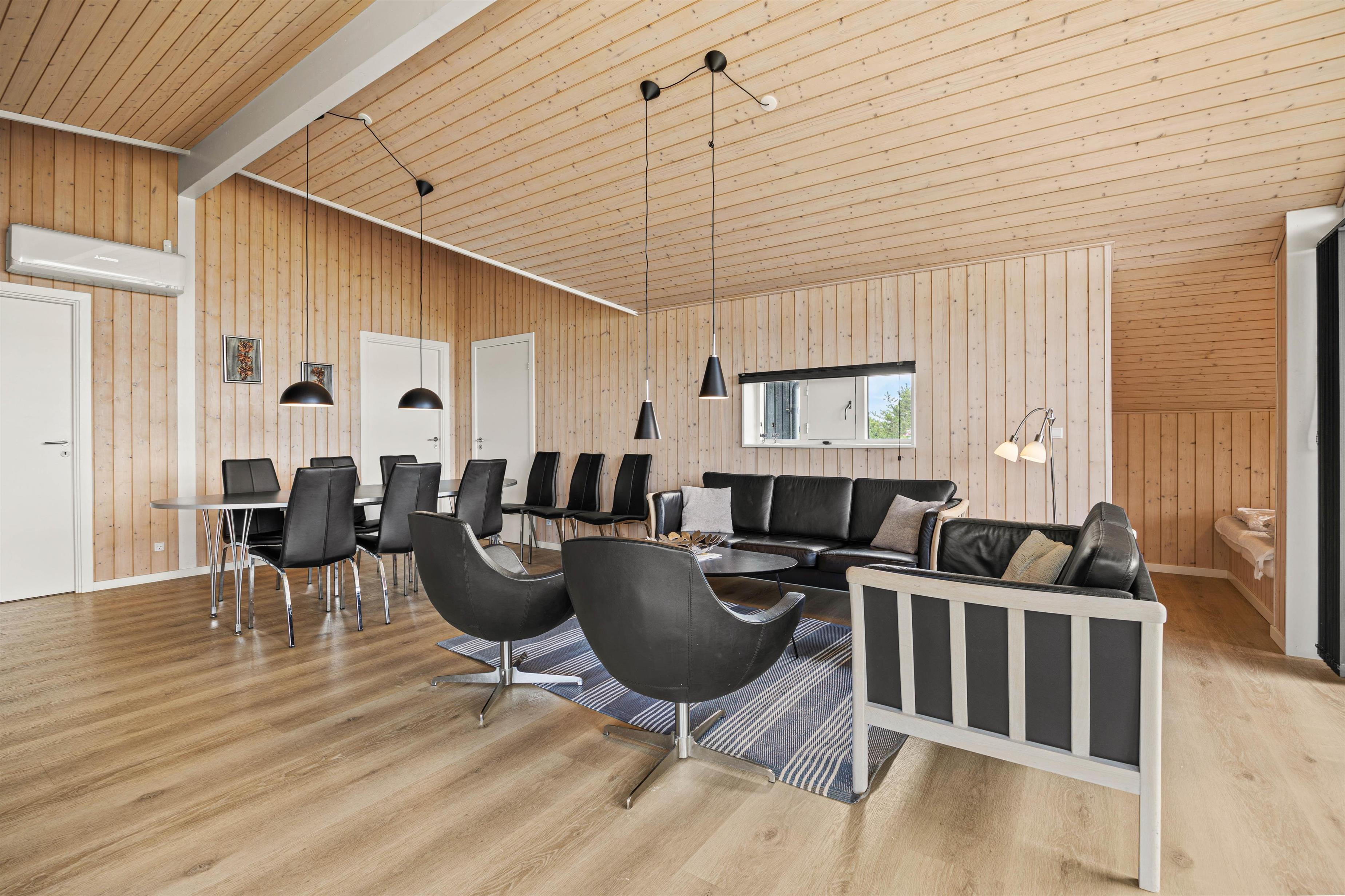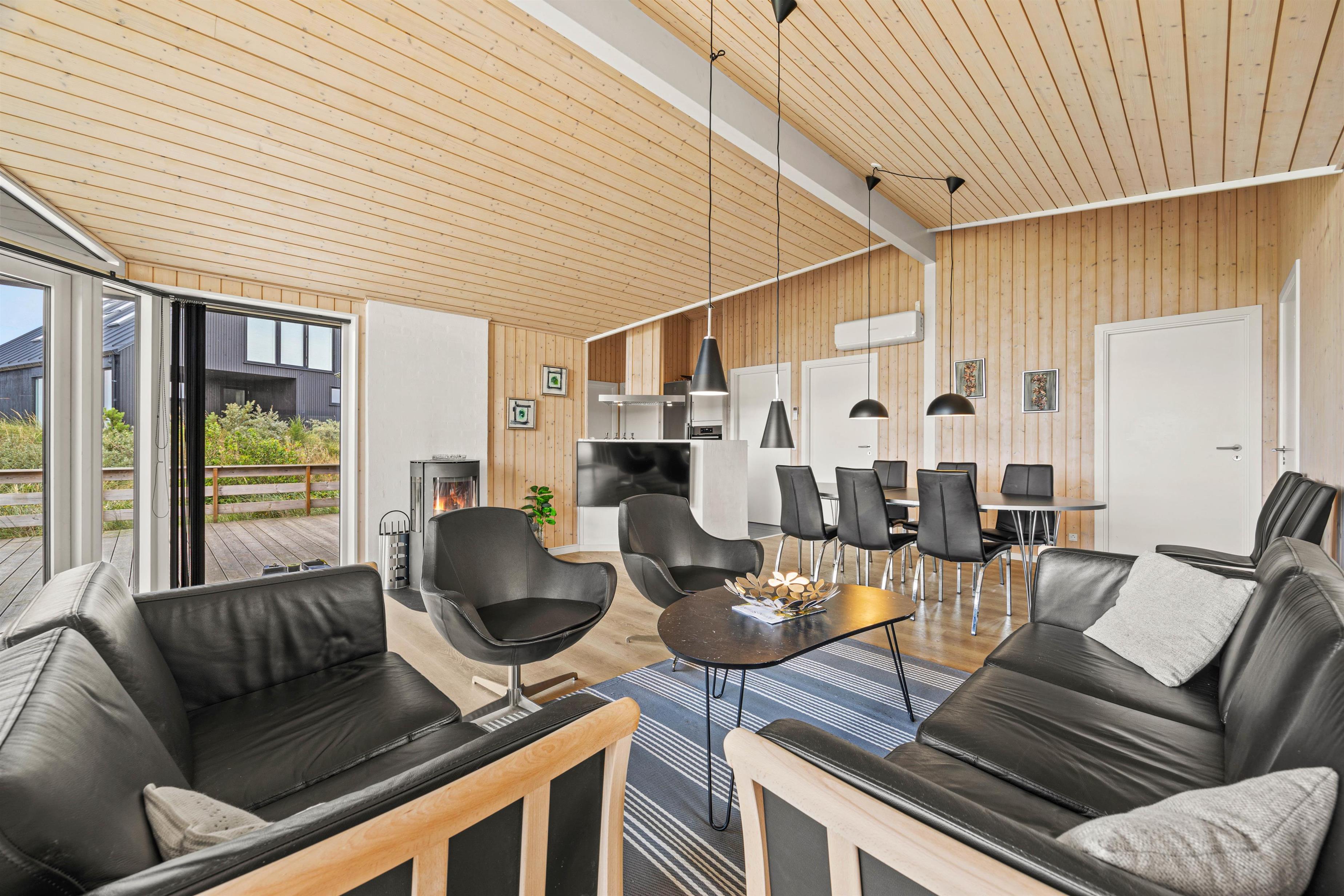 Stuen er indrettet med en brændeovn, der sørger for rolige stunder og behagelig varme, især på køligere aftener. I de komfortable sofa- og lænestolsgrupper kan I slappe af, læse en bog eller bare nyde tiden sammen. Indretningen udstråler ro og hygge, så I hurtigt vil føle jer hjemme. For at skabe et behageligt indeklima i stuen, er der installeret en energibesparende varmepumpe.