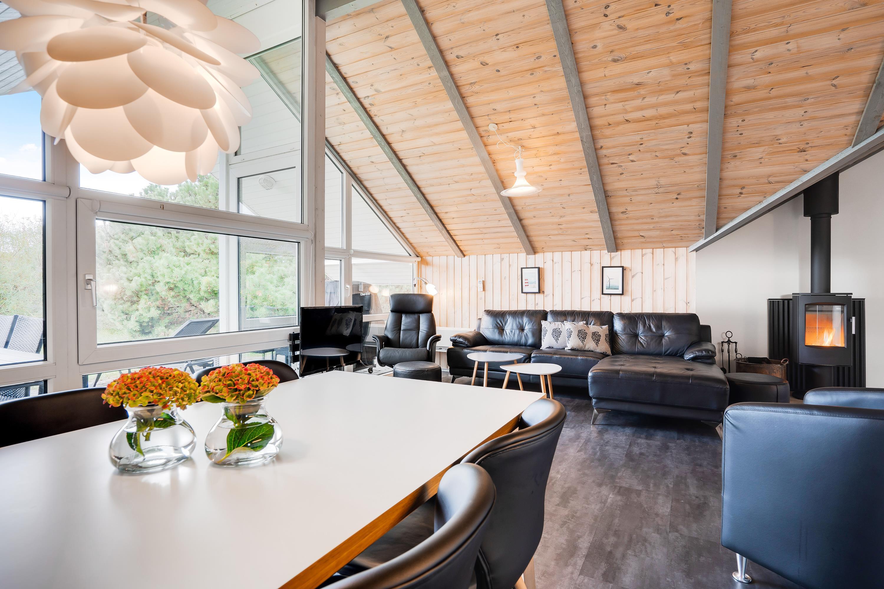 På Rylevej 13 er det rigtigt nemt at hygge sig og komme hinanden ved. Med det åbne samtalekøkken kan alle være med, når der laves mad, og man kan allerede inden spisetid have gang i en interessant samtale og en god flaske vin. At tage en tur i saunaen eller husets spa, før I afslutningsvis kigger en godnatfilm eller hygger med en god bog foran brændeovnen, er den perfekte afslutning på en perfekt feriedag.