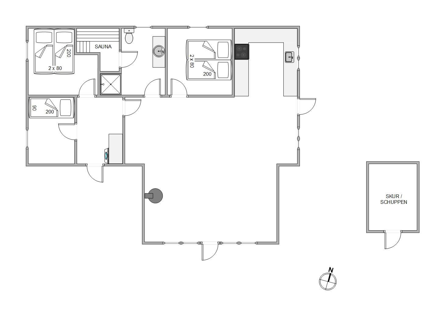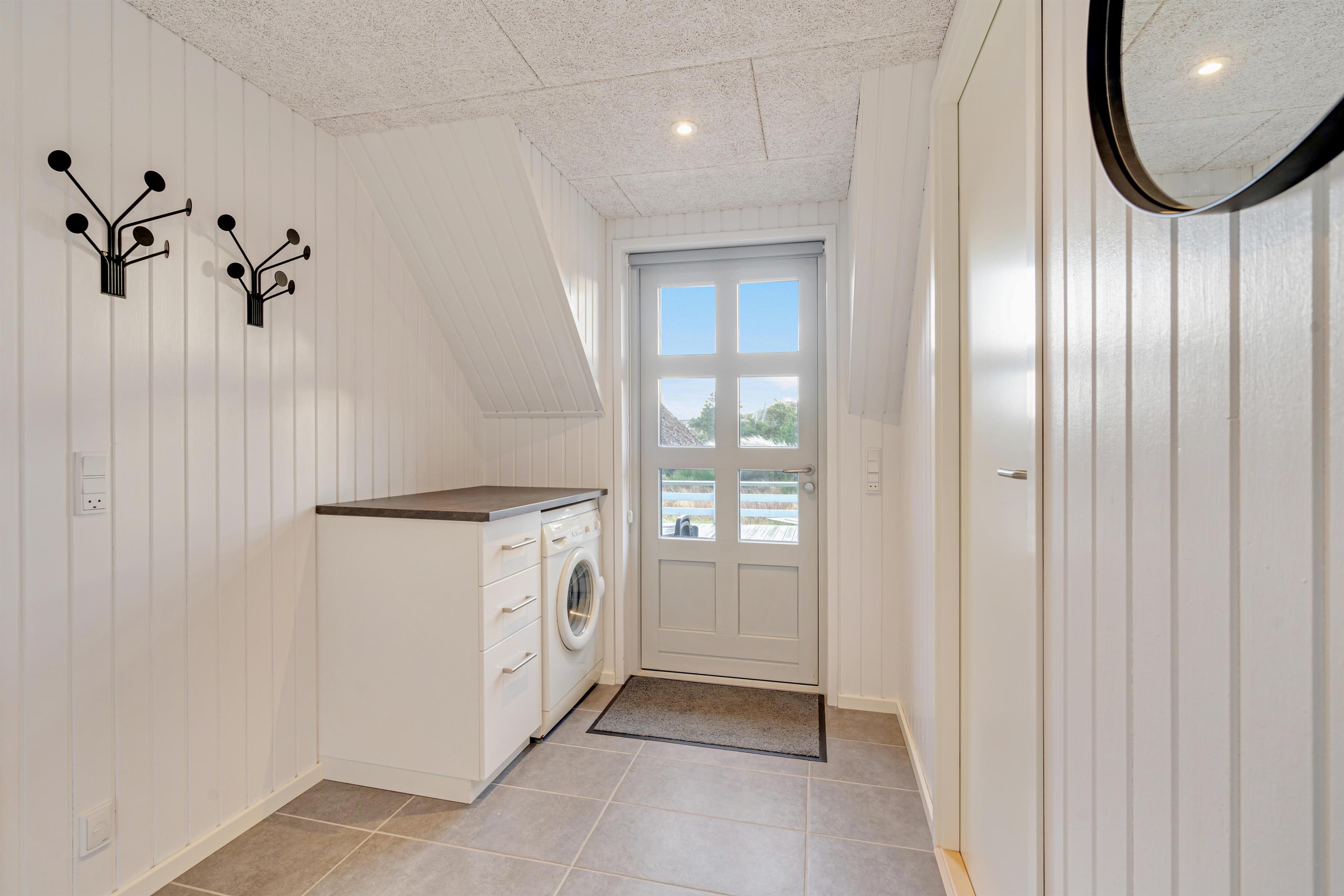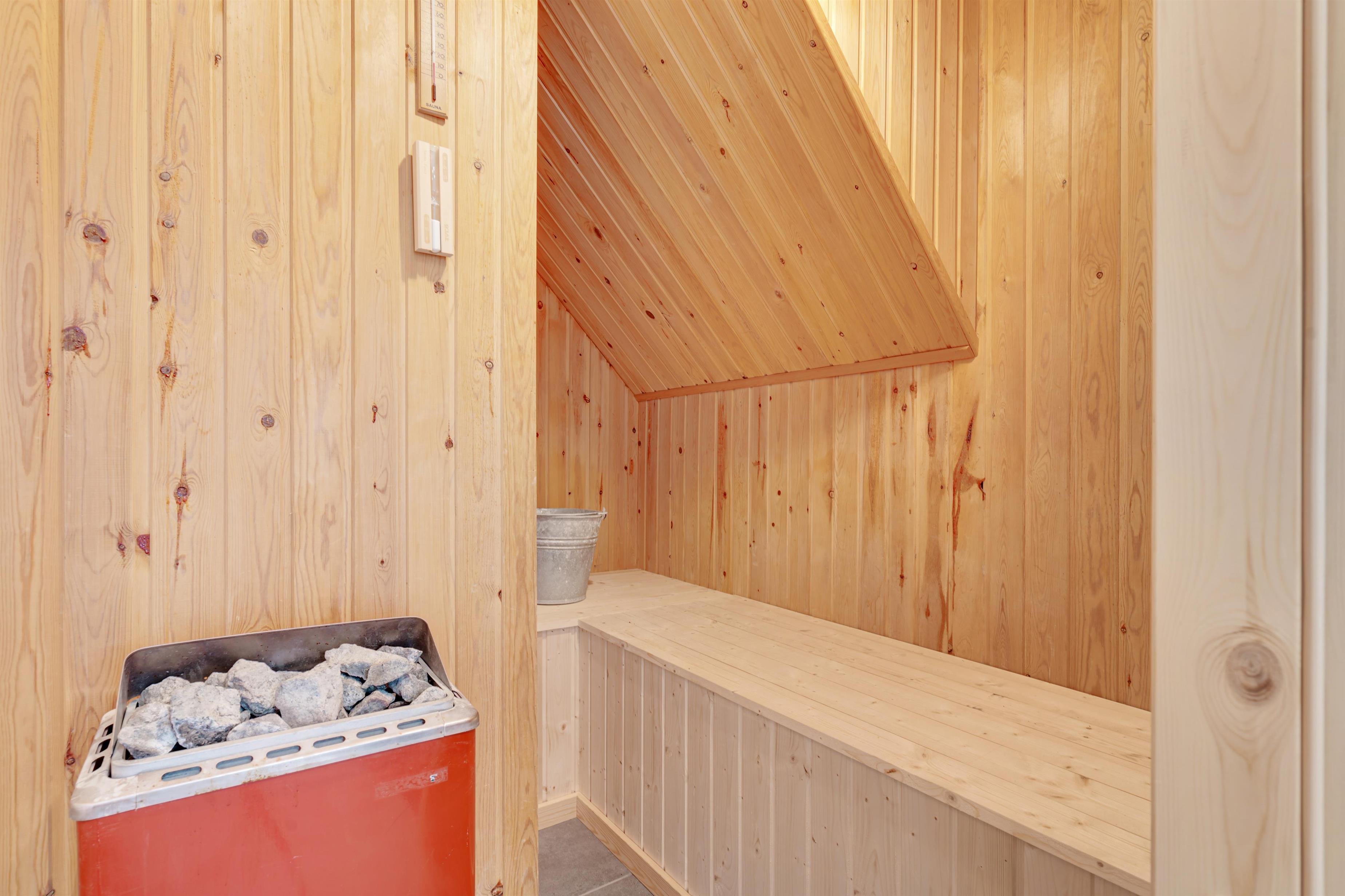 Især i de kolde måneder, når man kommer hjem fra en gåtur ved stranden med blæst og bølgebrus er det en drøm, at kunne tænde op i saunaen og afslutte feriedagen her. De våde håndklæder er hurtigt friske igen efter en tur i sommerhusets vaskemaskine.