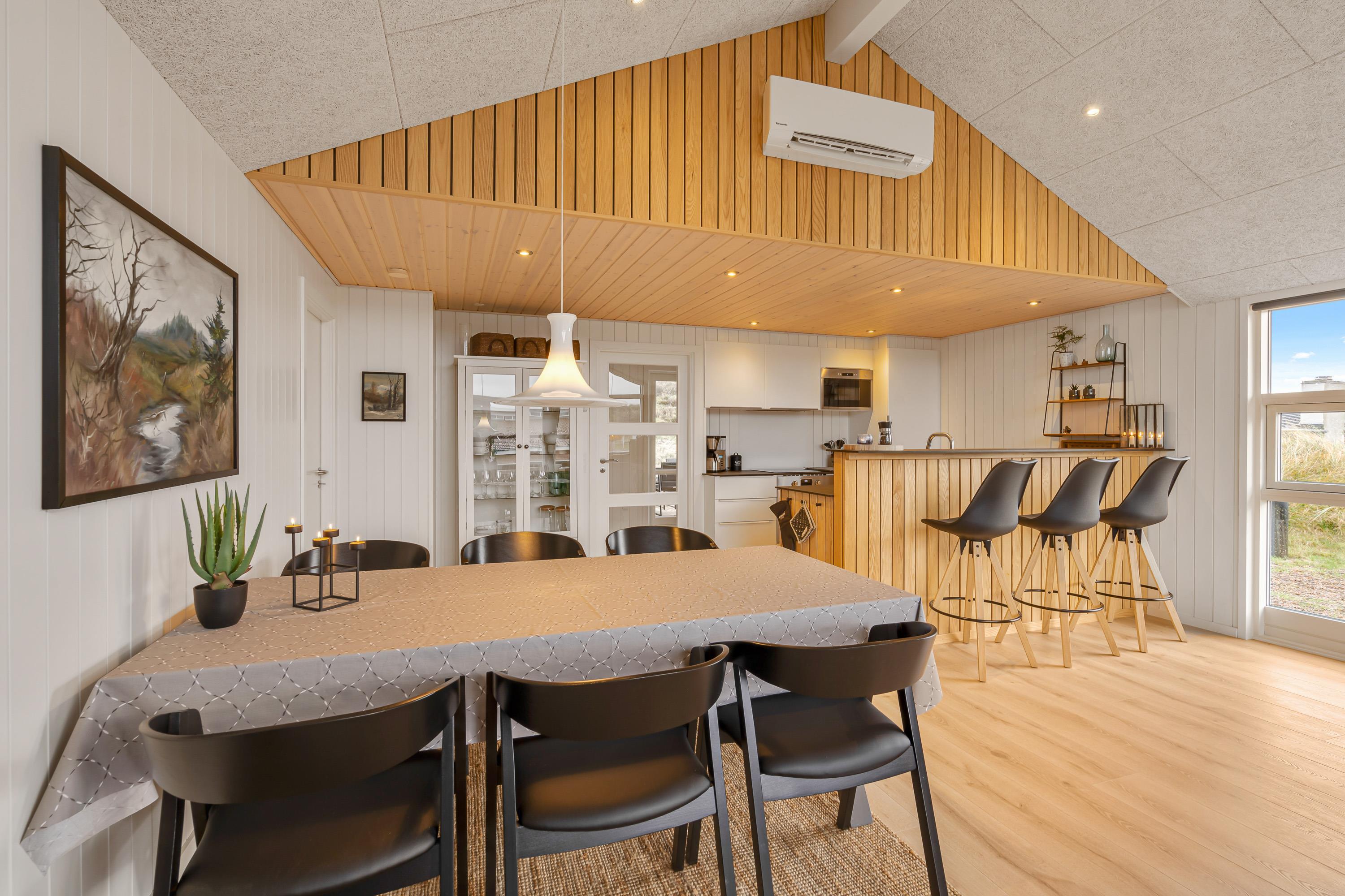Sommerhuset på Arvevej 6 i Henne Strand er blevet renoveret i 2021, og det fremstår nu med et indre, der er moderne, og som I utvivlsomt straks vil finde jer godt tilpas i på jeres ferie.