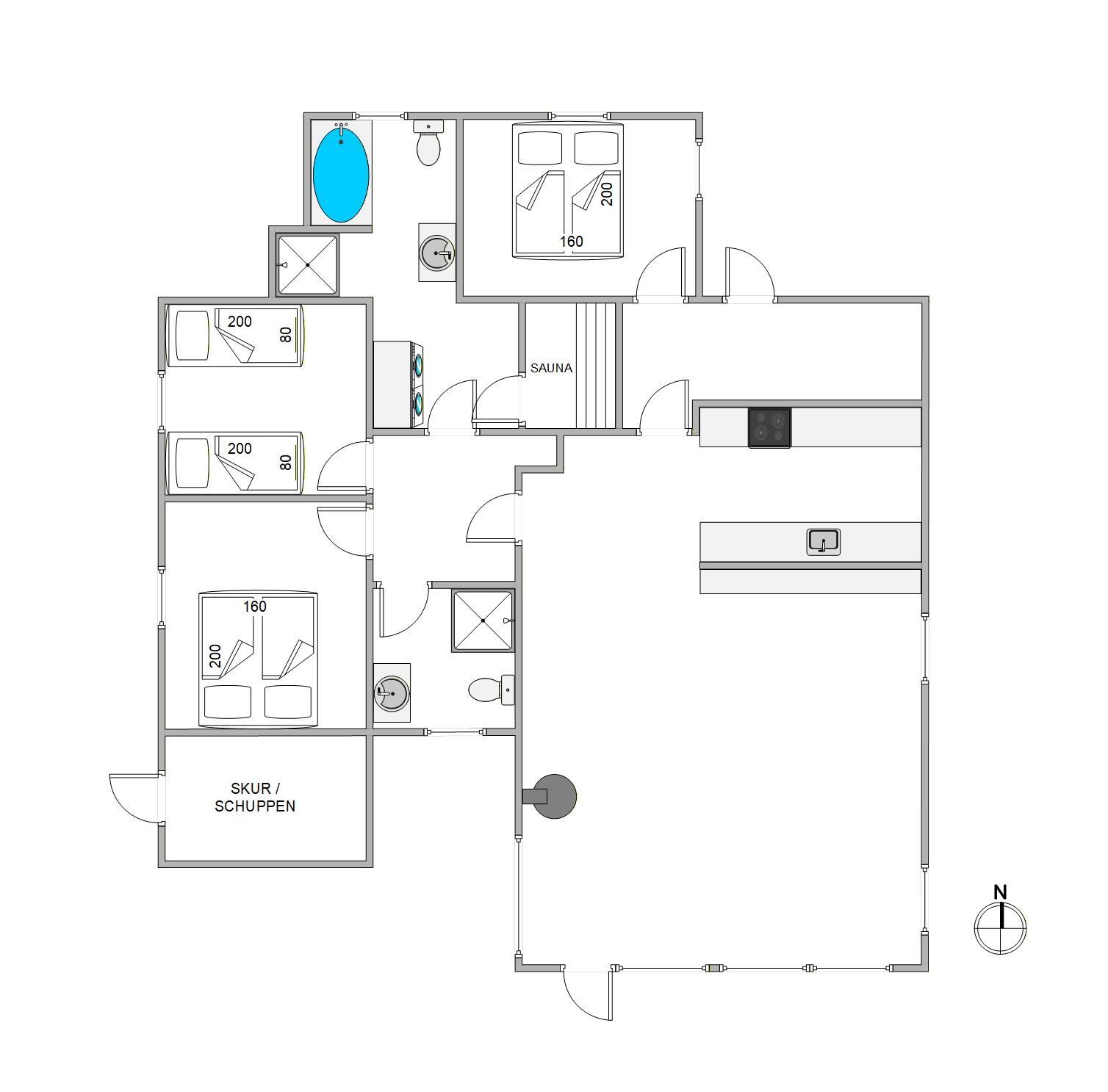 I sommerhuset er der hele 2 badeværelser, der begge endda er udstyret med gulvvarme, så I hverken skal stå i kø eller fryse fødderne fra morgenstunden. På det ene af badeværelserne har I desuden mulighed for at blive forkælet med masser af afslapning i spaen og saunaen.