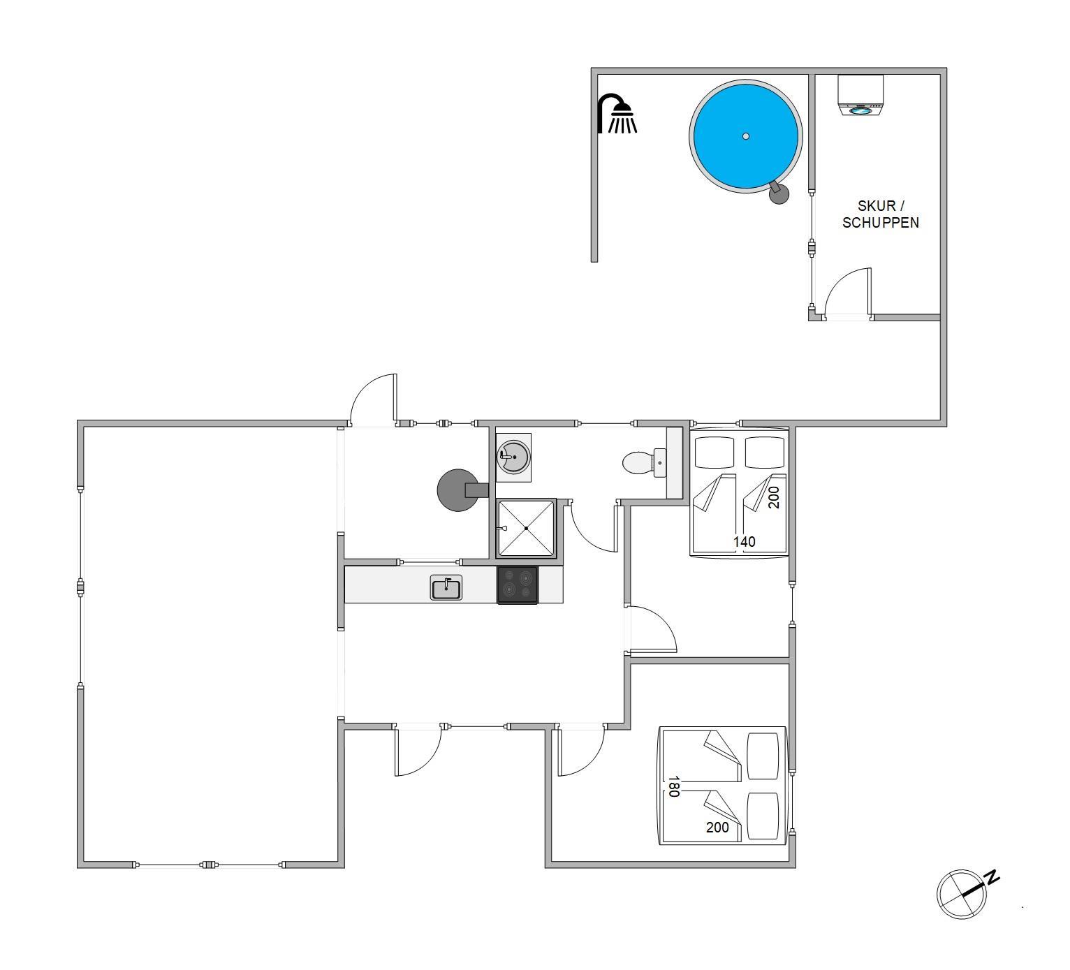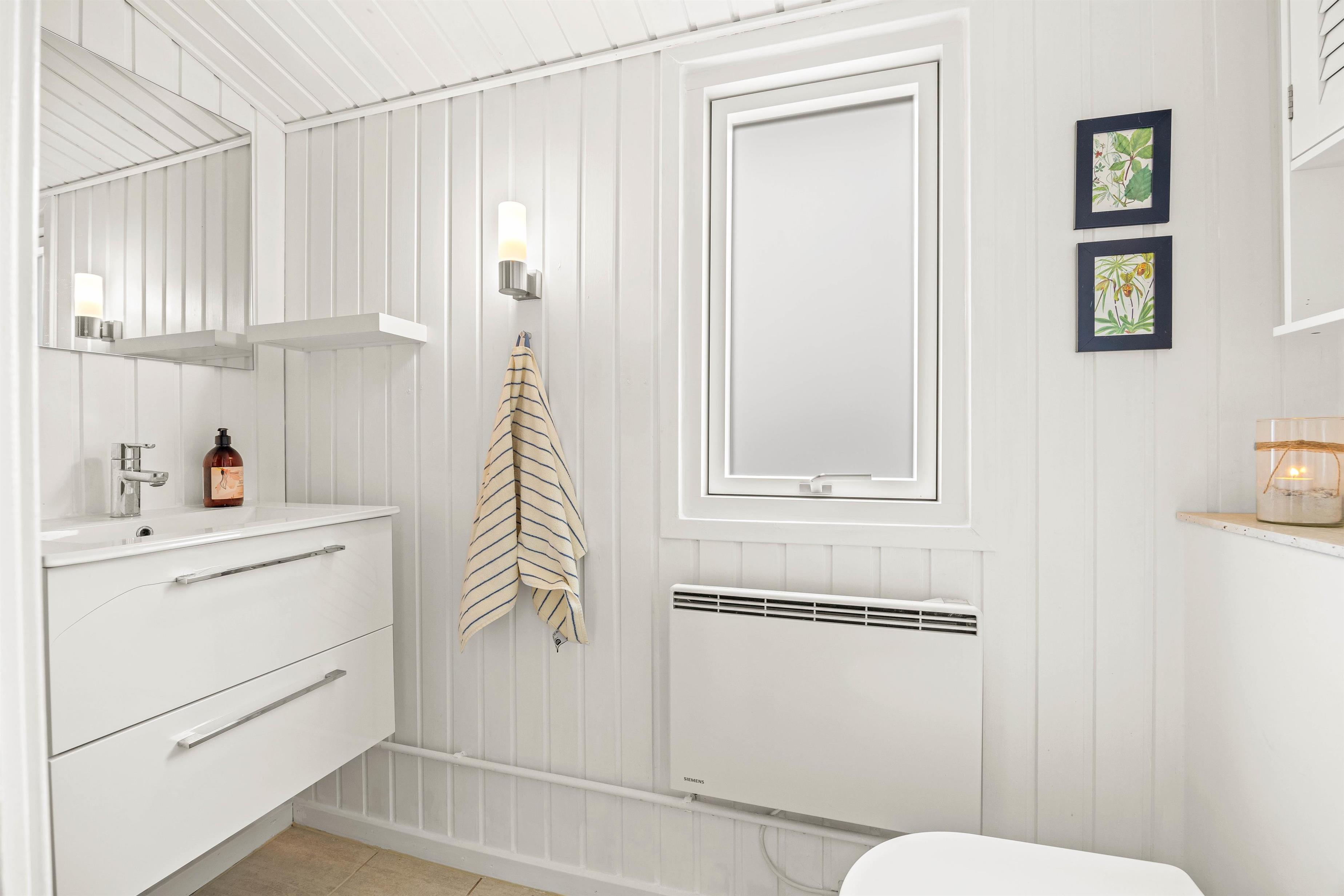 Det 65 m² store sommerhus byder på et skønt velindrettet badeværelse med indlagt gulvvarme, samt 2 lyse soveværelser. Begge soveværelser er indrettet med dobbeltsenge.