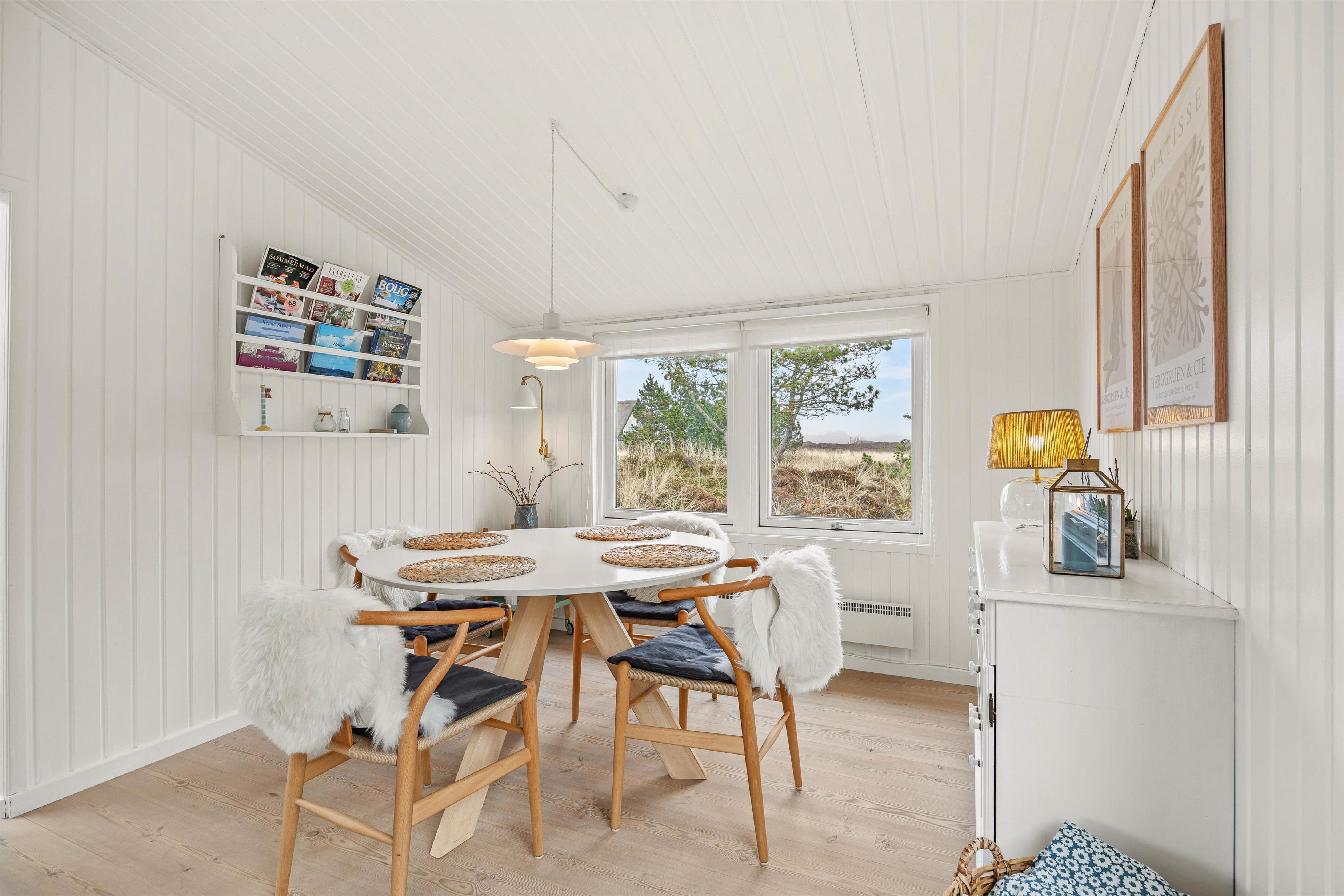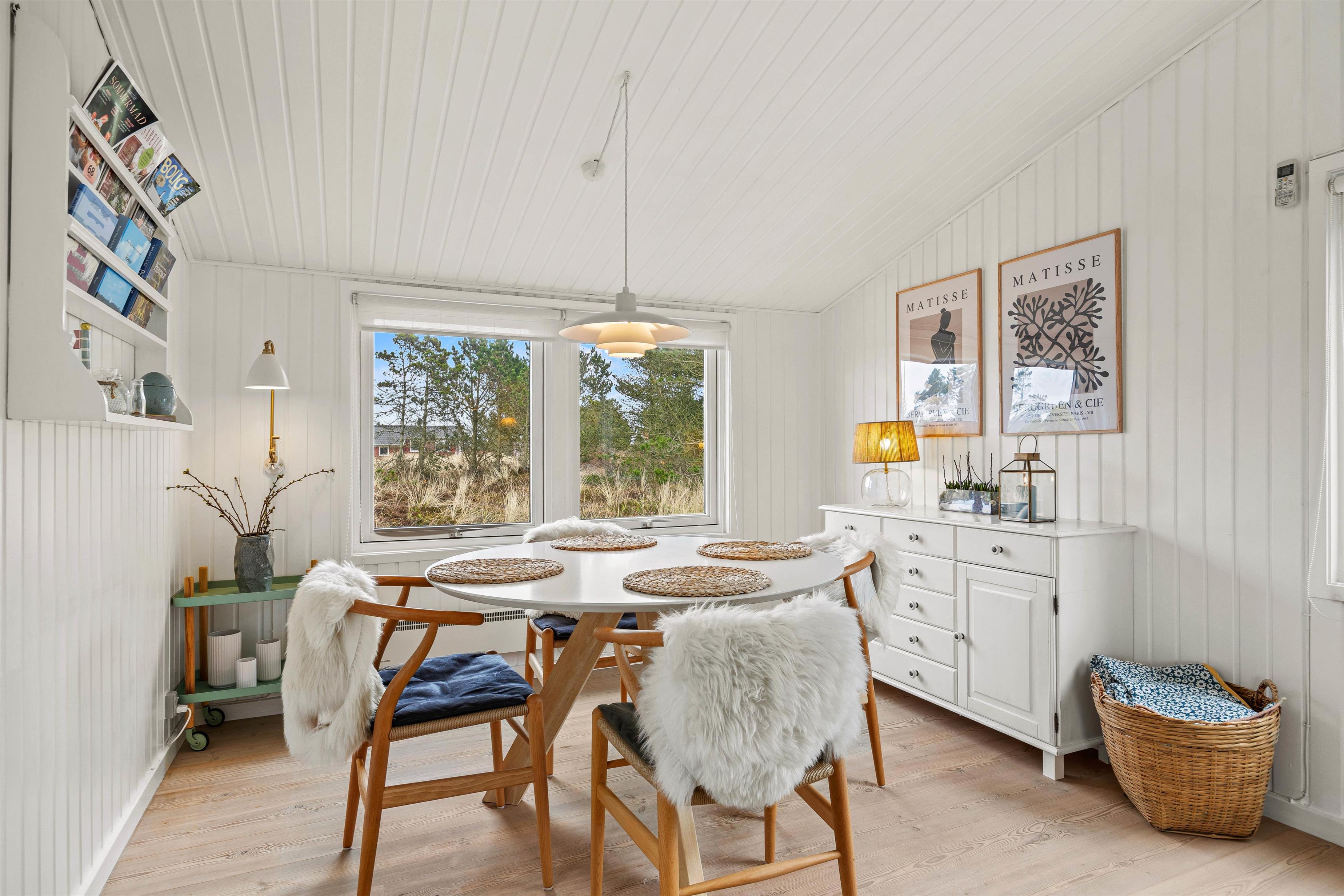 I dette ikke-rygerhus på Mågevej 1 i Henne Strand venter jer et lyst fællesrum med spise- og opholdsstue. Dette rum er det oplagte samlingssted for familiehyggetid: her kan I være sammen om at se film eller spille spil. Køkkenet, som ligger i direkte forbindelse med fællesrummet, er veludstyret og indeholder både opvaskemaskine og mikroovn. Ydermere er der en 40L fryser.