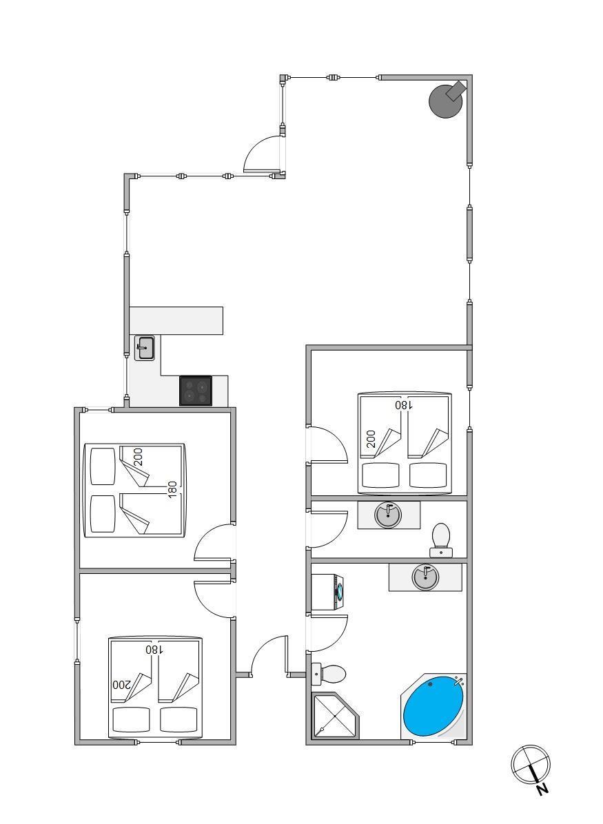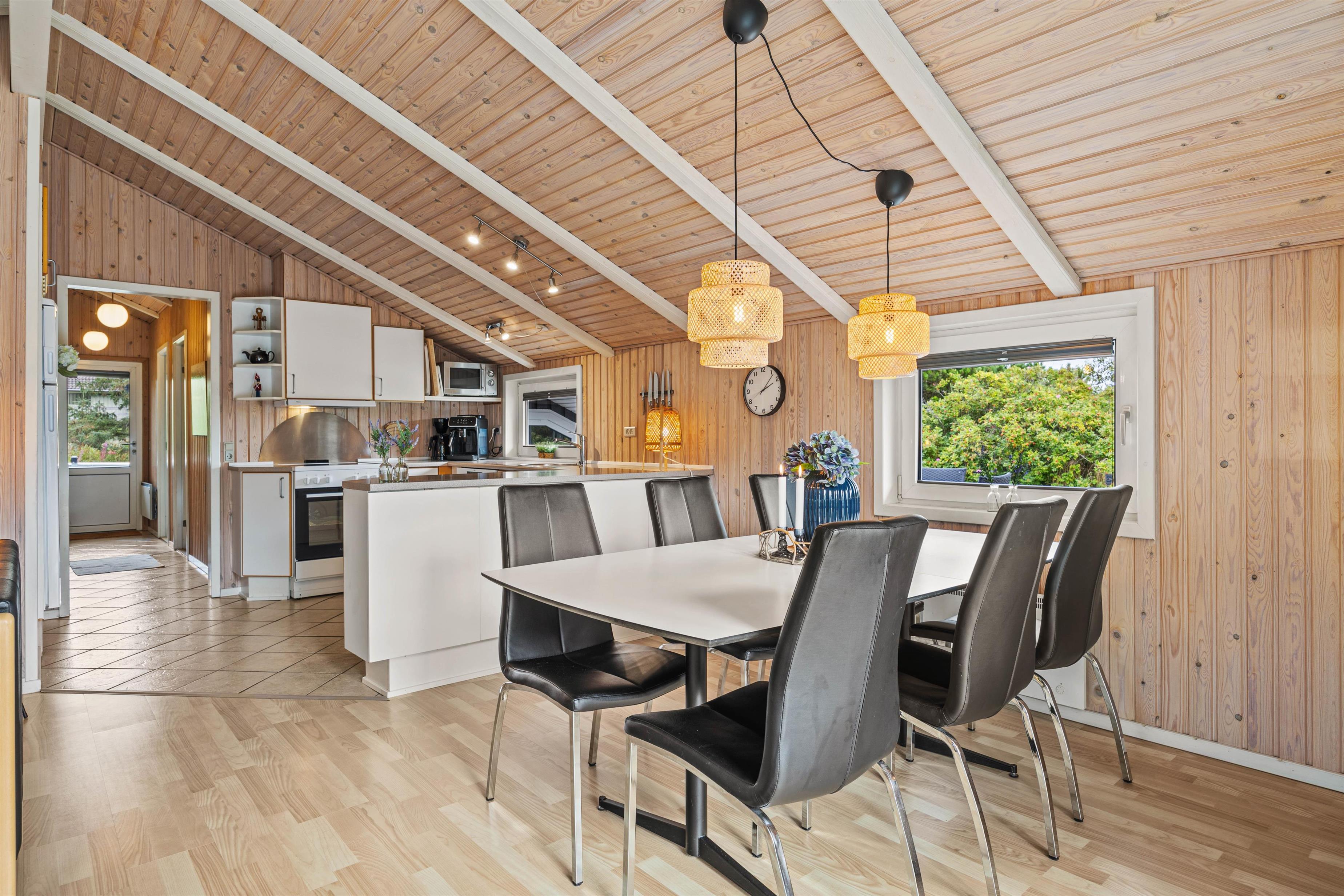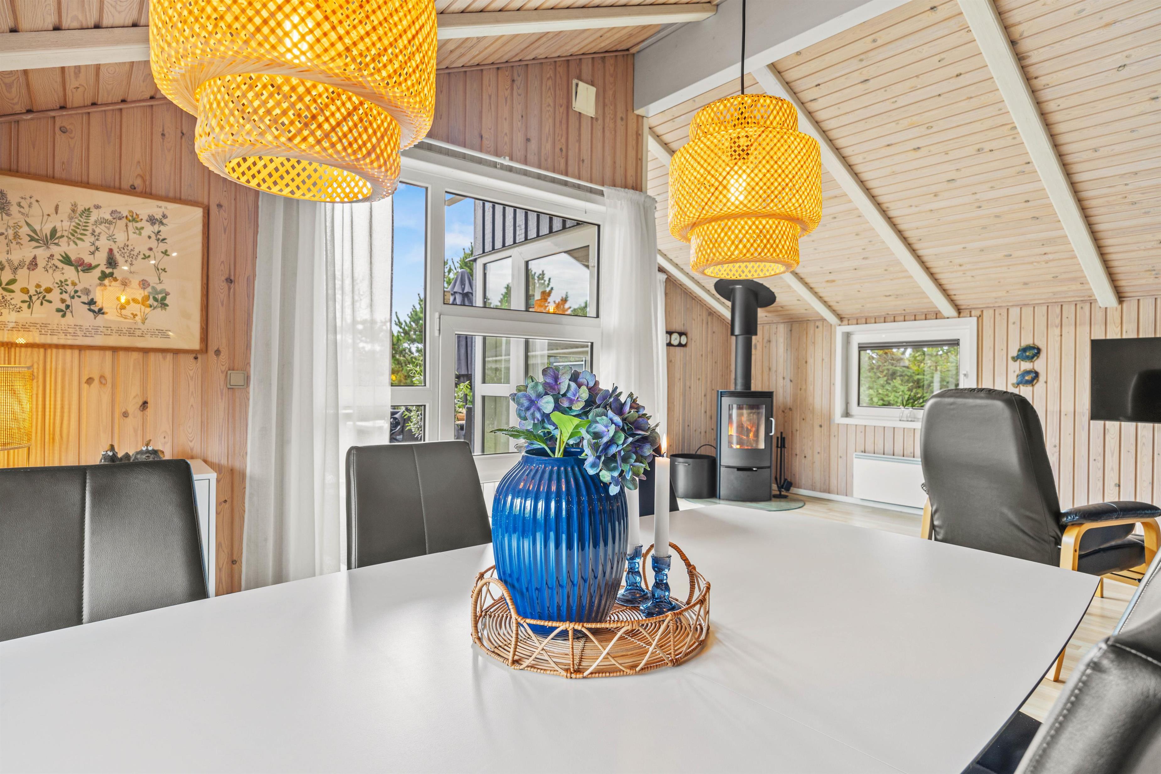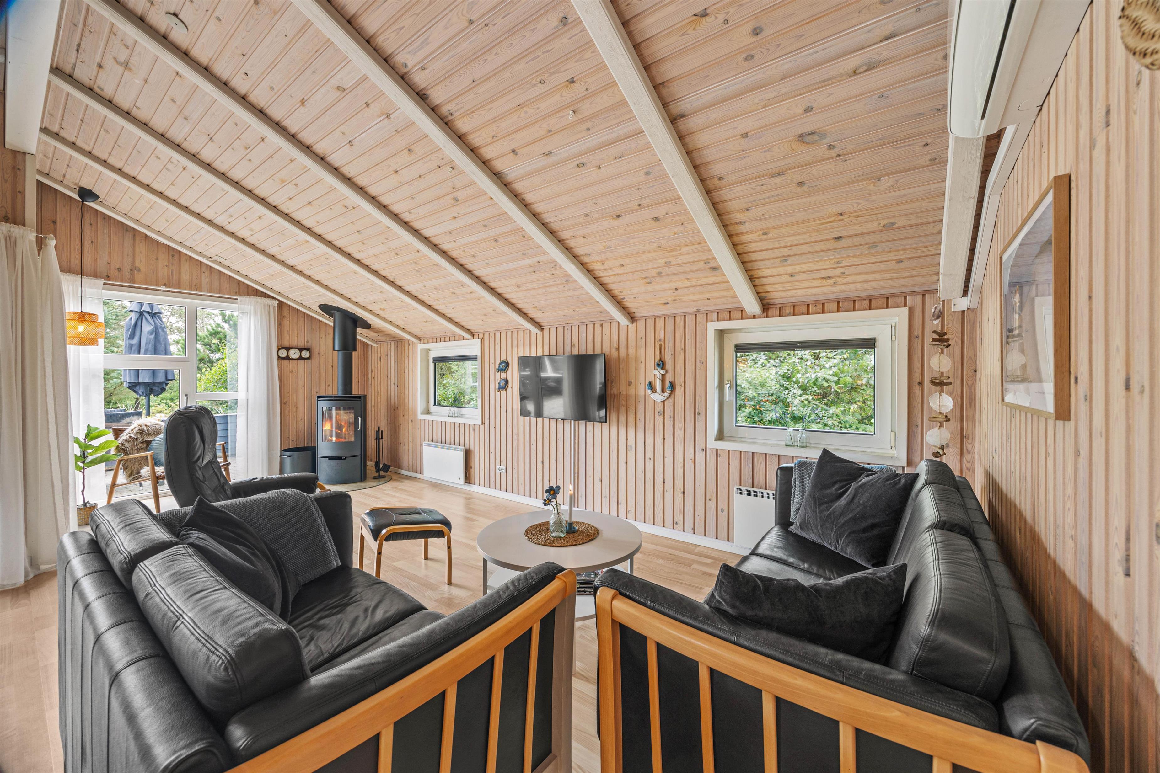 Det veludstyrede køkken med opvaskemaskine og den effektive varmepumpe, vaskemaskine og tørretumbler vil gøre dit ophold så behageligt som muligt. I opholdsstuen skaber brændeovnen en hyggelig atmosfære på kølige aftener. Badeværelset er udstyret med et afslappende spabad, der er gulvvarme både her samt i det ekstra gæstetoilet. Med 3 soveværelser, alle med en dobbeltseng (180x200 cm), er der intet, der står i vejen for en god nats søvn.