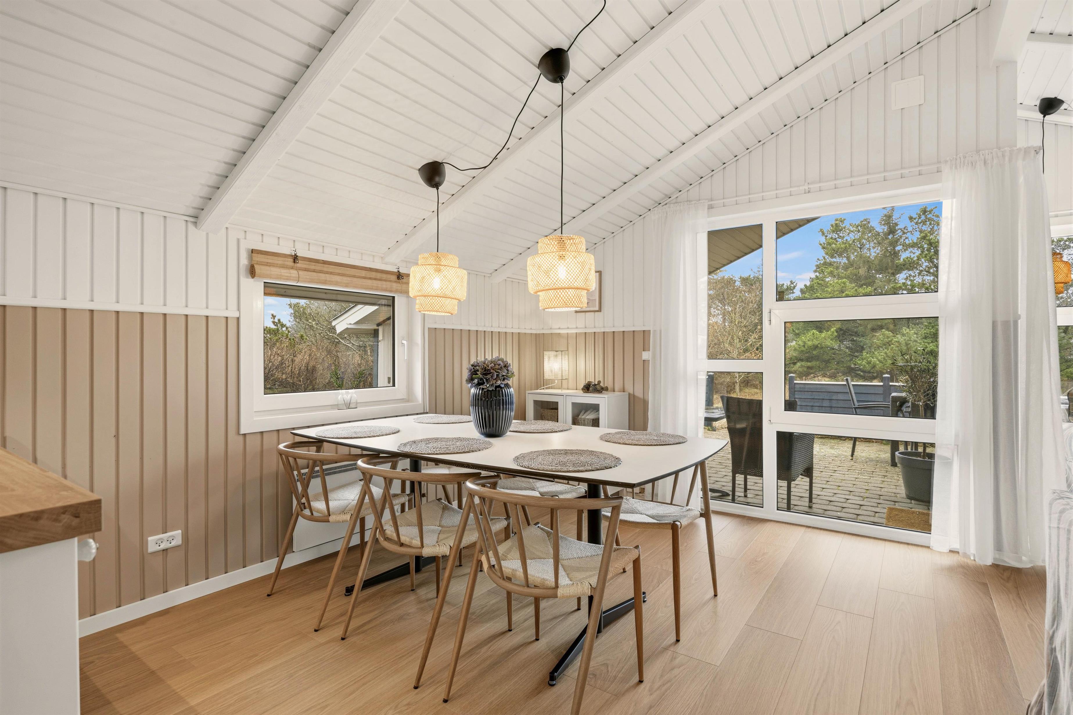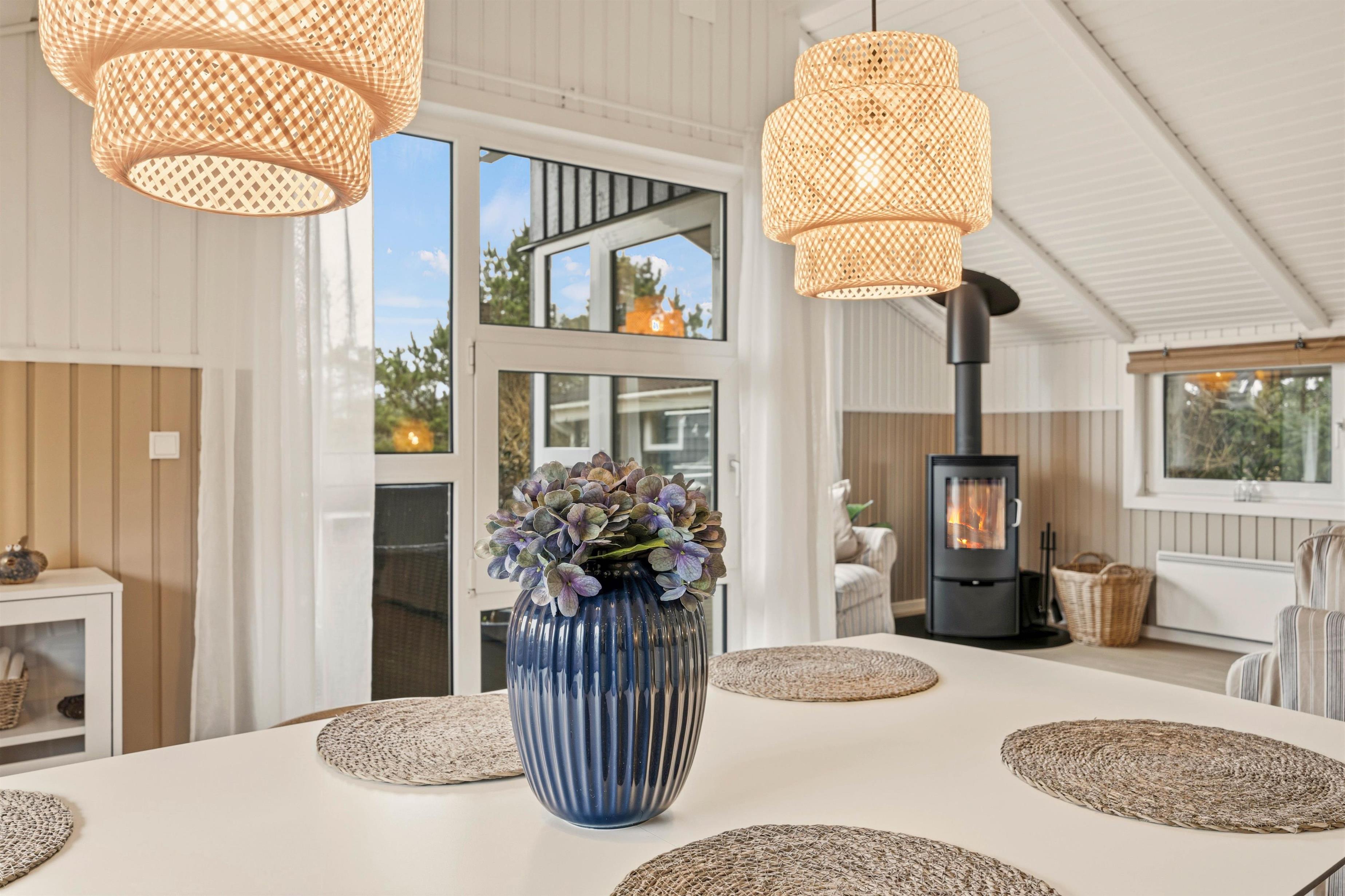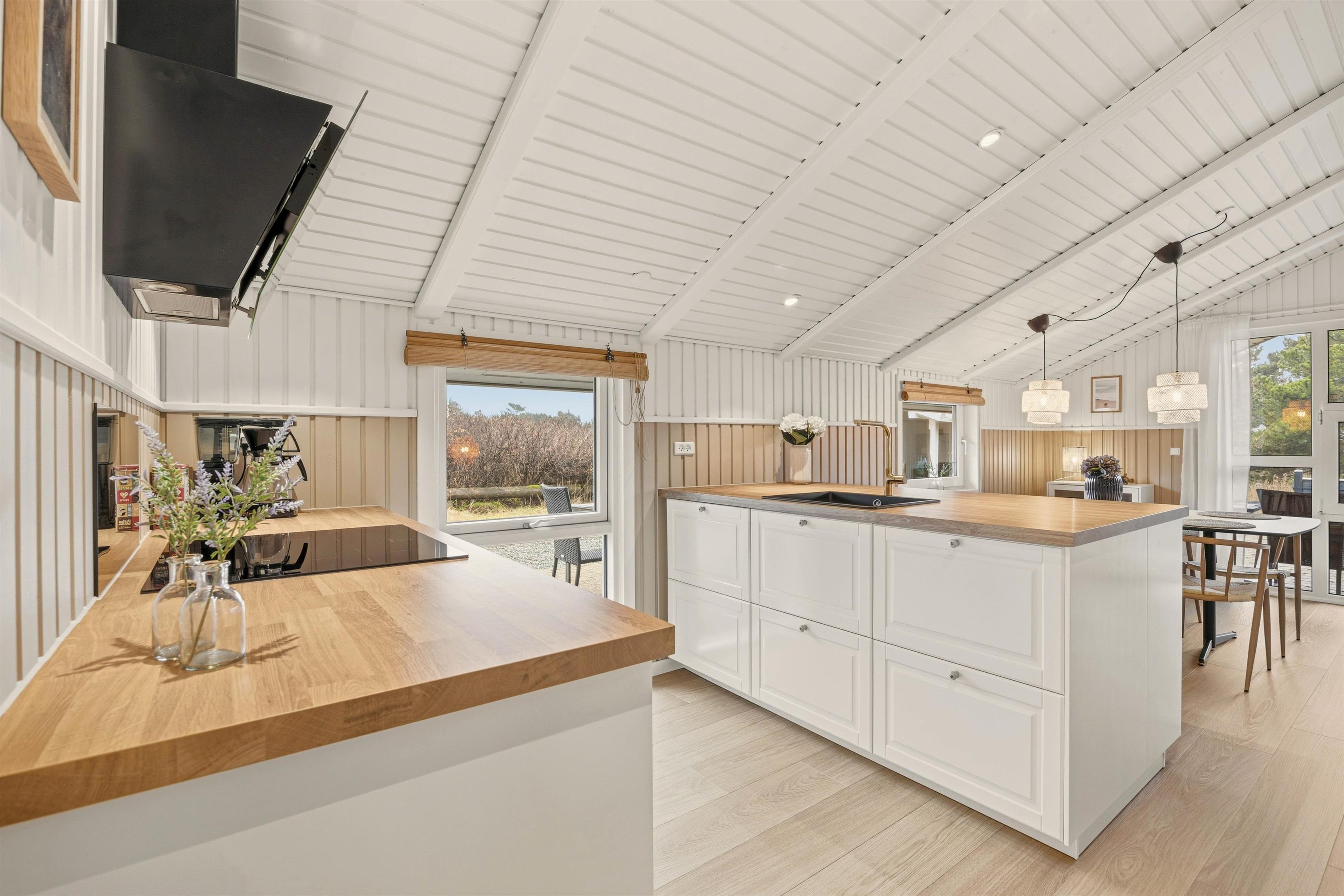Det veludstyrede og i 2026 renoverede køkken med opvaskemaskine og den effektive varmepumpe, vaskemaskine og tørretumbler vil gøre dit ophold så behageligt som muligt. I opholdsstuen skaber brændeovnen en hyggelig atmosfære på kølige aftener. Badeværelset, som også er renoveret i 2026, er udstyret med et afslappende spabad, der er gulvvarme både her samt i det ekstra gæstetoilet. Med 3 soveværelser, alle med en dobbeltseng (180x200 cm), er der intet, der står i vejen for en god nats søvn.