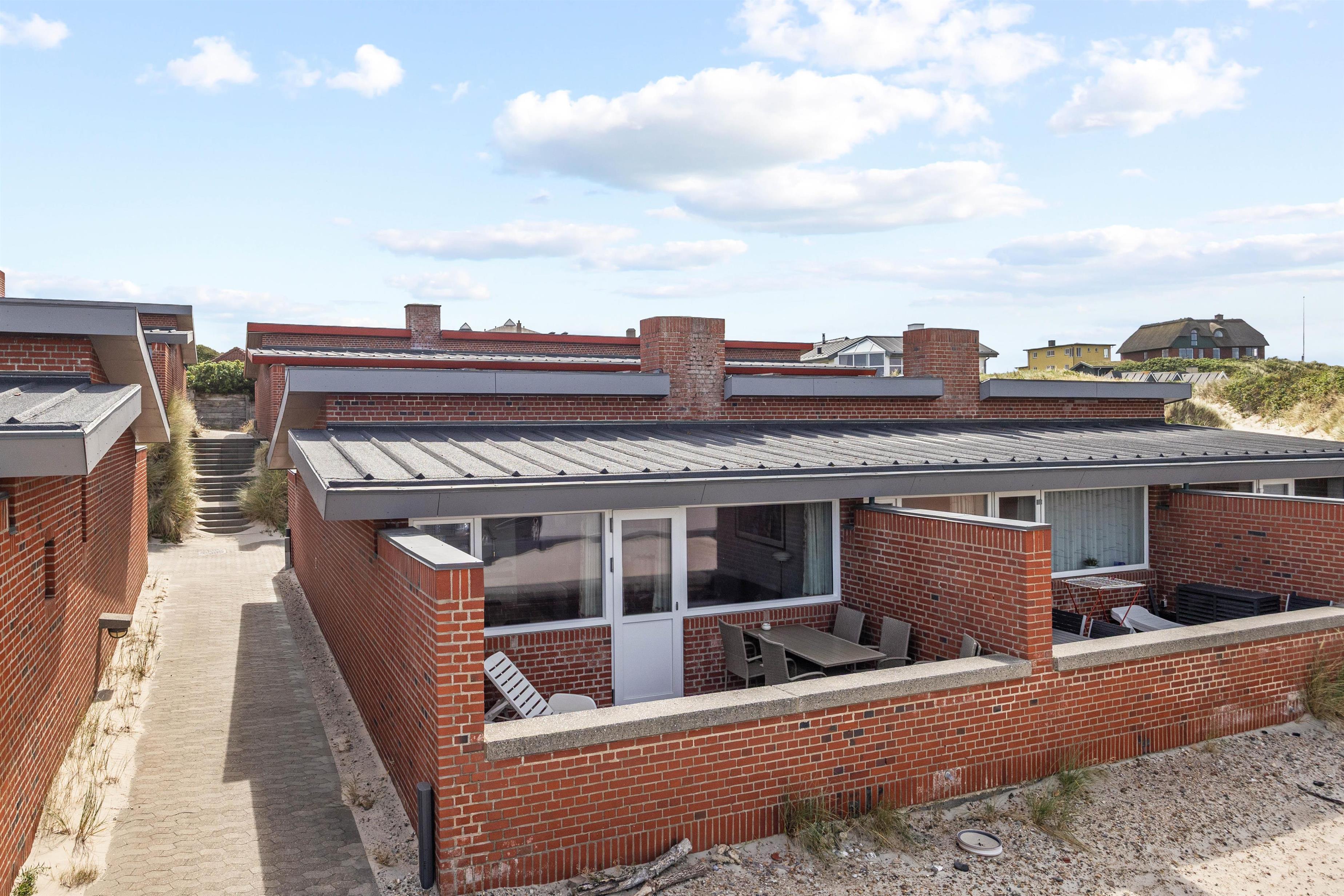 Ferielejligheden ligger helt ideelt i Henne Strand – stranden begynder nærmest lige udenfor døren, kun cirka 100 meter væk. Det bliver ikke meget nemmere: Om sommeren kan I pakke strandtasken direkte efter morgenmaden og nyde sand, sol og hav hele dagen. Rejser I med mindre børn, er det nemt at vende hjem til lejligheden til middagshvil.