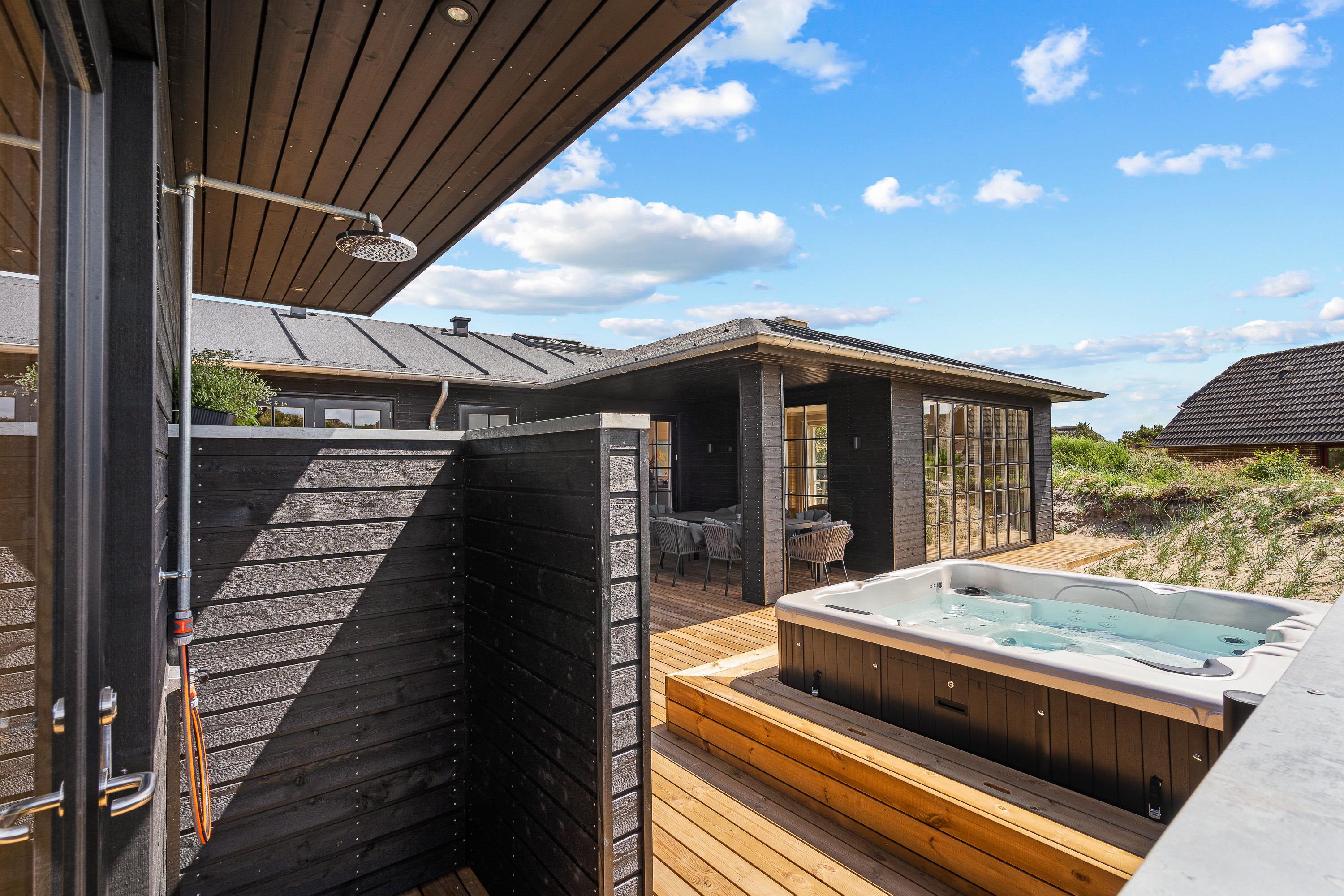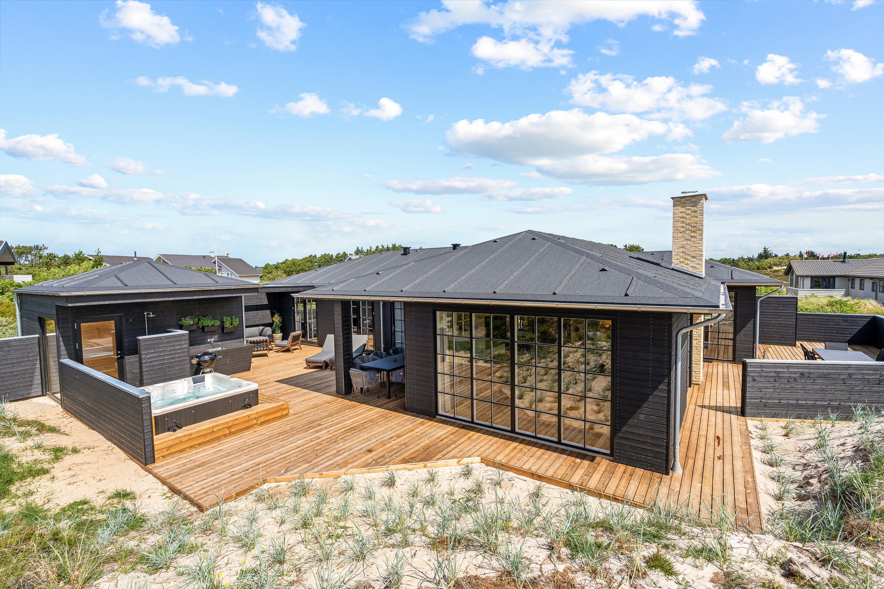 Til jer, der gerne vil holde en ferie i naturskønne omgivelser tæt på Vesterhavet og samtidig nyde en masse afslapning og luksus, er dette sommerhus på Frytlevej 8 det perfekte valg. Det moderne sommerhus, der er bygget i 2022, ligger forenden af en blind vej, kun 700 meter fra Vesterhavet og byder på blandt andet udespa, udesauna, udebruser og billardbord. Her er noget for enhver, og I vil uden tvivl få jer en dejlig ferie i dette sommerhus. Feriehuset rummer plads til 8 personer, og har I hund, er den også velkommen. Desuden er det muligt at lade jeres el-bil op ved feriehusets ladestander - eget kabel (type 2) medbringes.