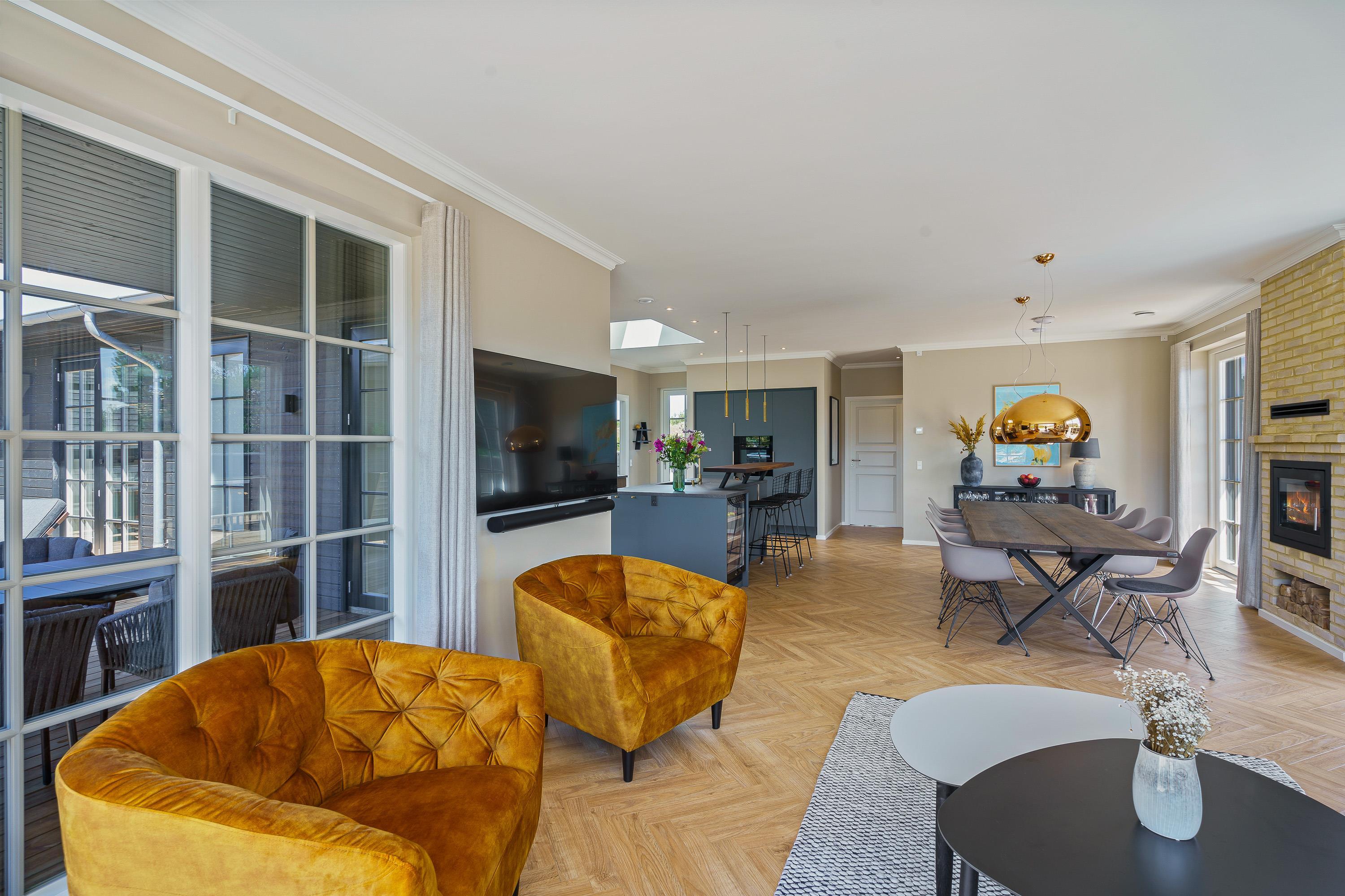 Når I først træder ind i sommerhuset på Frytlevej 8, vil I straks blive mødt af den moderne indretning, der er gennemgående på alle 165 kvadratmeter i feriehuset. Her vil I utvivlsomt føle jer godt tilpas på jeres ferie i Henne Strand!