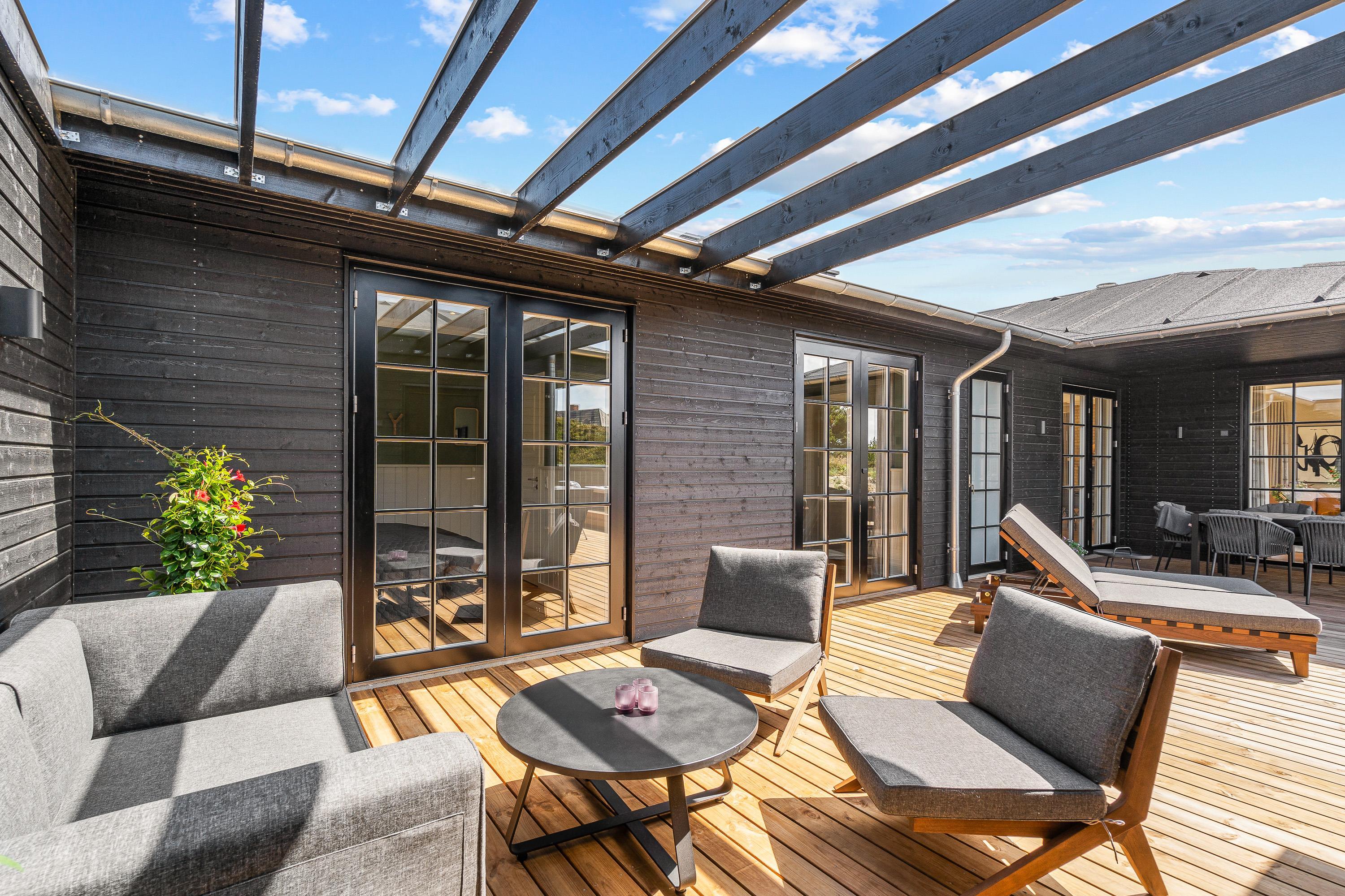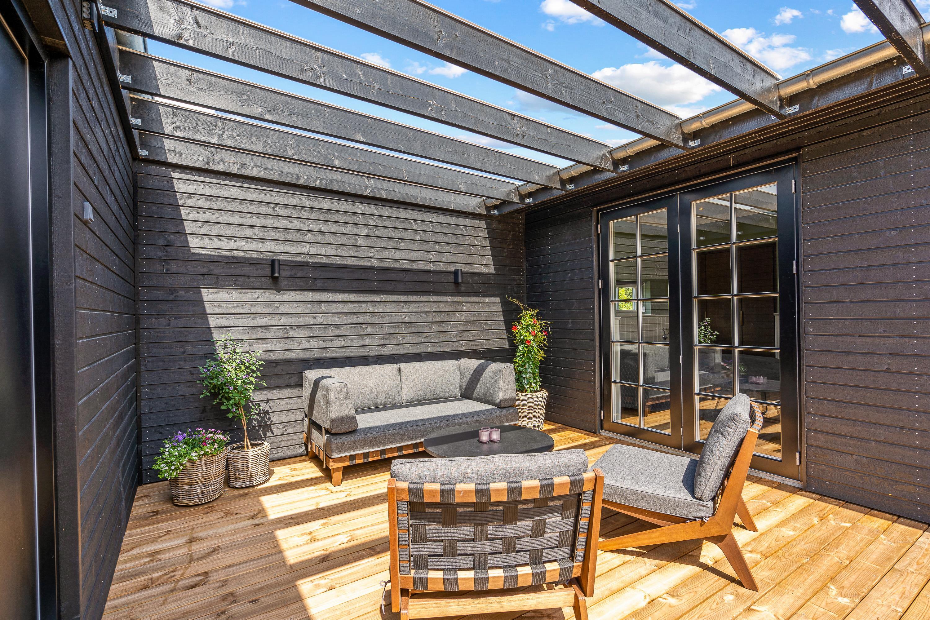 På terrassen finder I også havemøbler og liggestole, som I kan læne jer tilbage i på et godt spot i solen - og skulle I få brug for at sidde i skyggen, kan I rykke ind under den overdækkede del. Når aftentimerne så småt nærmer sig, kan I tænde op i grillen og gøre klar til en lækker grillmiddag på terrassen.