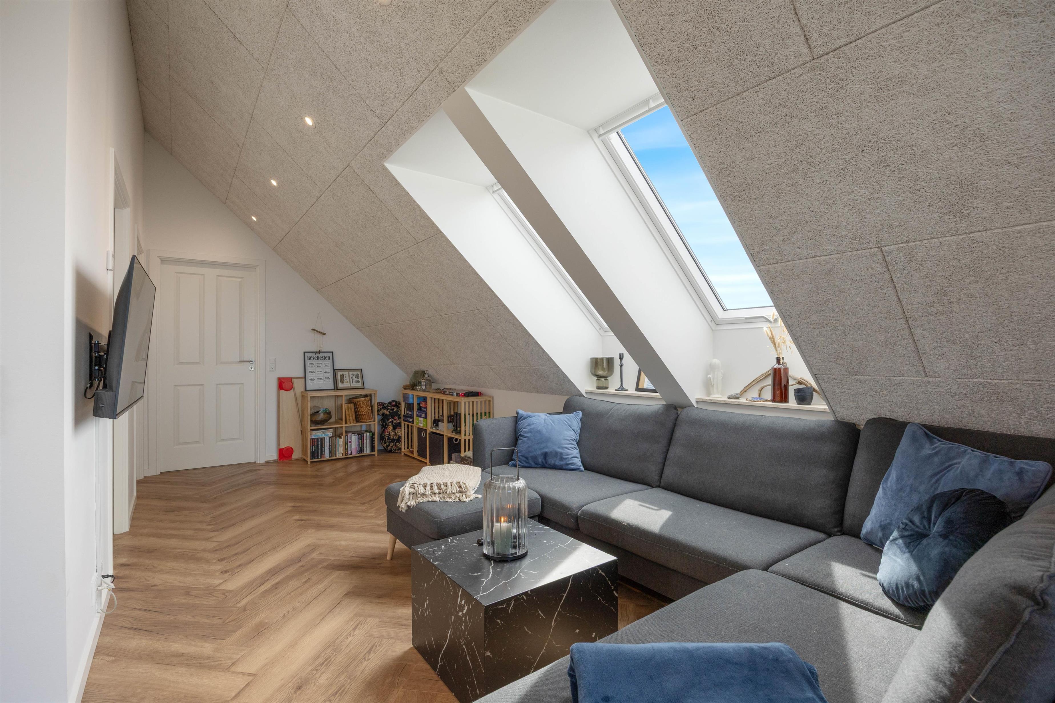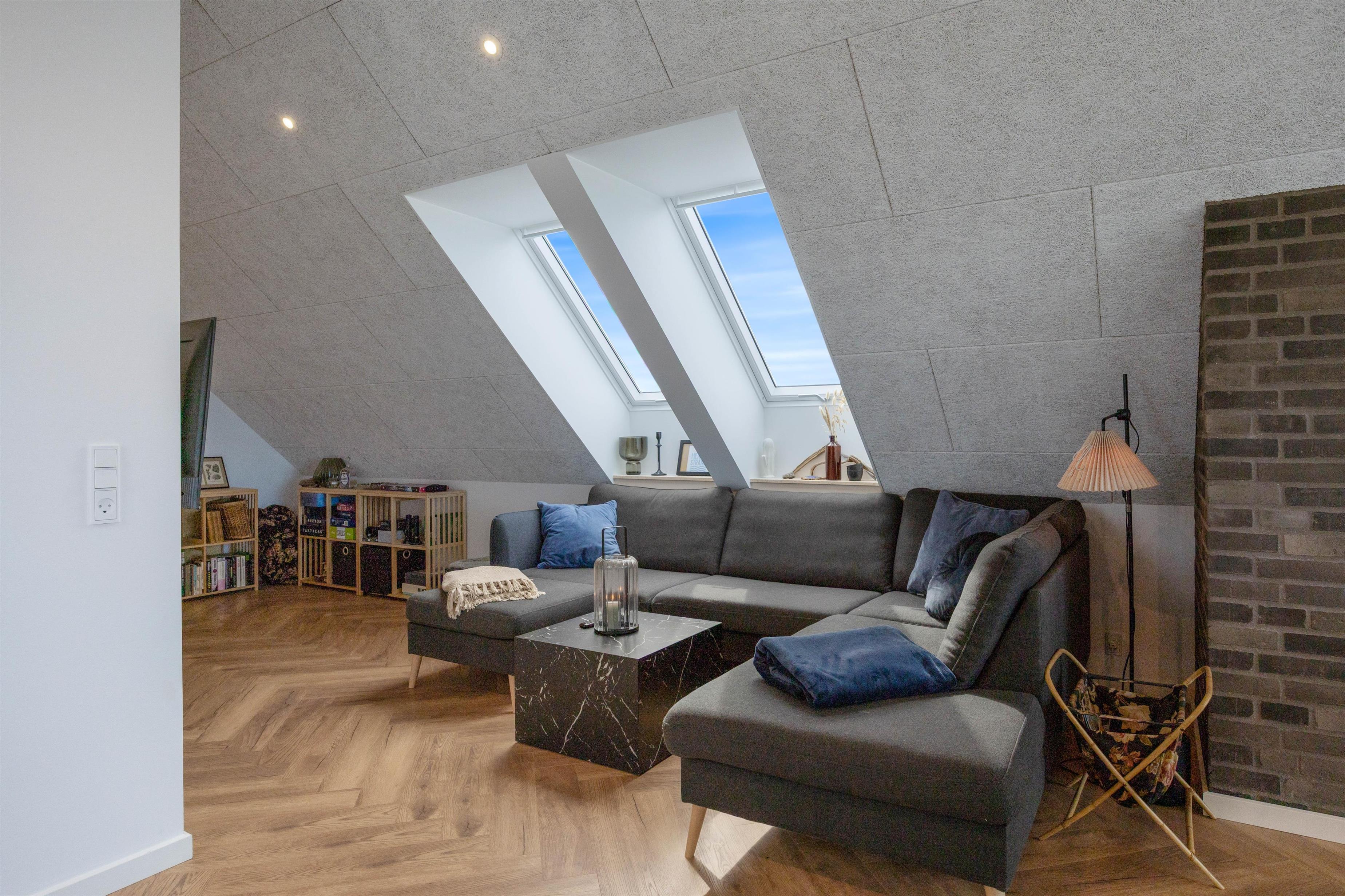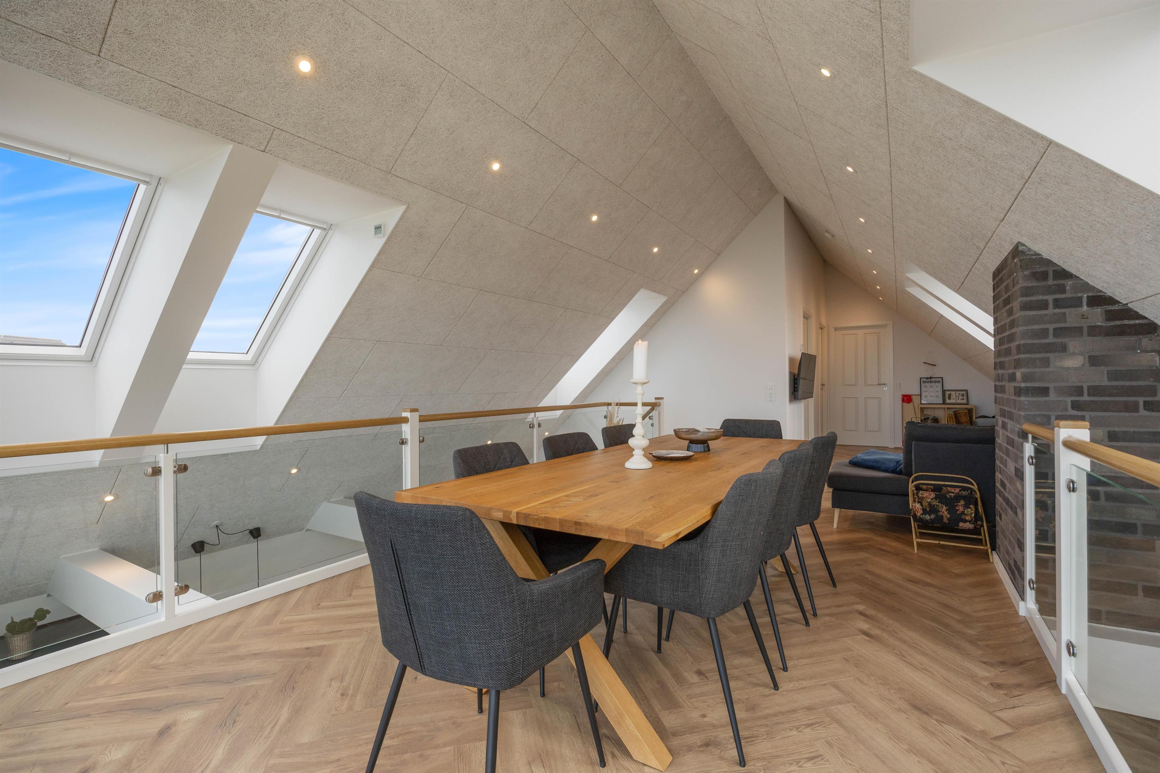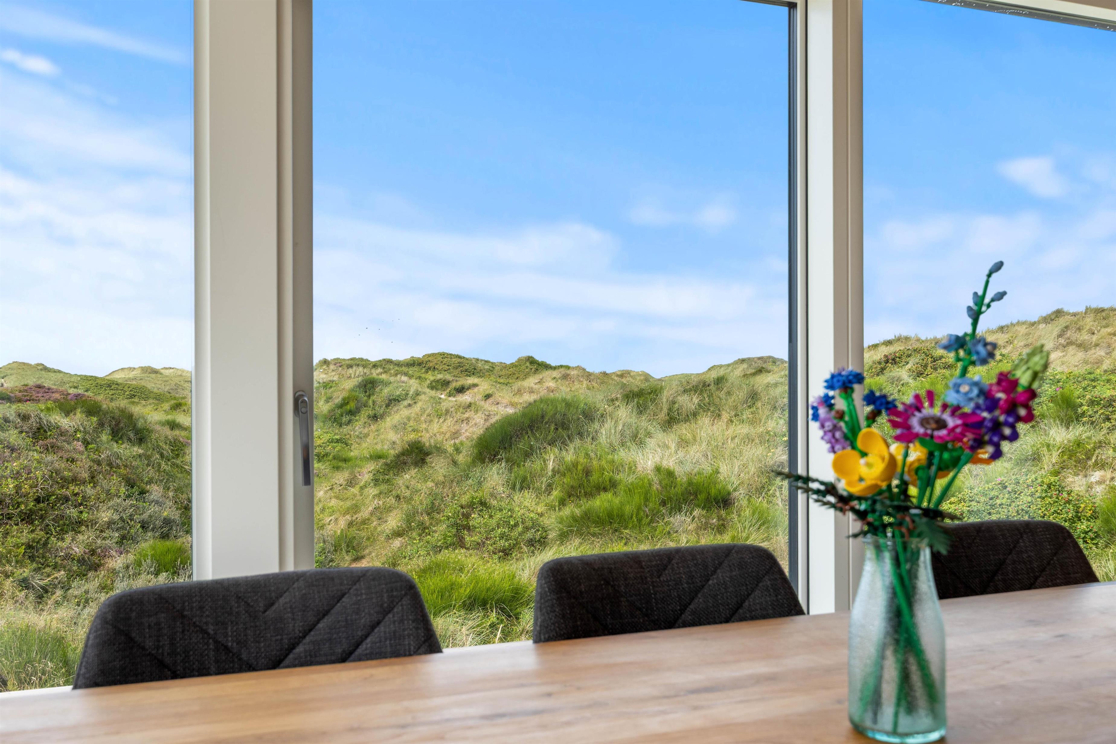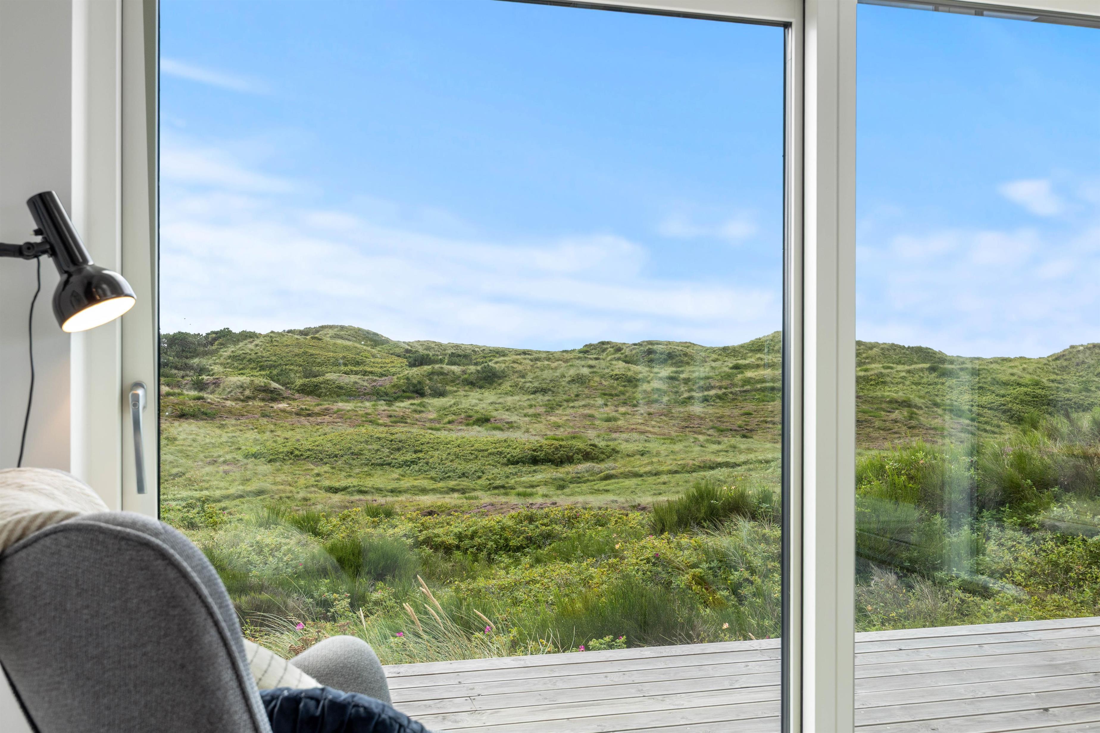 Fra spisestuen fører en trappe jer op på 1. sal, hvor de velplacerede vinduer bidrager til, at den storslåede udsigt over både klitområdet og Vesterhavet også kan nydes herfra: her lægger både sofa og den komfortable spisestue op til hygge med spil og gode snakke, imens I kan betragte landskabet og naturen omkring.