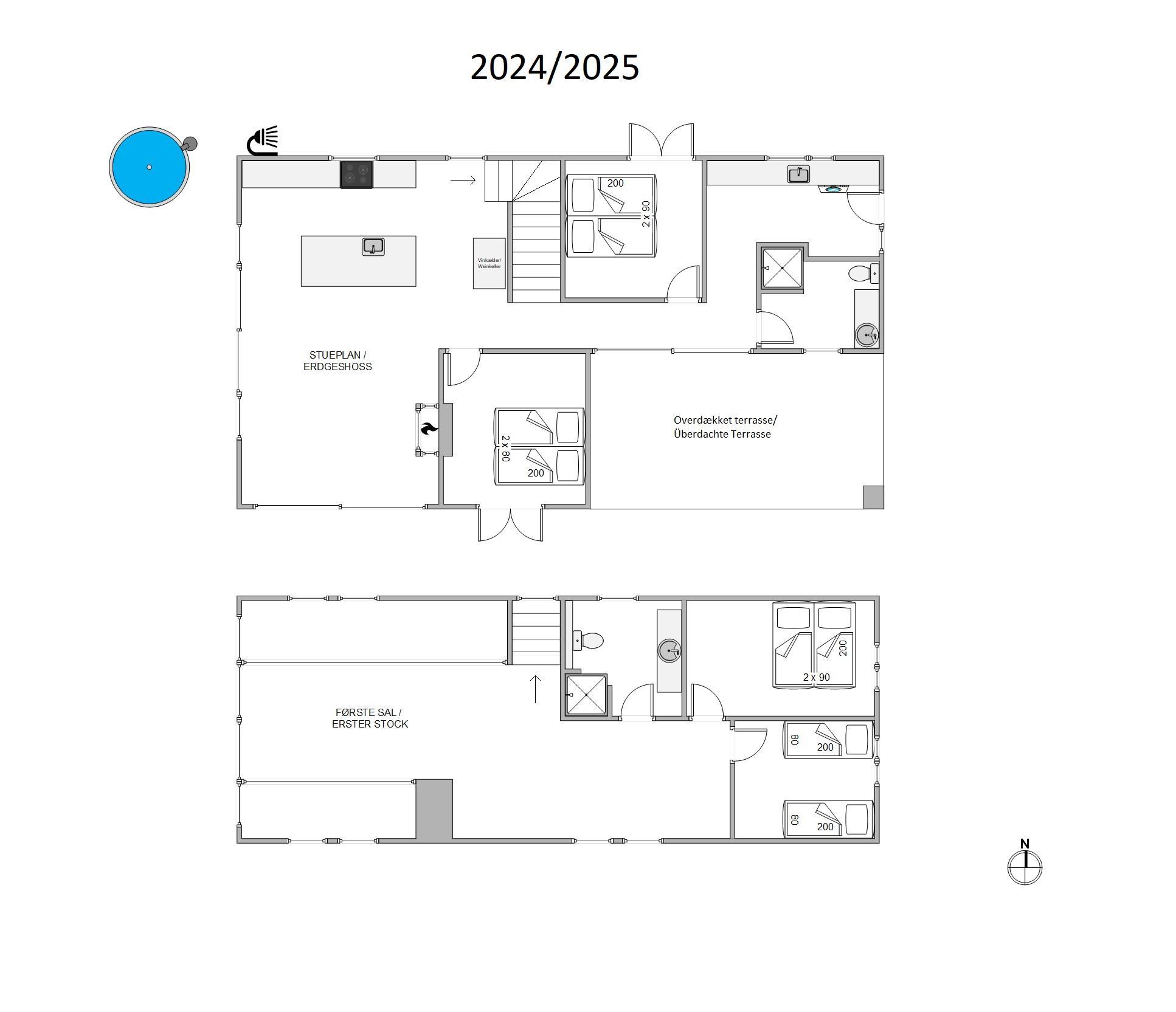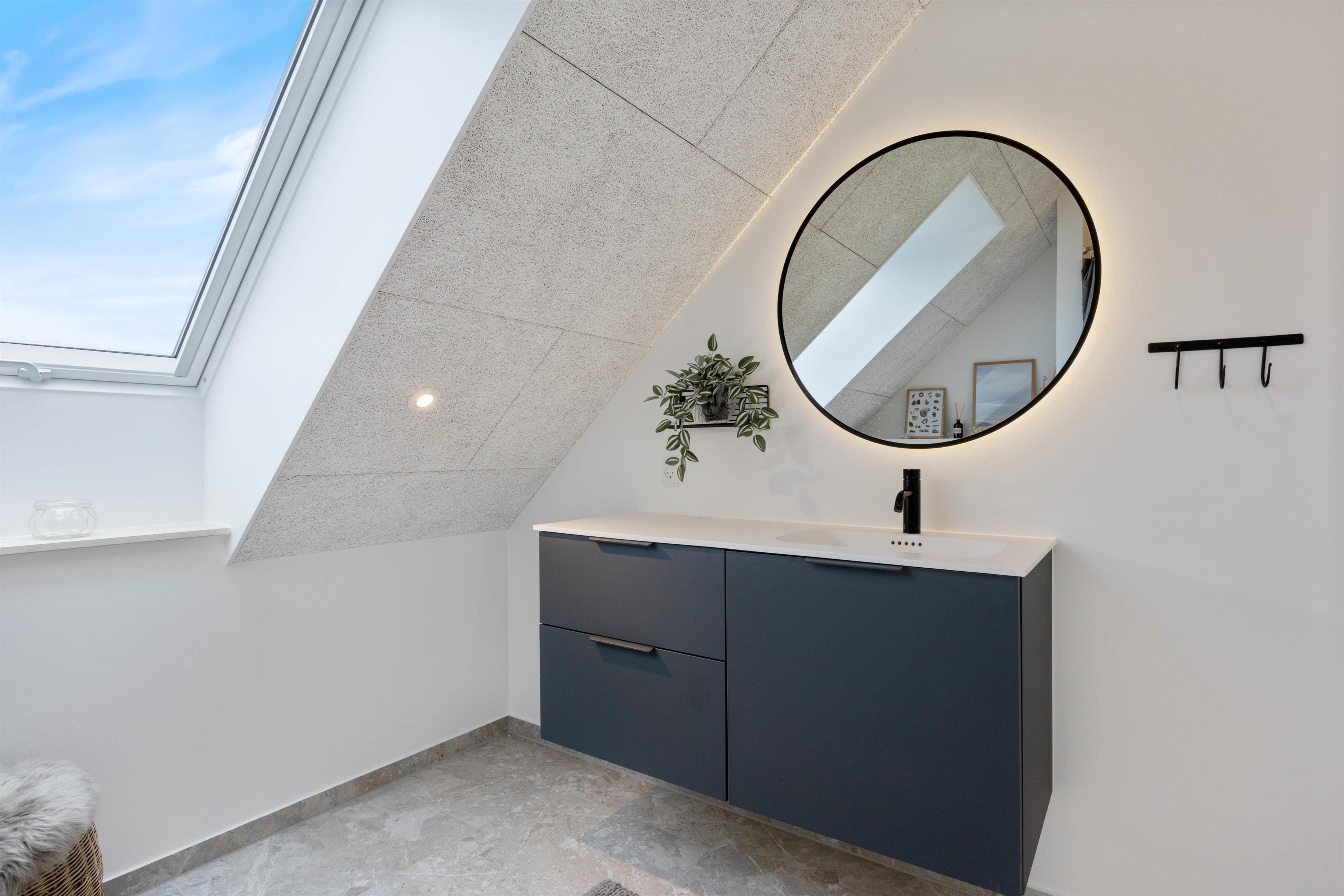 På 1. sal er der ydermere et større lyst badeværelse samt 2 gode soveværelser. I det ene soveværelser er der placeret en dobbeltseng, imens det andet soveværelse indeholder 2 enkeltsenge.