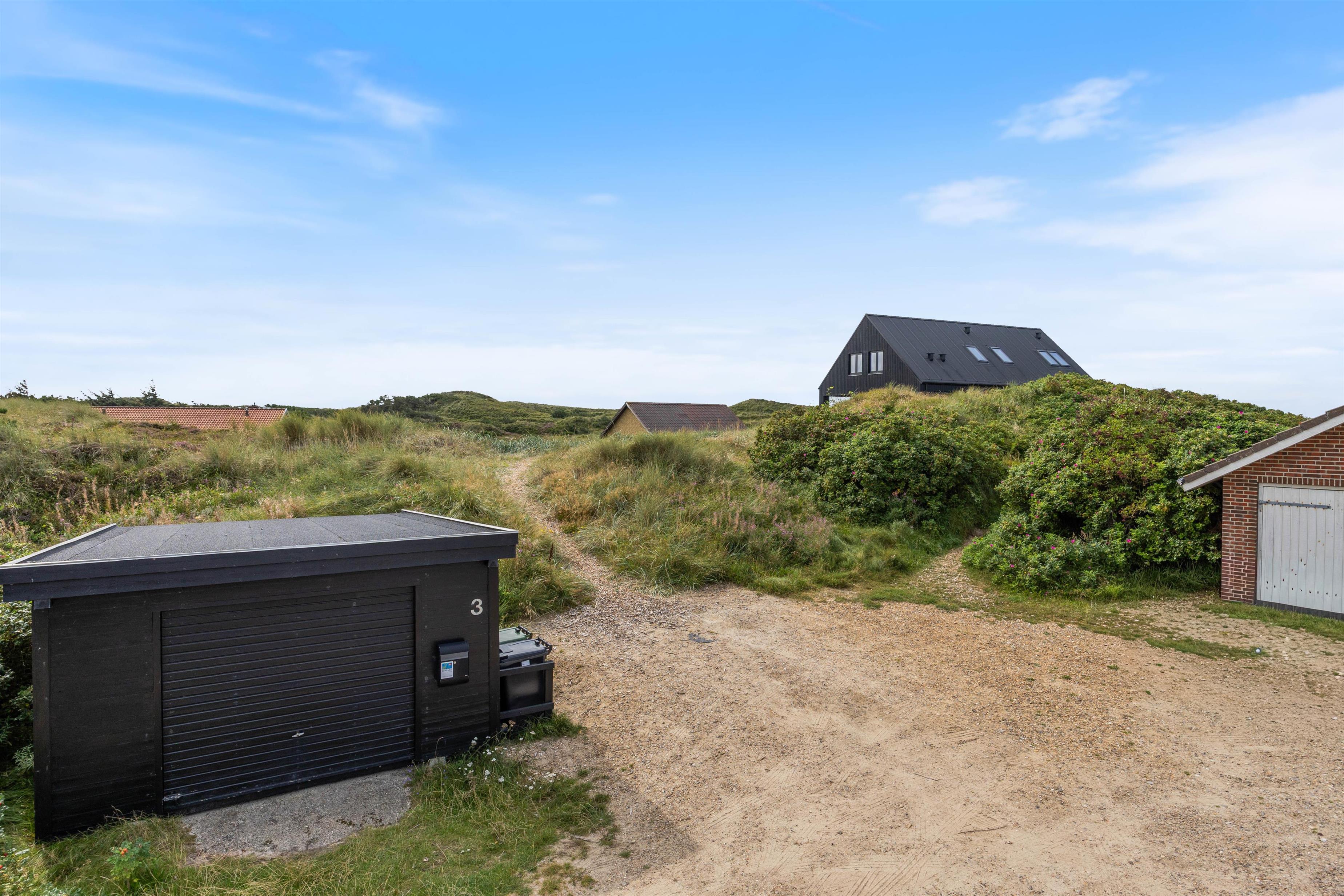 Feriehuset på Klitrosevej 3 ligger godt gemt fra vejen og fra parkeringspladsen, der nemt kan rumme 2 biler, fører en sti jer igennem marehalmen op til feriehuset, imens I bliver mødt af et fremragende syn over området.