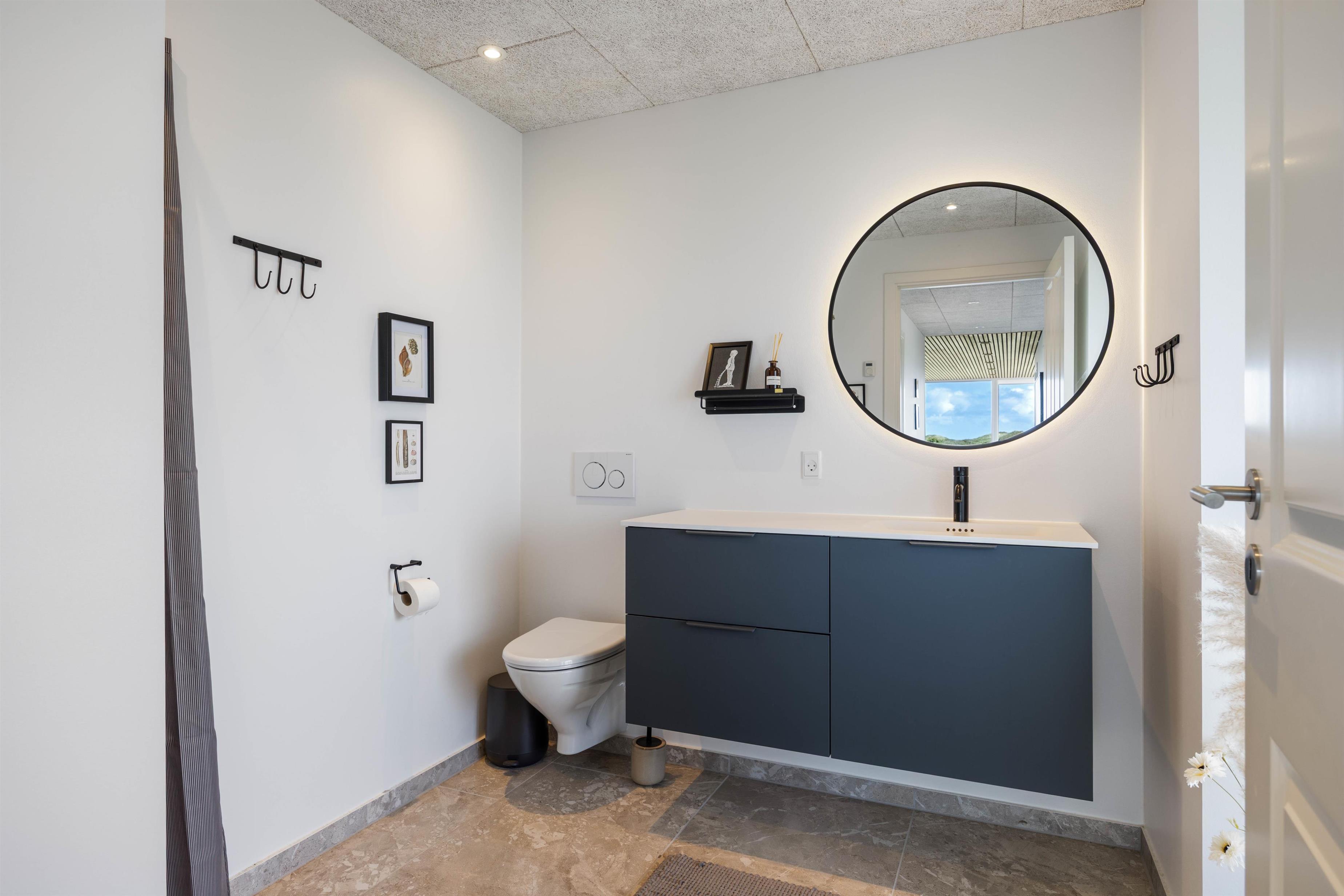 Når I træder ind i feriehuset, lægger I straks mærke til de lækre, naturlige materialer, som dette feriehus er indrettet med. Som det første møder I den rummelige entre/bryggers, hvor også vaskemaskinen og tørretumbleren befinder sig.