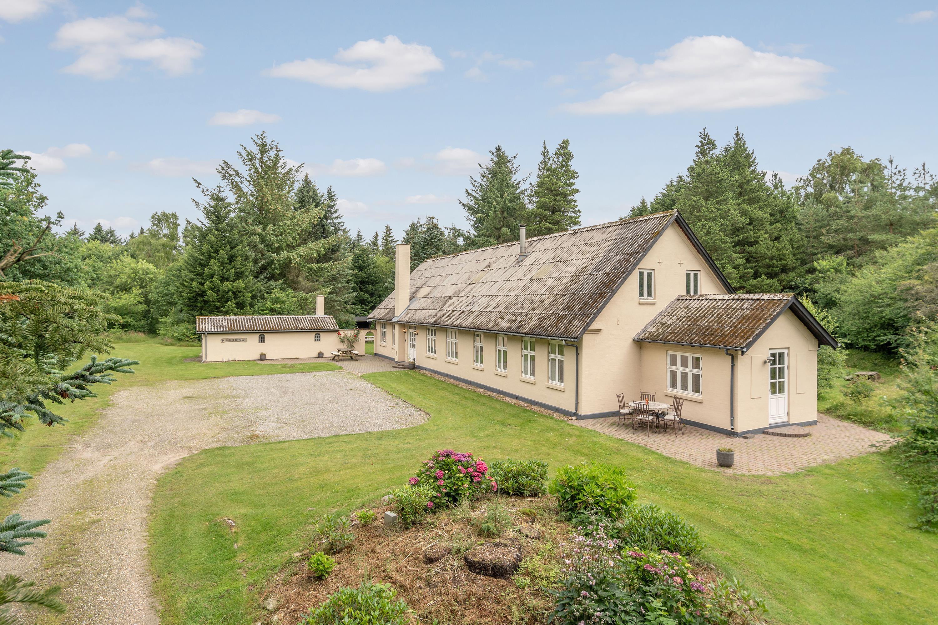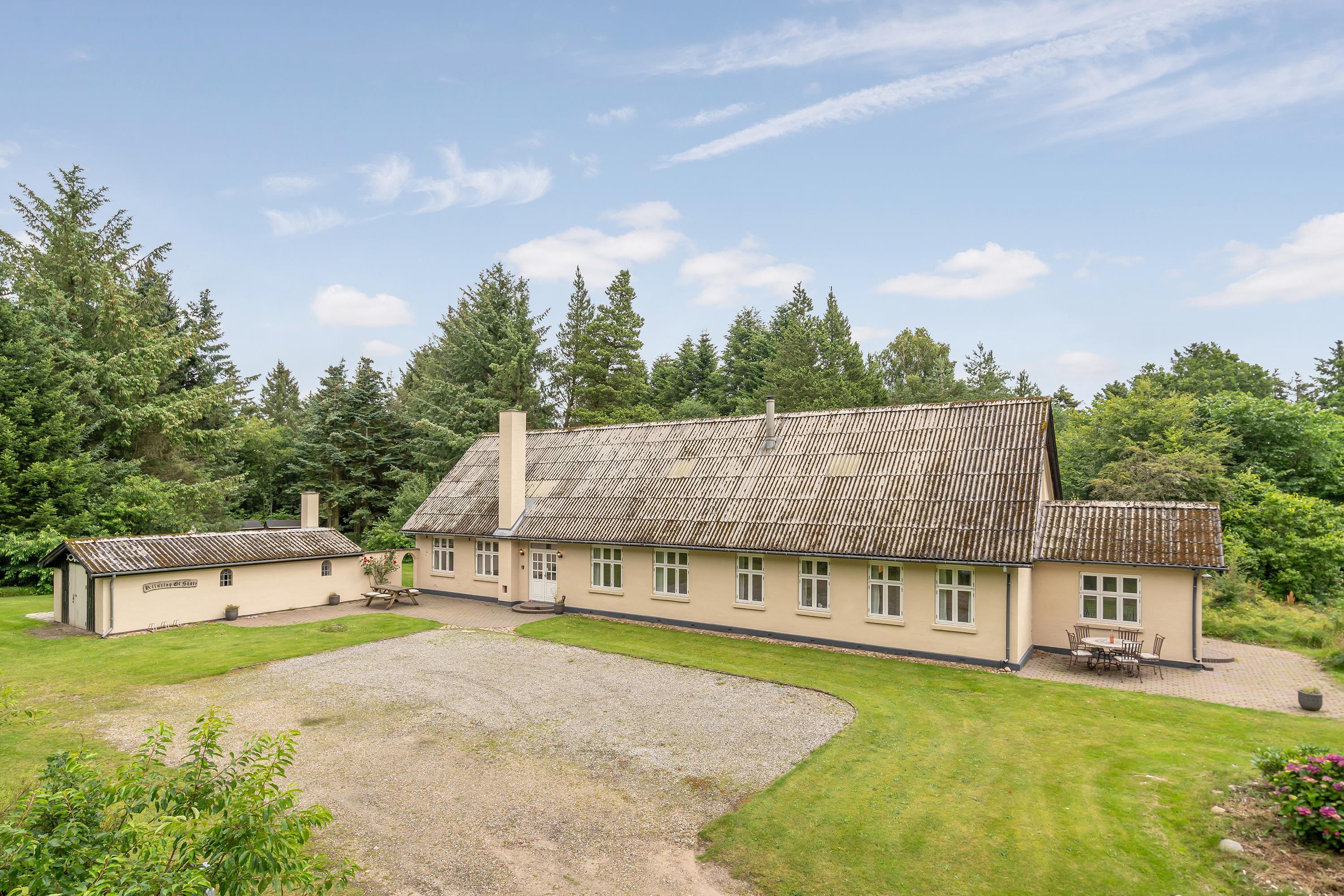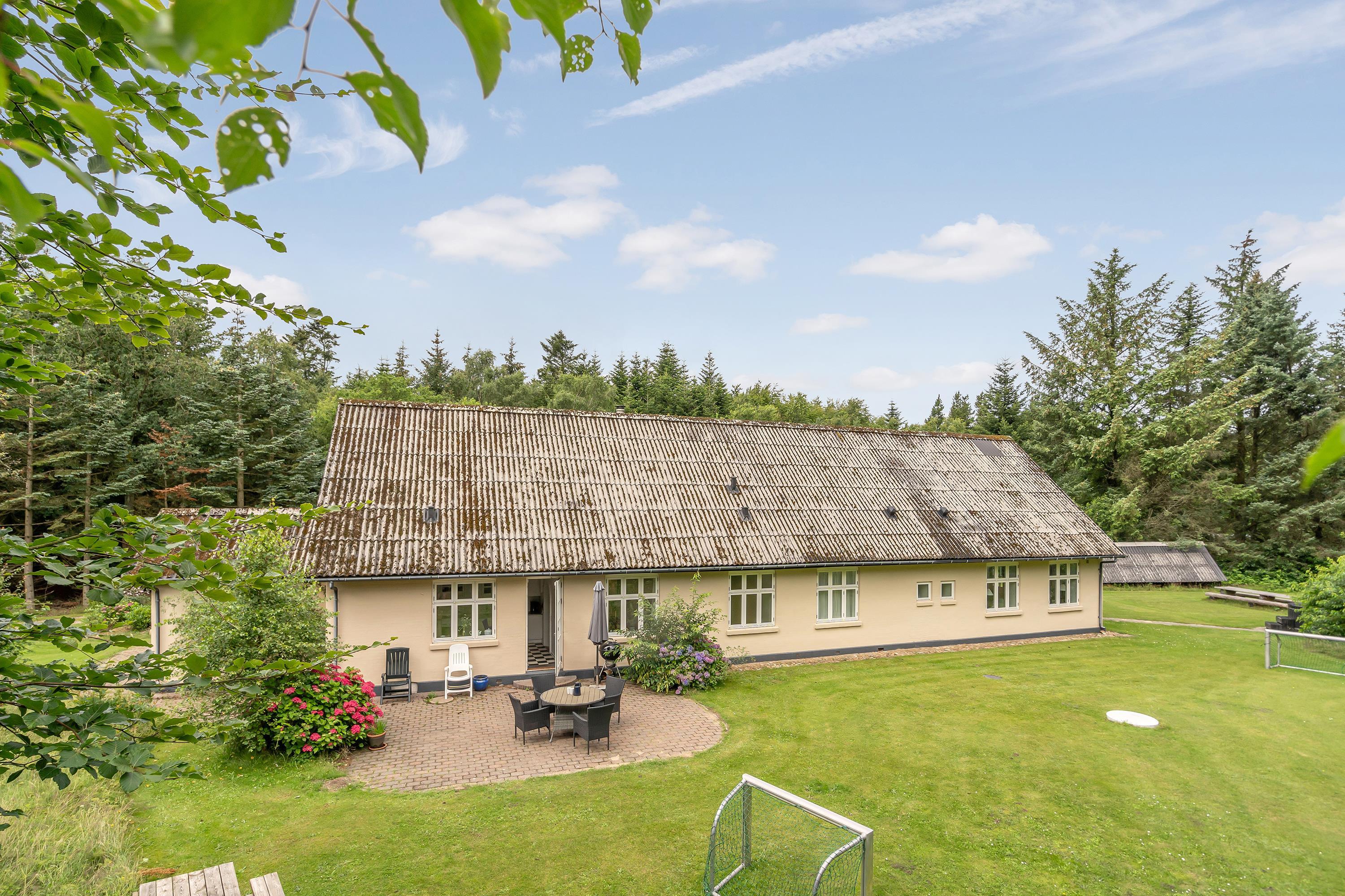 Feriehuset består af køkken med langbord til hyggelige familiemiddage, kombineret spise – og opholdsstue, lille TV-stue samt mulighed for 16 overnattende gæster i 6 dobbeltværelser og 4 opredninger på 2 sovesofaer. Desuden rummer huset 3 badeværelser, stor (fordelings)gang samt lækre udendørsfaciliteter; hop i vores vildmarksbad efter en tur på mountainbike på de omkringliggende ruter i plantagen – her er noget for enhver, og mountainbike-sporerne starter LIGE uden for døren. Er cyklen blevet beskidt, er der mulighed for at gøre klar til næste tur på vores cykel-vaskeplads og i det dertil indrettede cykelværksted.