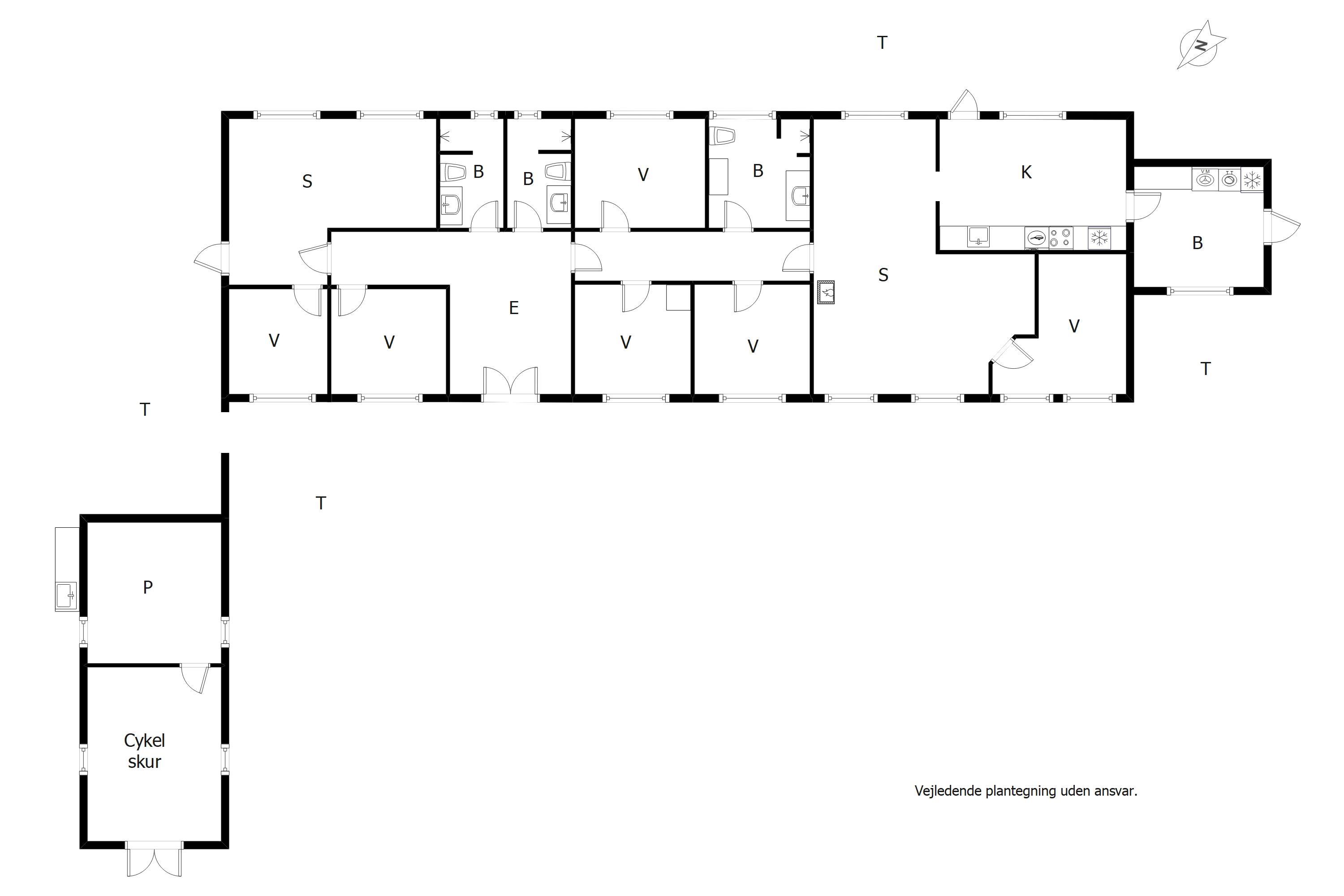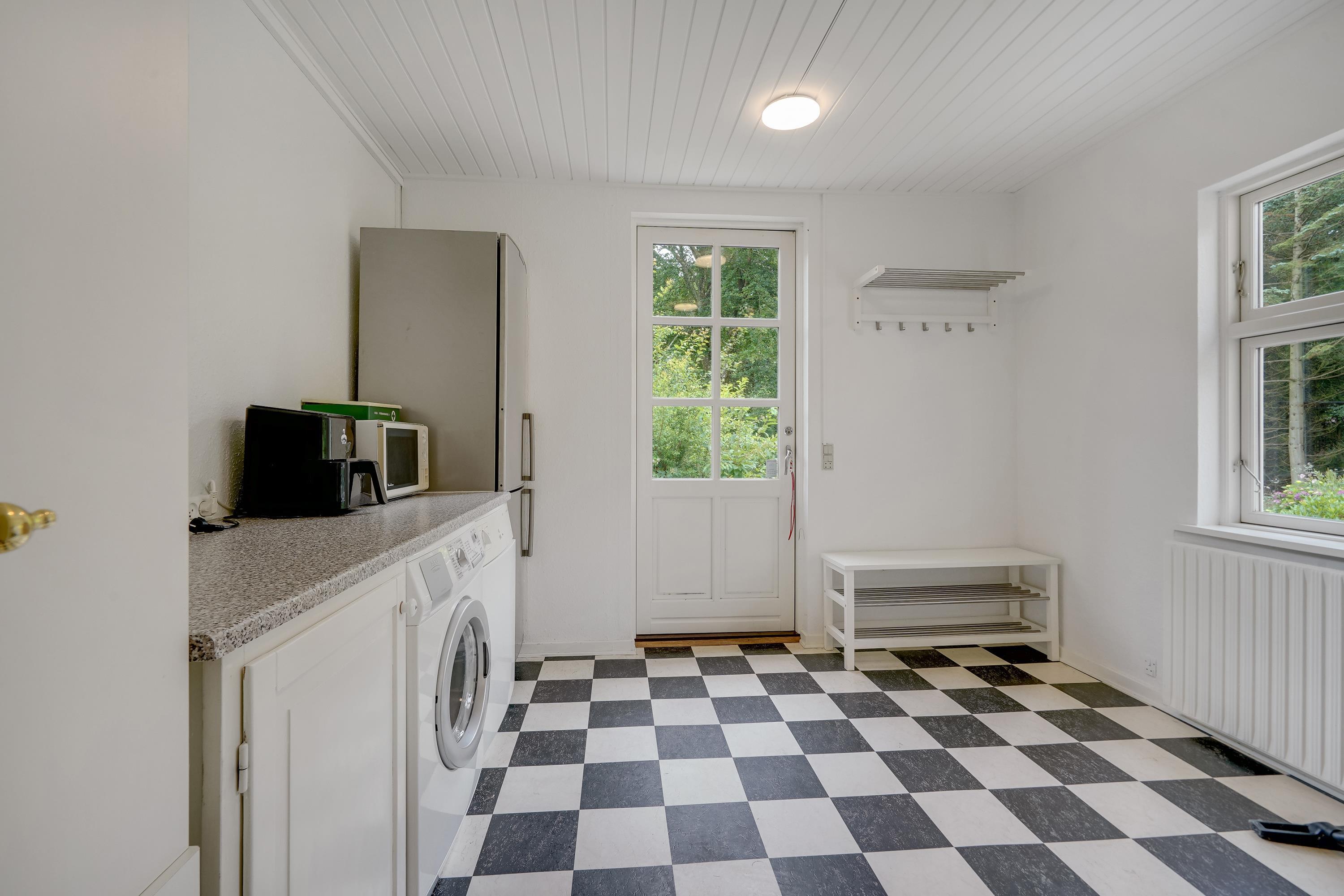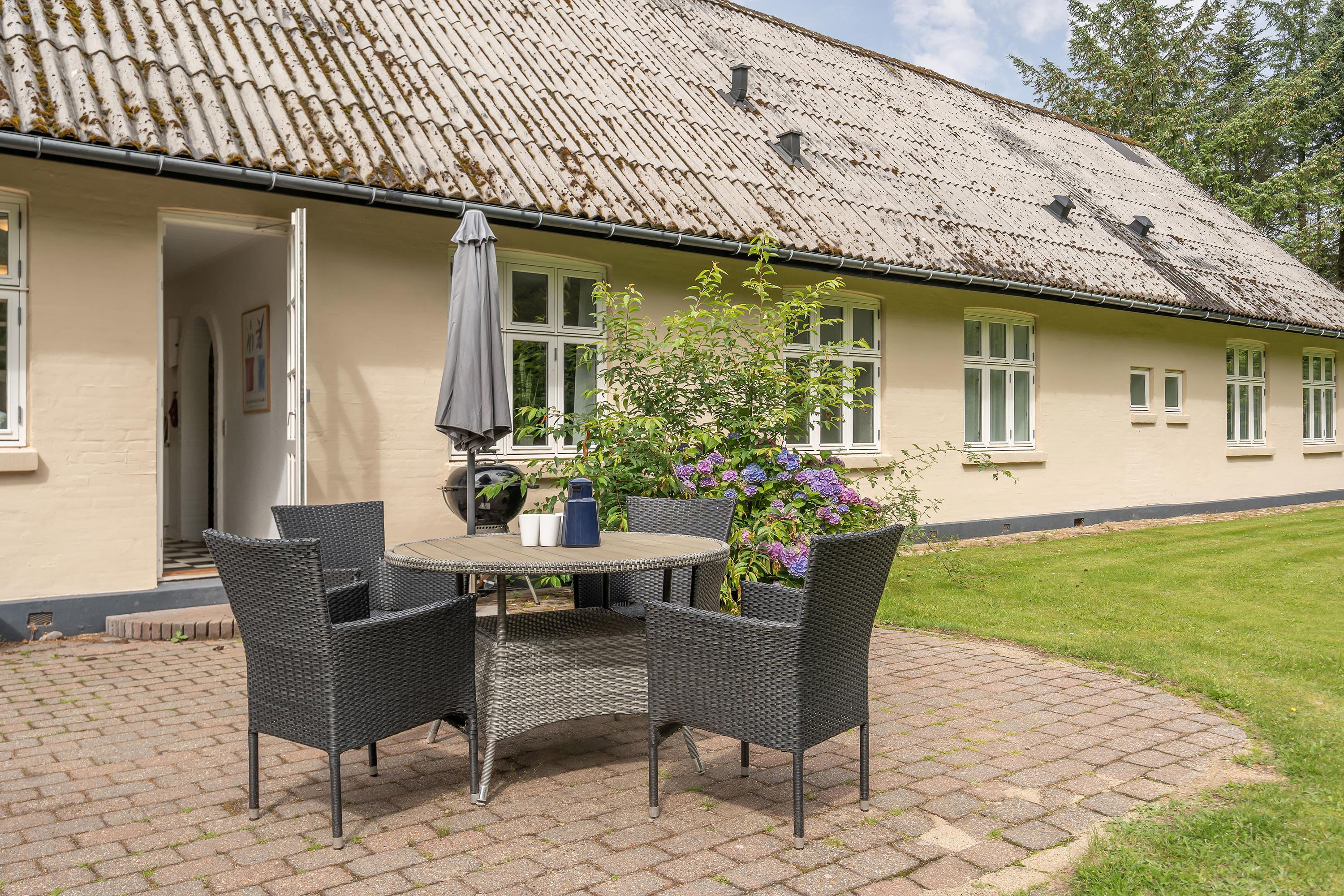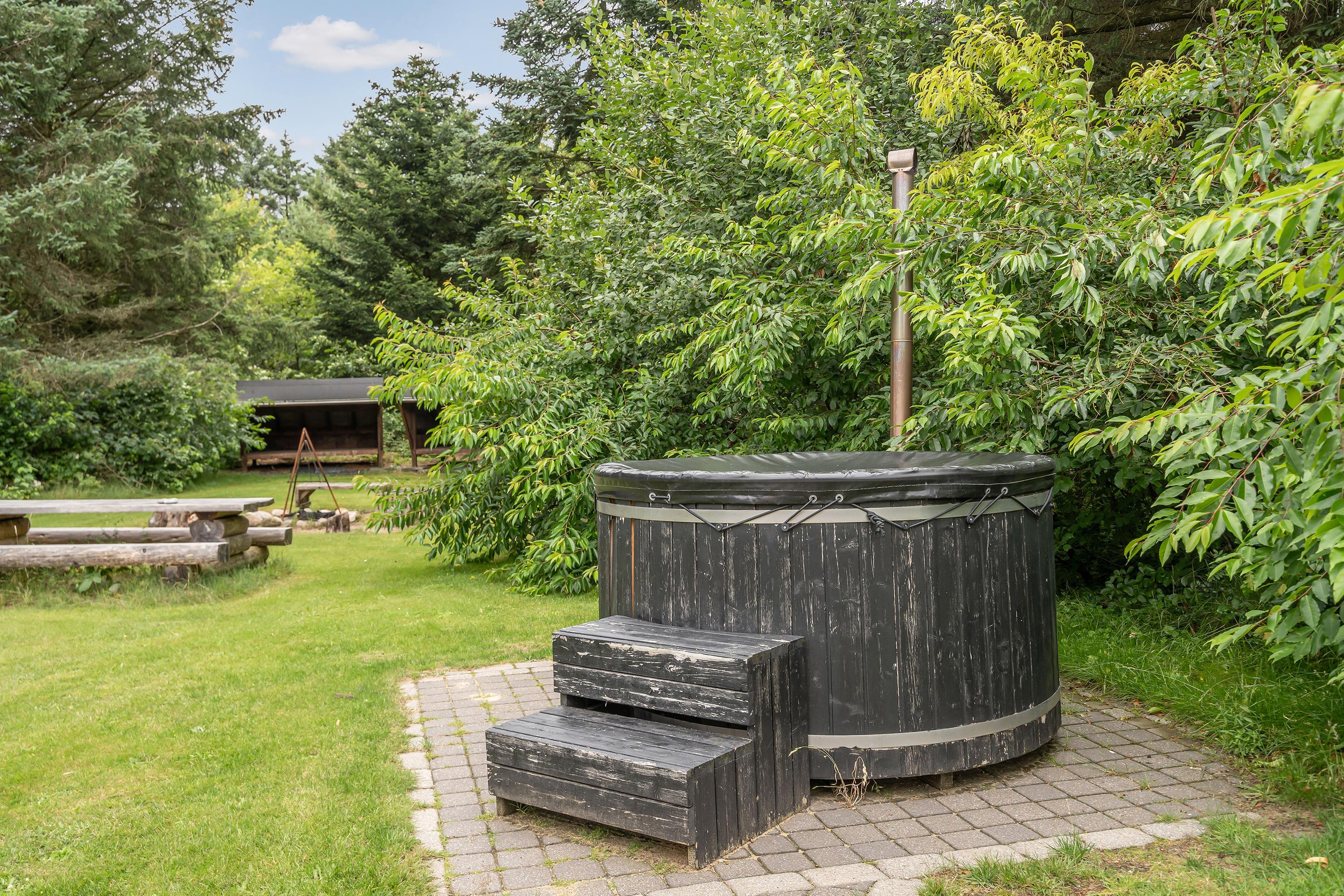 Feriehuset består af køkken med langbord til hyggelige familiemiddage, kombineret spise – og opholdsstue, lille TV-stue samt mulighed for 16 overnattende gæster i 6 dobbeltværelser og 4 opredninger på 2 sovesofaer. Desuden rummer huset 3 badeværelser, stor (fordelings)gang samt lækre udendørsfaciliteter; hop i vores vildmarksbad efter en tur på mountainbike på de omkringliggende ruter i plantagen – her er noget for enhver, og mountainbike-sporerne starter LIGE uden for døren. Er cyklen blevet beskidt, er der mulighed for at gøre klar til næste tur på vores cykel-vaskeplads og i det dertil indrettede cykelværksted.