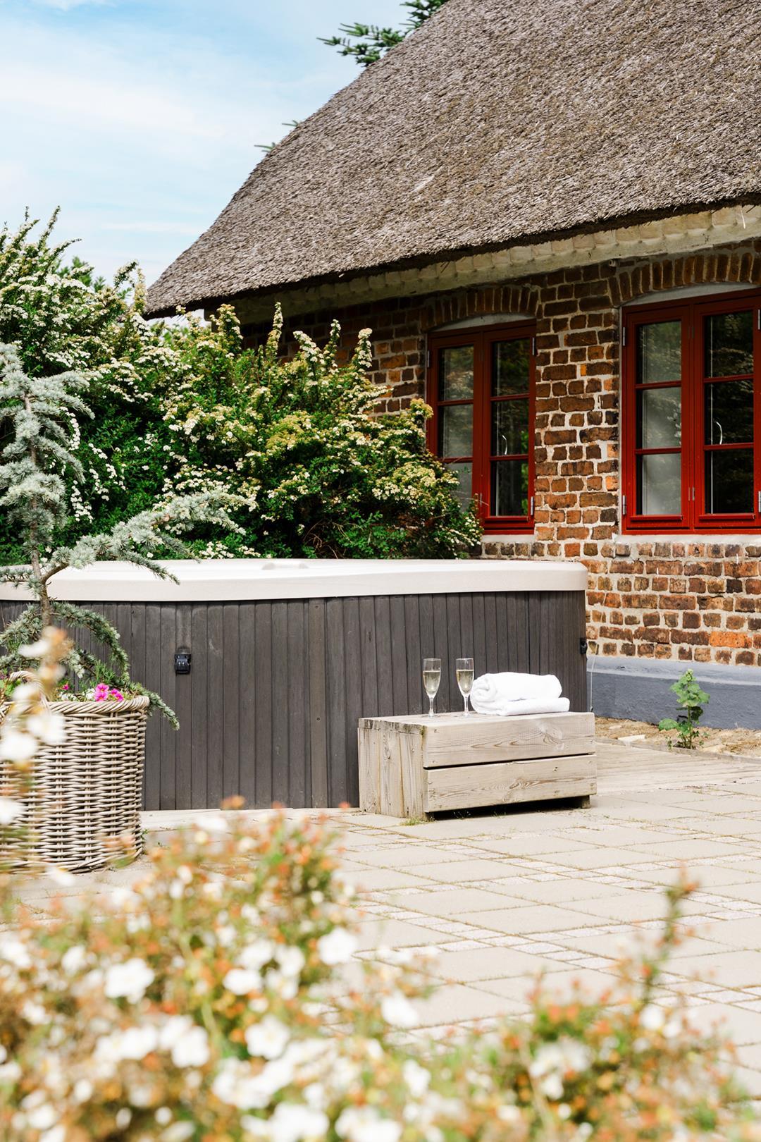 Der er også en dejlig spa på terrassen ved hovedhuset. Spa'en må benyttes af alle gæster.