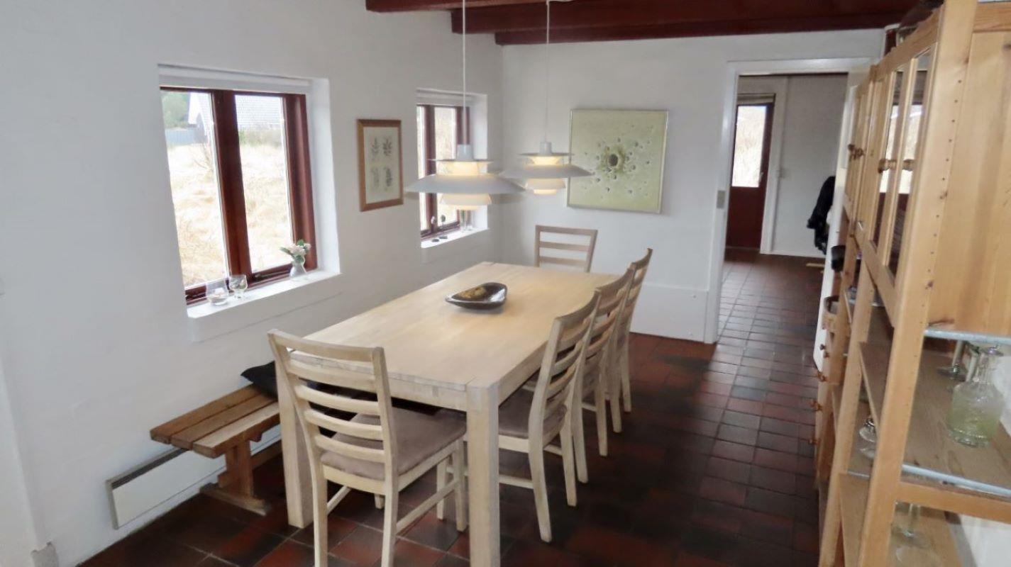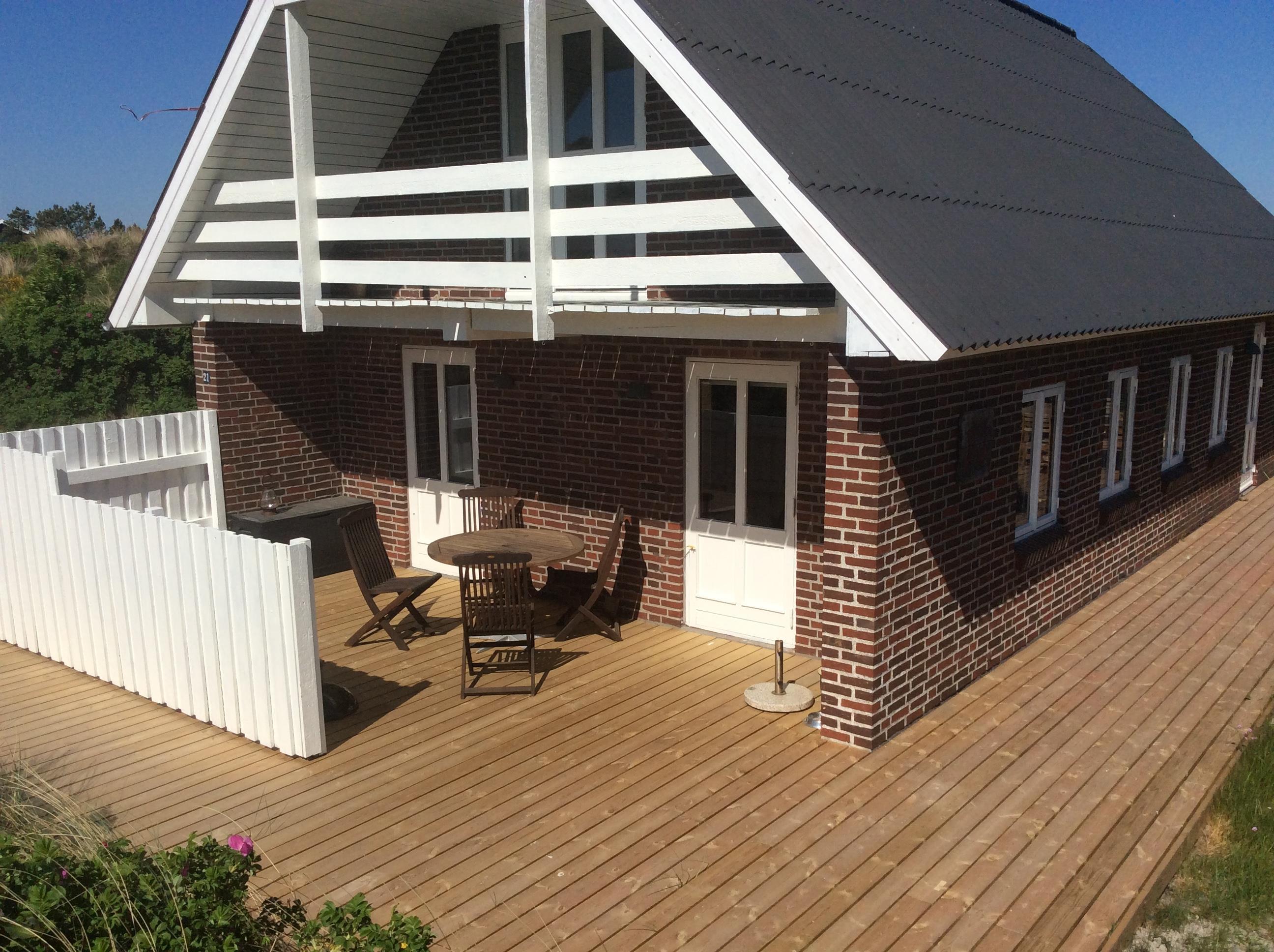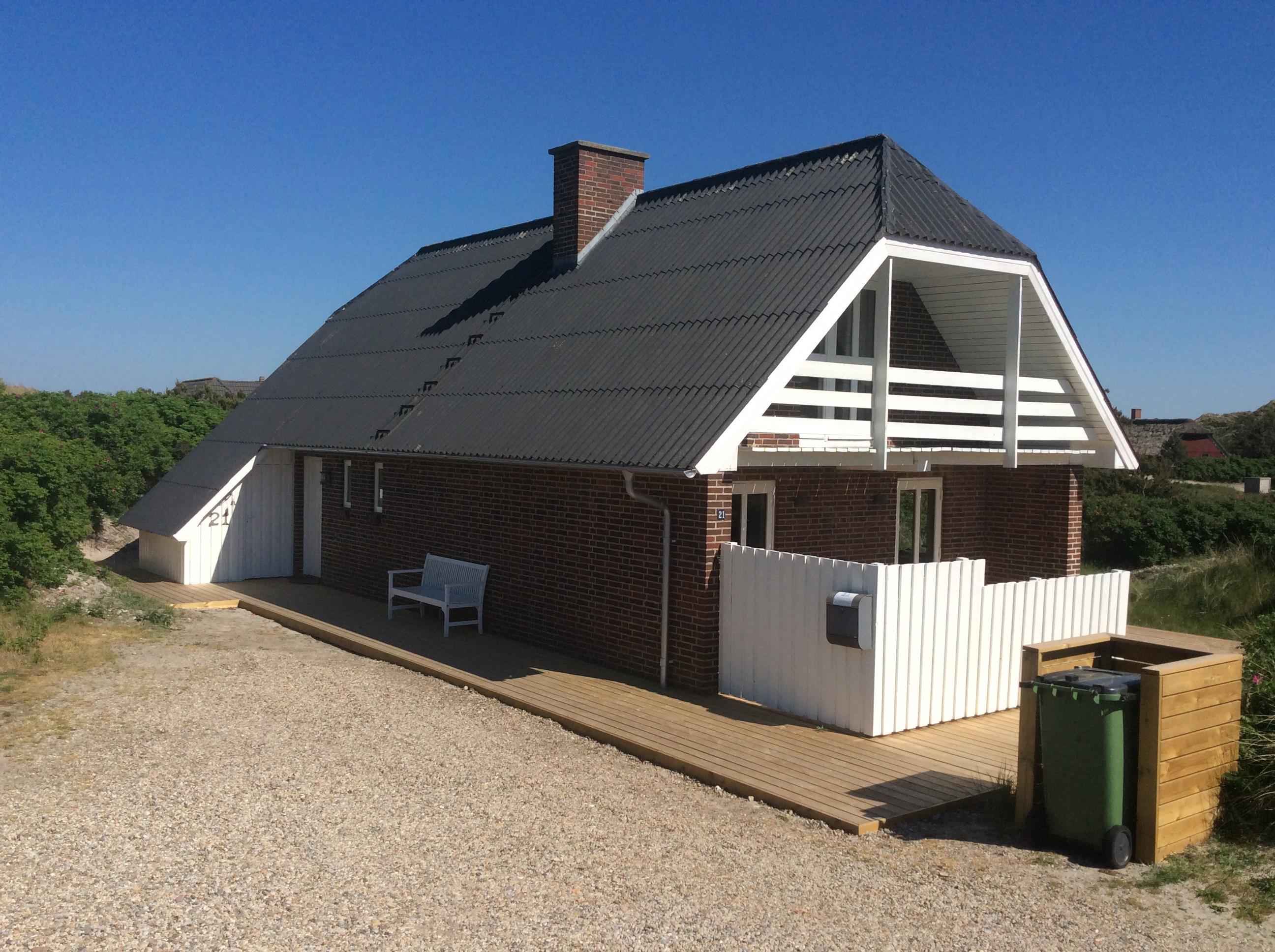 Charmerende 2-etagers muret feriehus beliggende på Porsevej 21 i tilknytning til Klitgaarden på en ugeneret stor klitgrund tæt på Henne Strands centrum og stranden.
