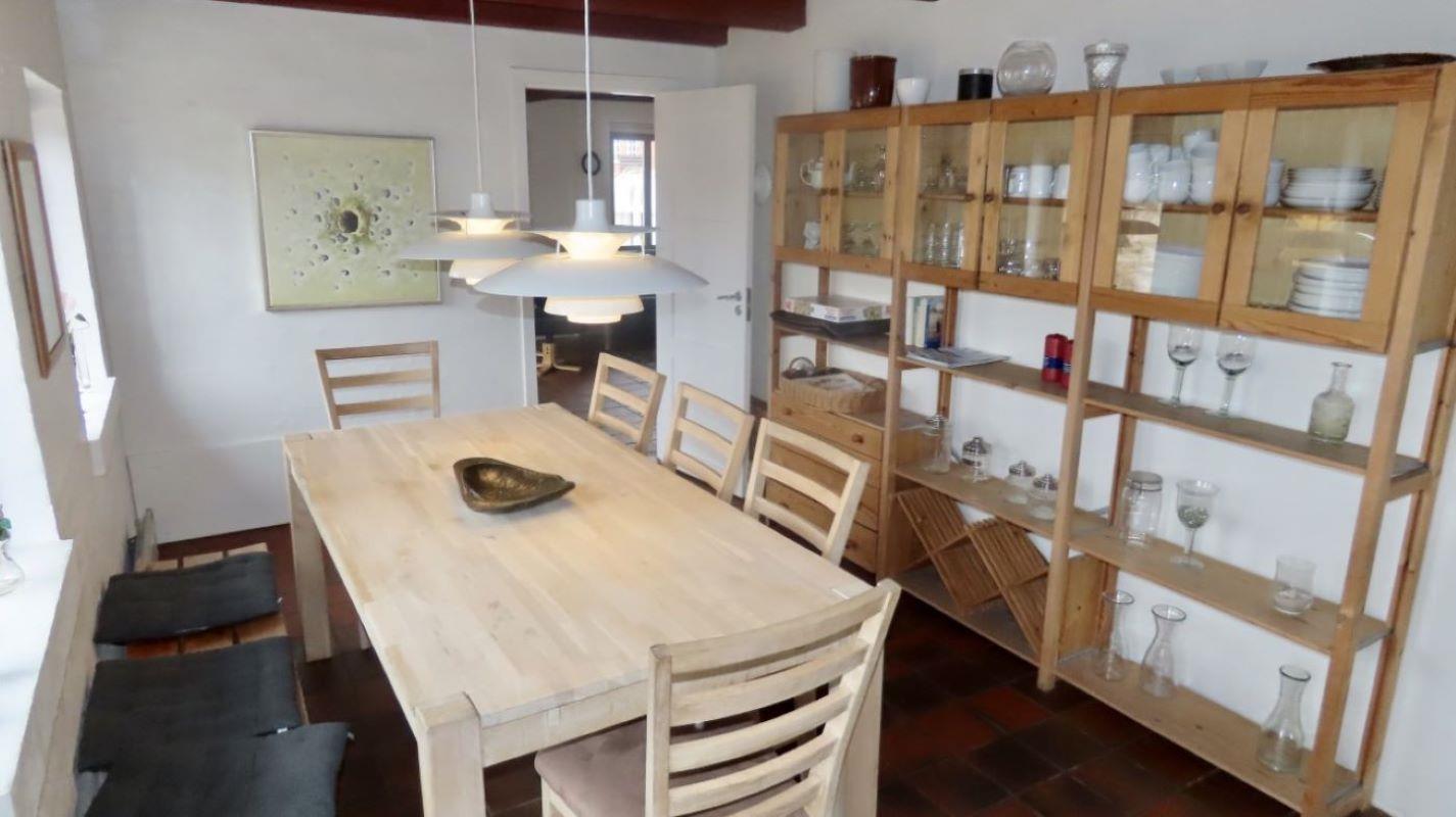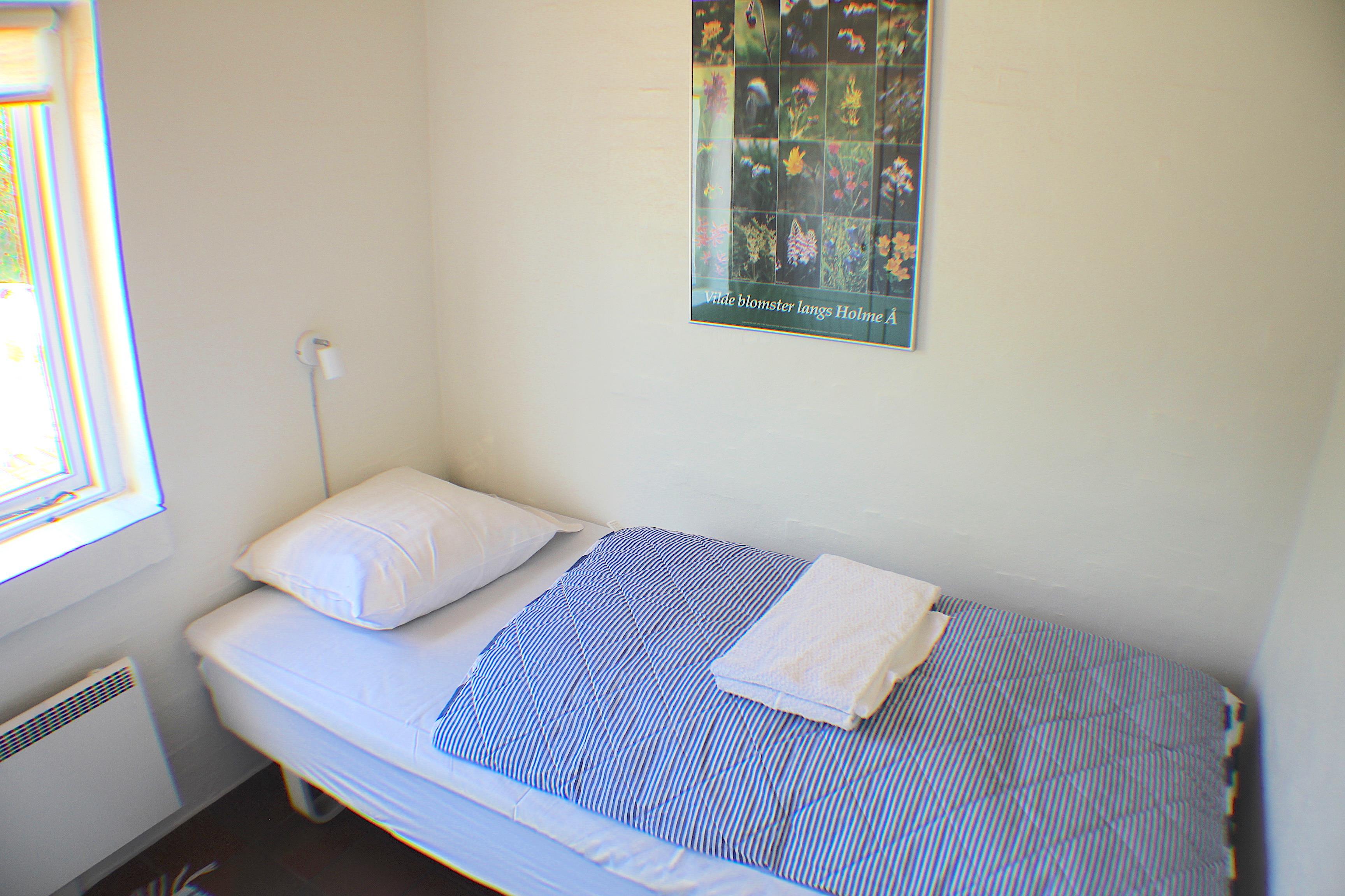 3 værelser, 2 på 1. sal med 2 dobbeltsenge og 2 enkelt senge i hver, samt 1 værelse i stueetagen med 1 enkeltseng. Huset udlejes til 7 personer.