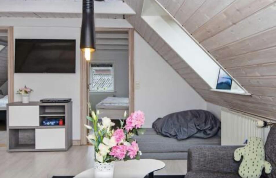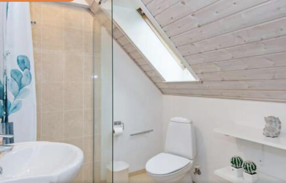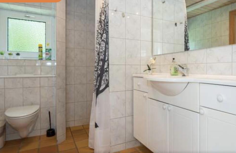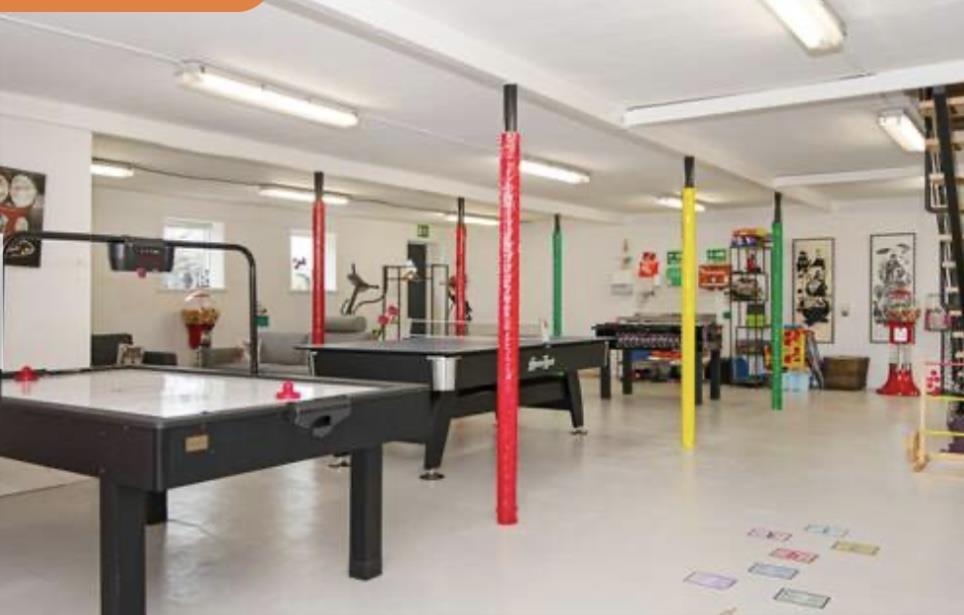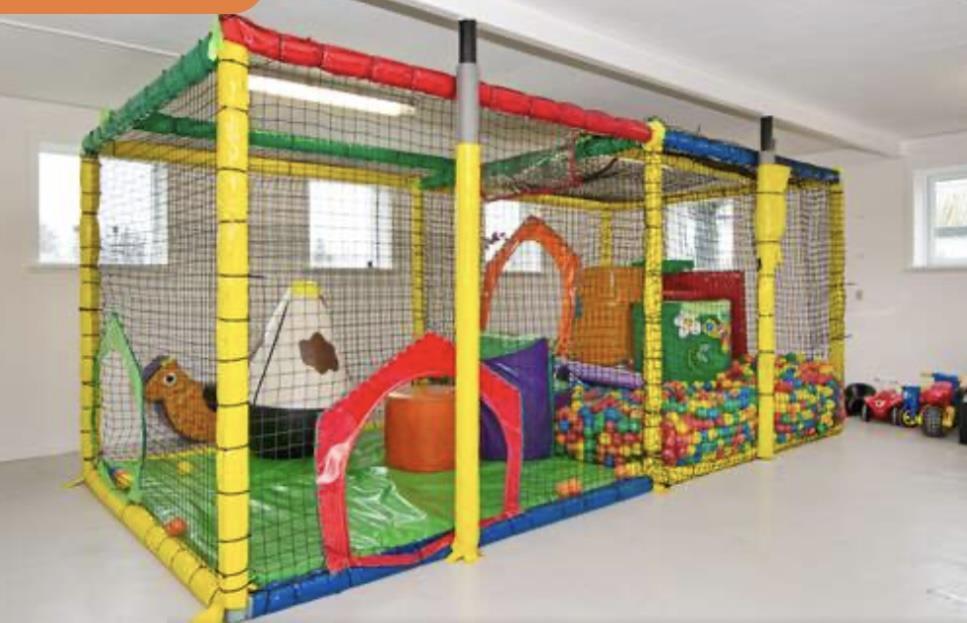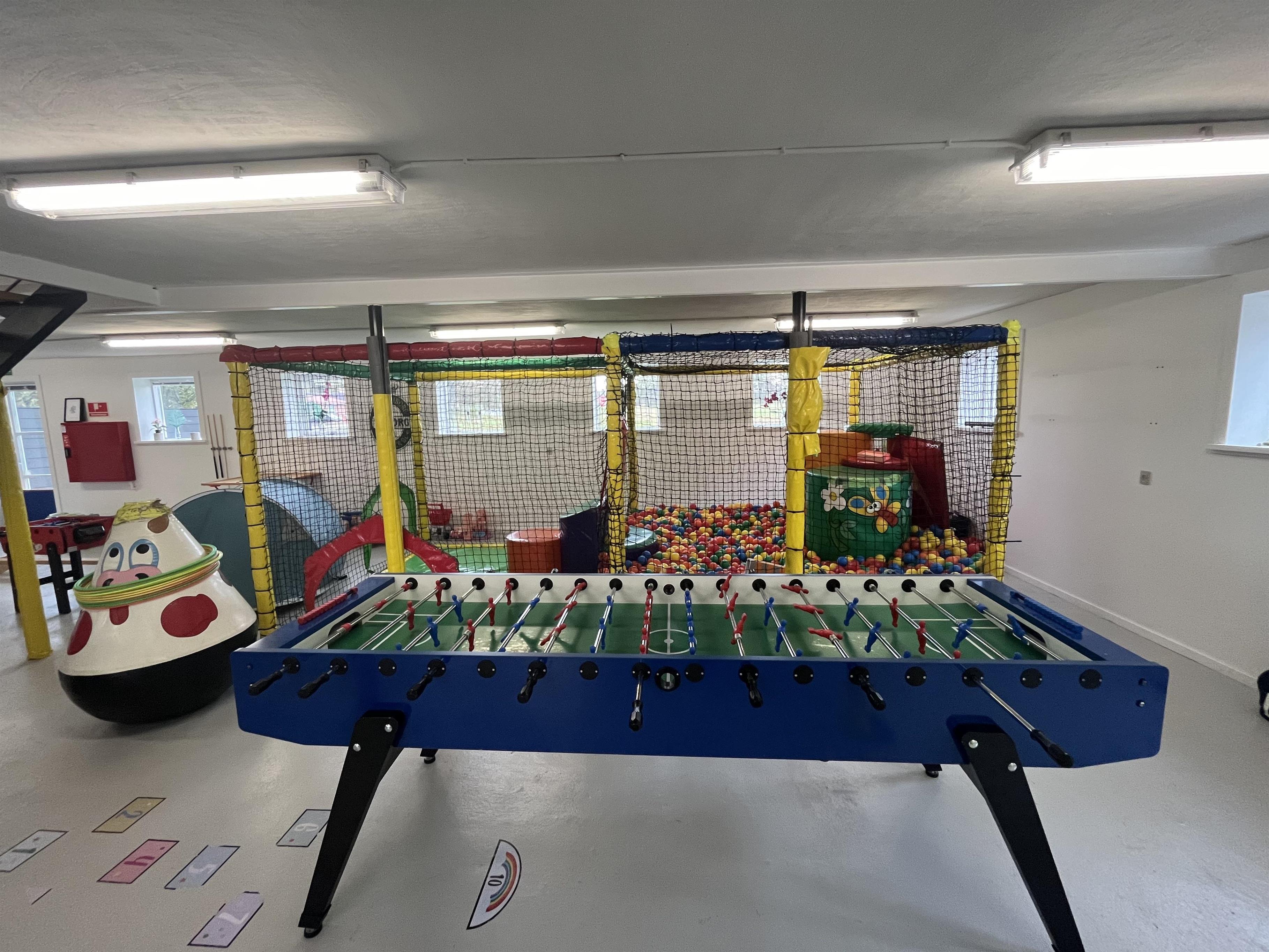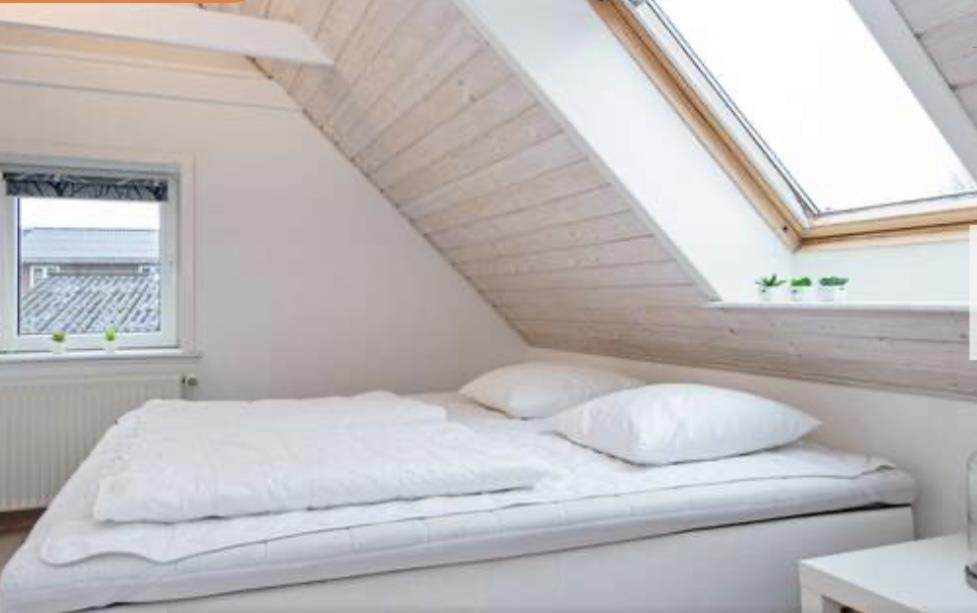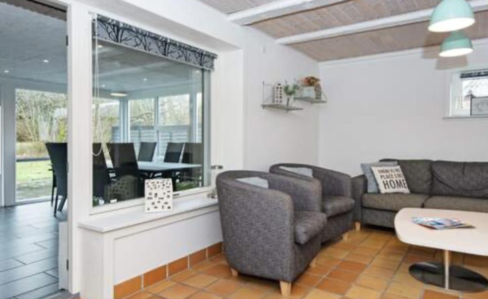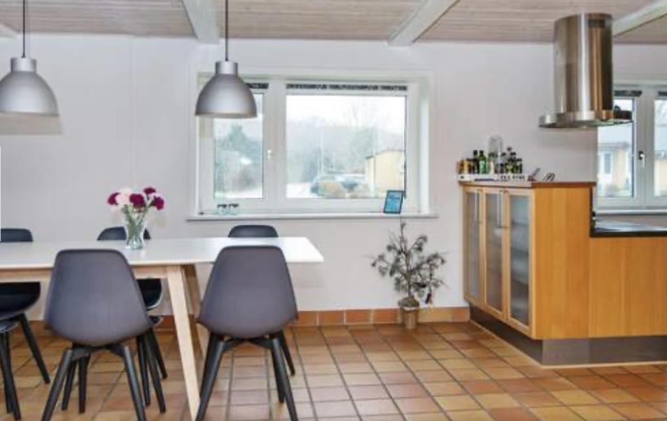 Køkkenet er i åben forbindelse til stuen. Der er 4 soveværelser, alle med gode senge. Der er et 180 m2 stort aktivitetsrum som ligger i en bygning på den modsatte side af gårdspladsen, ca. 20 meter væk, med billard, airhockey, kuglebad/boldbassin, bob spil, dart, bordtennis, bordfodbold, pudegynge, PlayStation 4, storskærm til streaming af film samt masser af legesager.