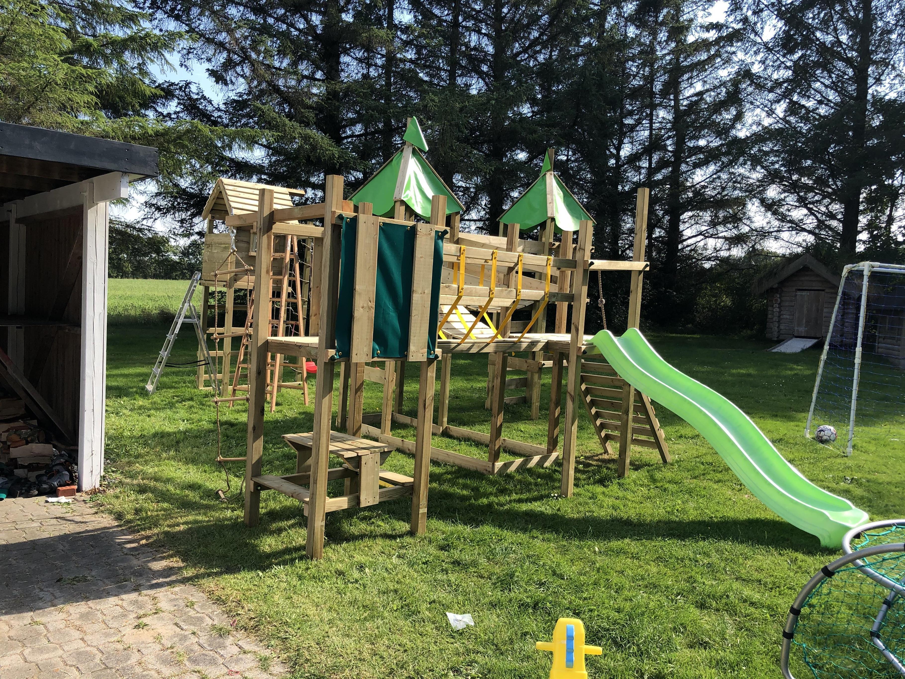 Den fælles have indeholder masser af aktiviteter til børnefamilien. Der er et område til udelivet med bålplads, eller BBQ-/bålhytte i dårligt vejr, hvor der kan laves snobrød. Der er to store shelters til 4 personer til overnatning i det fri. De udendørs aktiviteter inkluderer et 40 m2 klatrestativ med gynger, rutsjebane og hængebro, trampolin (benyttes på eget ansvar/forsikring), basketmål, fodboldmål, legetårn for de mindste samt udendørs toilet.