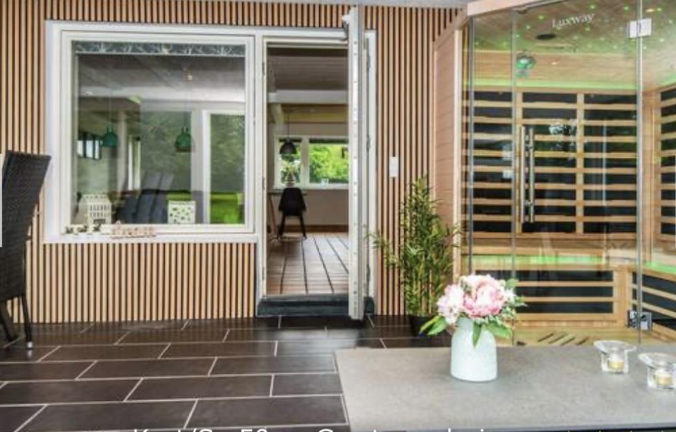 Privat have: sommerhuset har flere dejlige terrasser, hvilket gør udelivet til en naturlig del af ferieopholdet. Stor terrasse med spabad. Stor udestue med infrarød sauna. På 1. sal er der stor balkon-terrasse og direkte adgang til haven herfra. Derudover fælles have (deles med 71b, som også kan lejes, hvis I er flere, der skal på ferie sammen. FeriehusDirect husnummer: 60059).