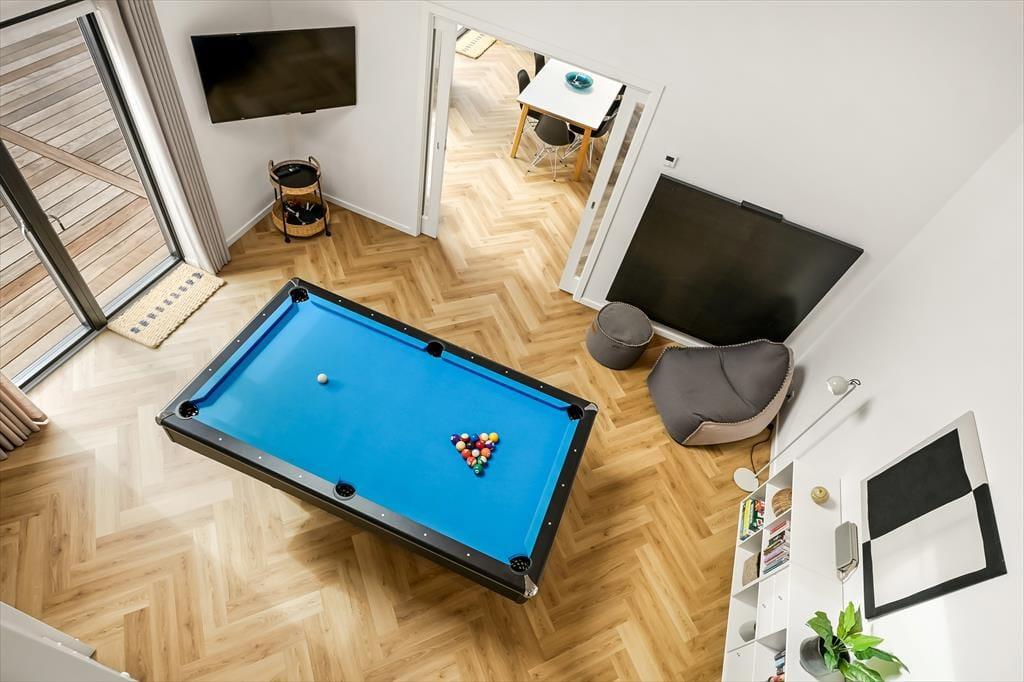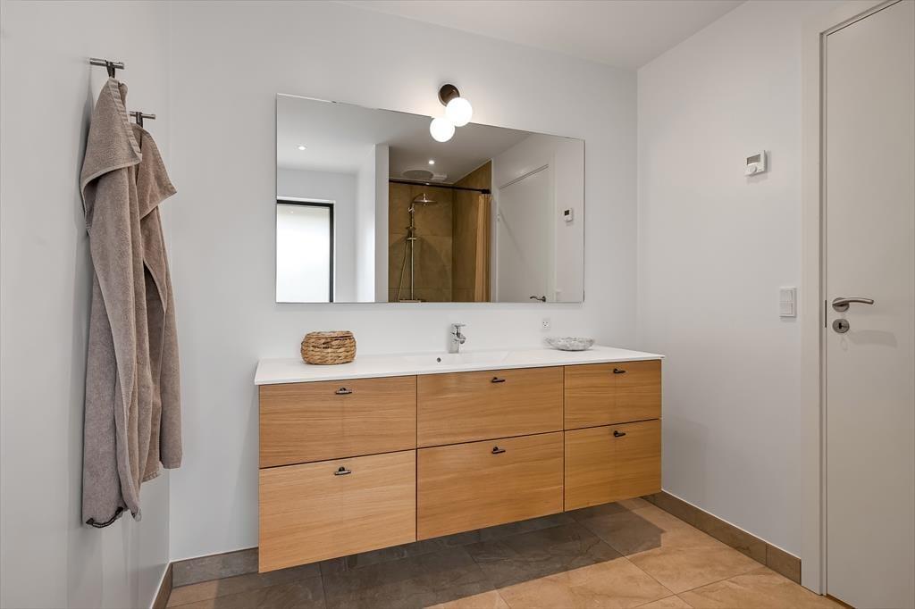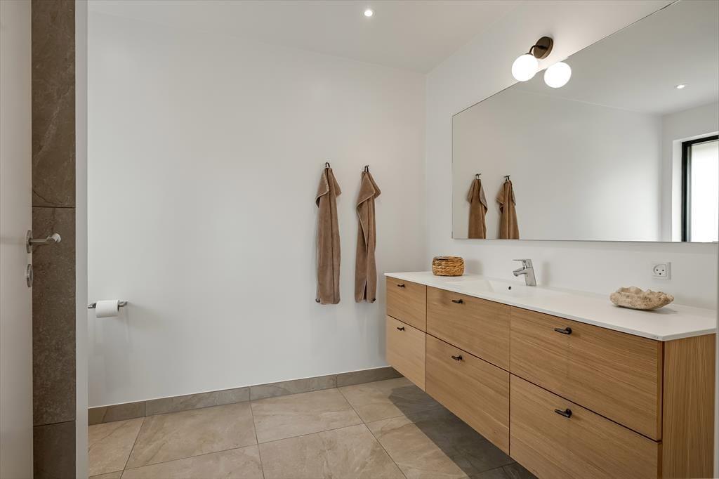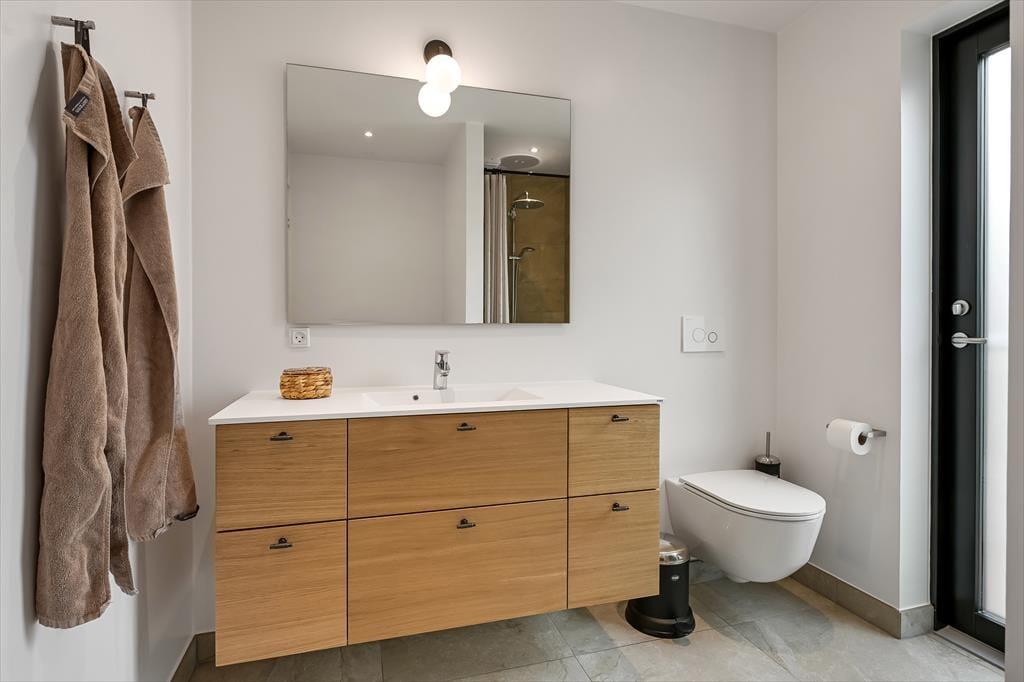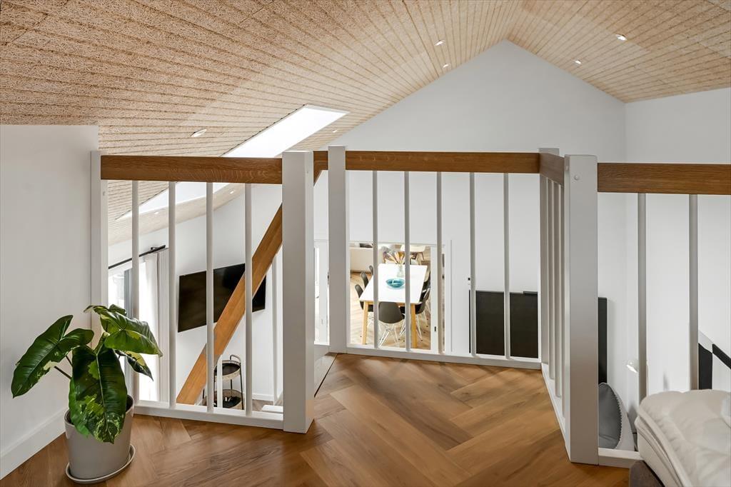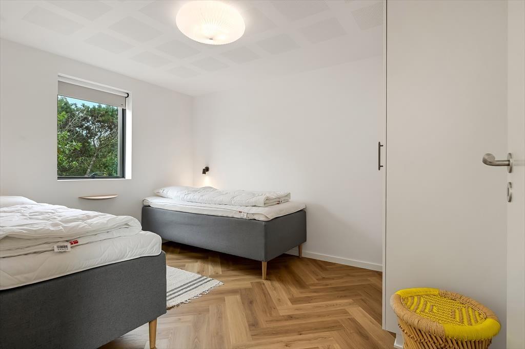 Når du træder ind i sommerhuset, mødes du af en lys og indbydende indretning, der straks sætter feriestemningen. Her kan du samles i det hyggelige opholdsrum, hvor de store vinduer lukker masser af dagslys ind og skaber en åben forbindelse til naturen udenfor. Køkkenet ligger i åben forbindelse med spisepladsen, så I kan være sammen om madlavningen eller nyde en kop kaffe og en god snak, mens maden simrer. Indretningen er skabt til afslapning, hvad enten du vil slænge dig med en bog, spille brætspil med familien eller bare lade tankerne drive. Her er plads til både fælles hygge og små stille stunder, hvor du kan mærke roen brede sig.