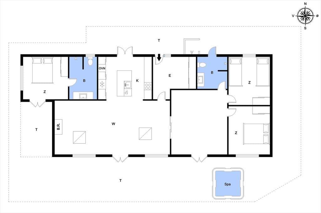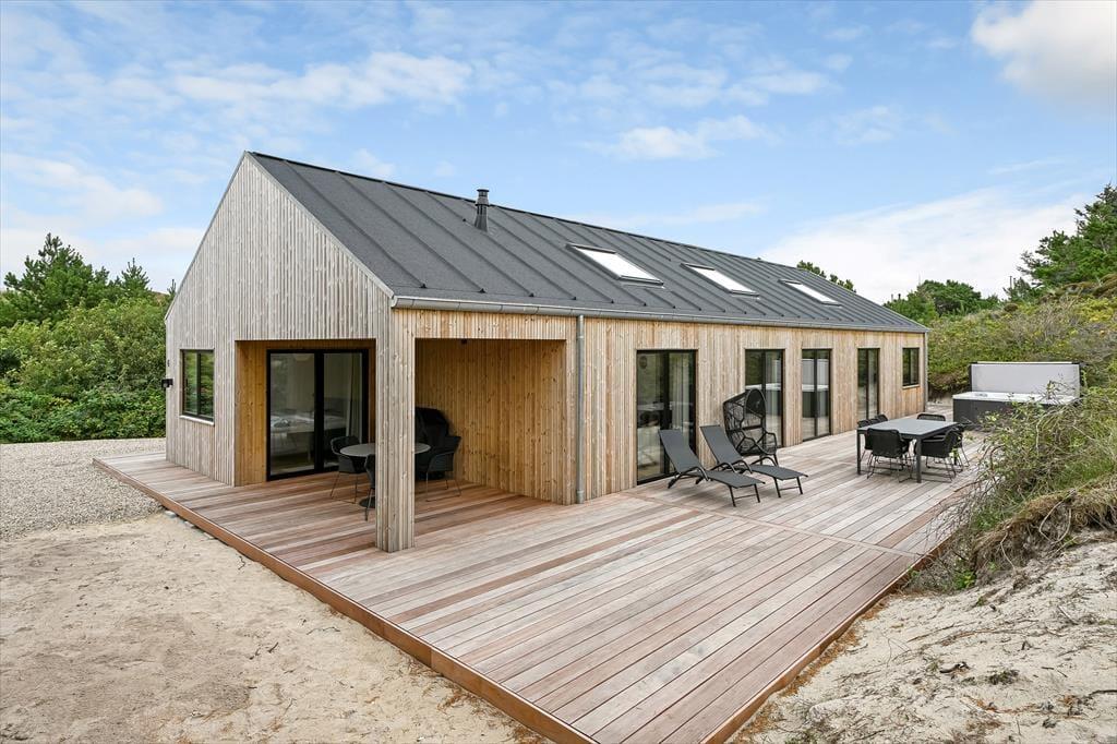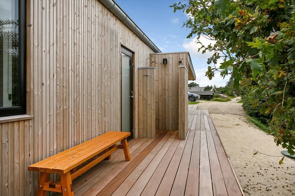 Sommerhuset ligger i en lille gryde omgivet af klitter, så du kan nyde solen og den friske havluft i læ for vinden. På terrassen finder du udespaen – et helt særligt sted at koble af, mens de varme bobler masserer kroppen. Måske vælger du at starte dagen her med et stille øjeblik, eller du slutter den med et glas vin, mens aftensolen farver himlen. Terrassen indbyder til lange måltider under åben himmel, og når solen står højt, kan du finde en god liggestol og bare nyde stilheden, afbrudt af fuglesang og den fjerne lyd af bølgerne. Placeringen giver en dejlig følelse af privatliv, hvor du virkelig kan slappe af uden forstyrrelser.