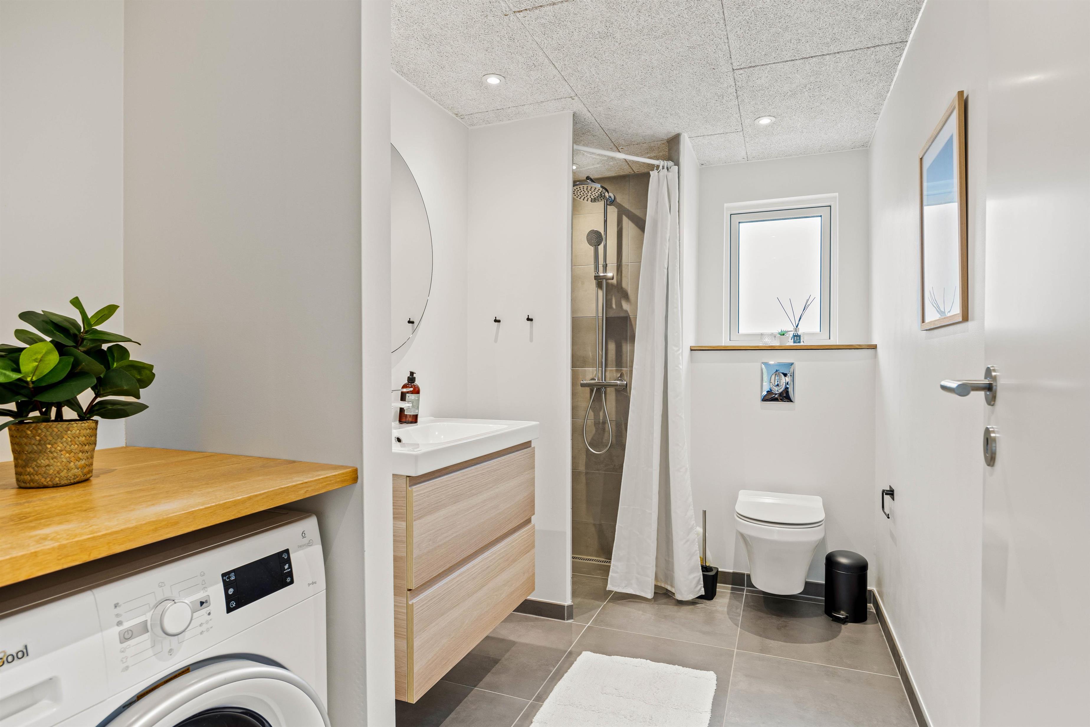 I vil føle jer hjemme, straks I træder ind i det hyggelige sommerhus på 50 m2. I opholdsstuen kan I hygge jer i sofaen med TV eller en god bog. Ved spisebordet vil de fleste af jeres hjemmelavede måltider nok blive indtaget. Køkkenet indeholder alt, hvad I har brug for, for at forkæle hinanden med lækre måltider. Der er 2 soveværelser med dobbeltsenge til rådighed, så I kan blive godt udhvilede i den friske vesterhavsluft. Badeværelse med gulvvarme, så I ikke behøver at få kolde fødder. Moderne faciliteter, som opvaskemaskine, vaskemaskine og energibesparende varmepumpe er også til rådighed for jer i ferien.