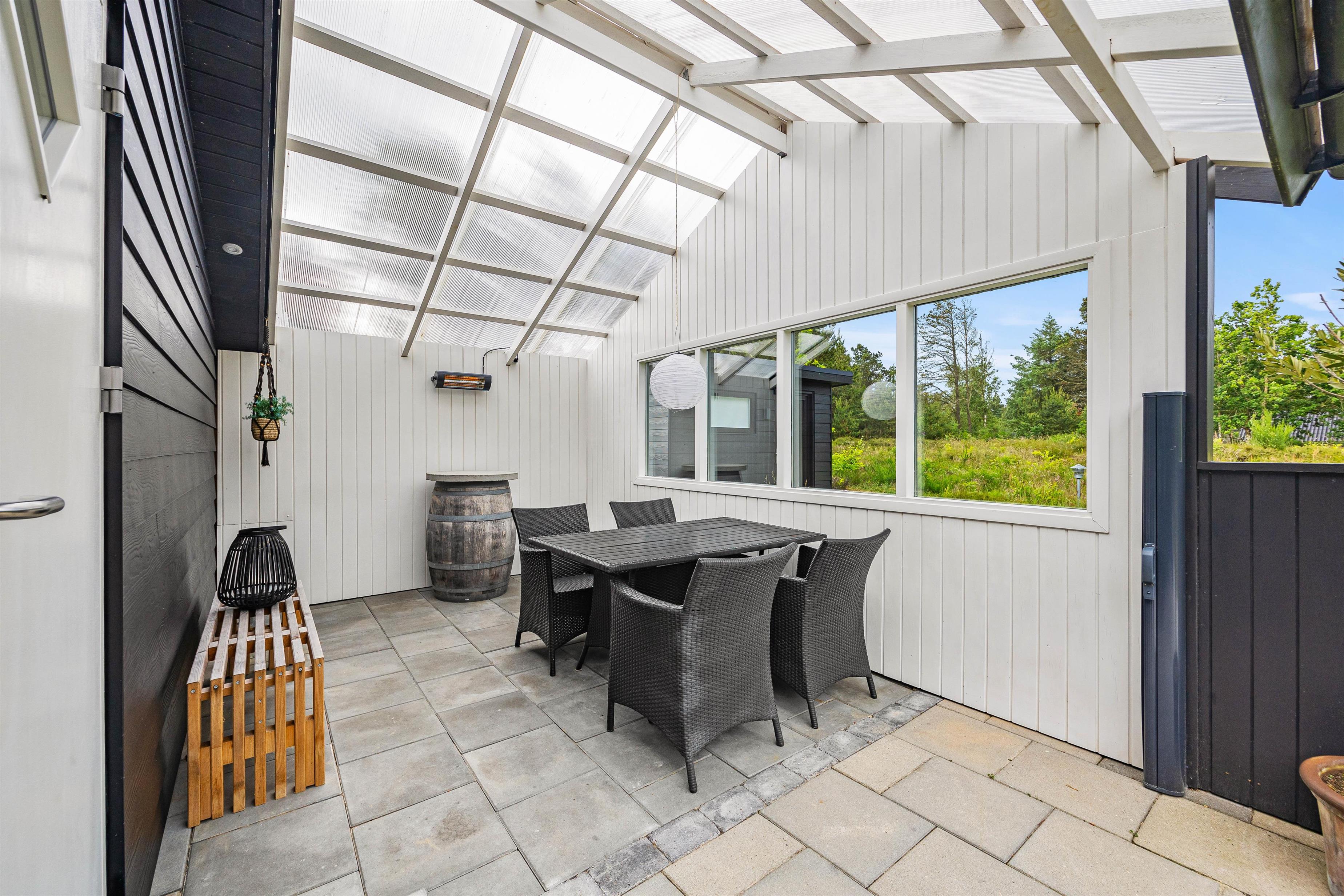 Sommerhuset på Hovgårdsvej 21 er renoveret med nænsom hånd i 2020. Her er ideelt til et par, som ønsker en ugenert ferie med fred og ro i nærheden af Vesterhavet. God plads hvor der indendørs er en dejlig feriestemning. Udendørs en dejlig afskærmet terrasse med en overdækket del, hvor I kan opholde jer i al slags vejr. Udebruser og naturgrund på 2.500 m2 fuldender fornemmelsen af ferie i det fri.