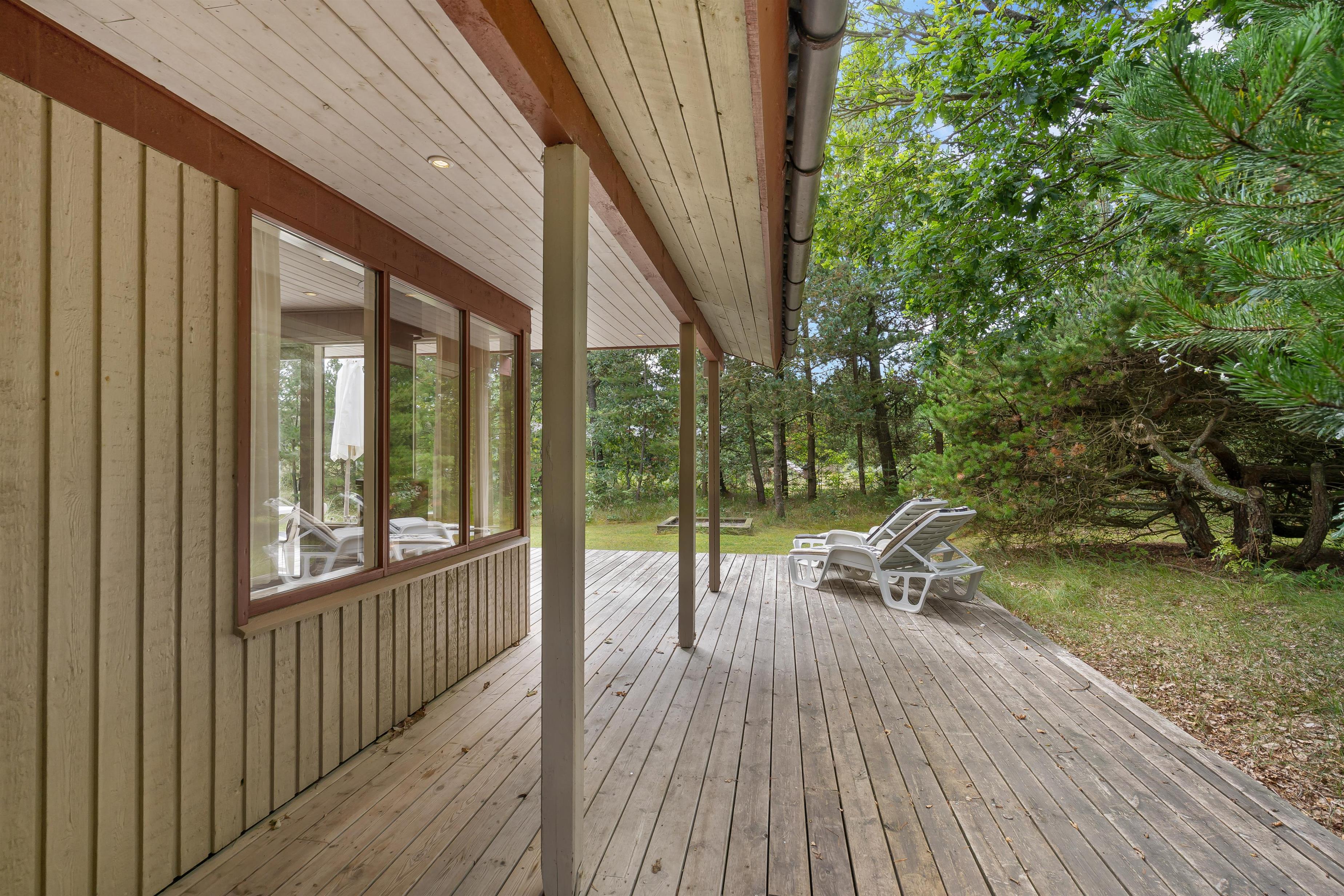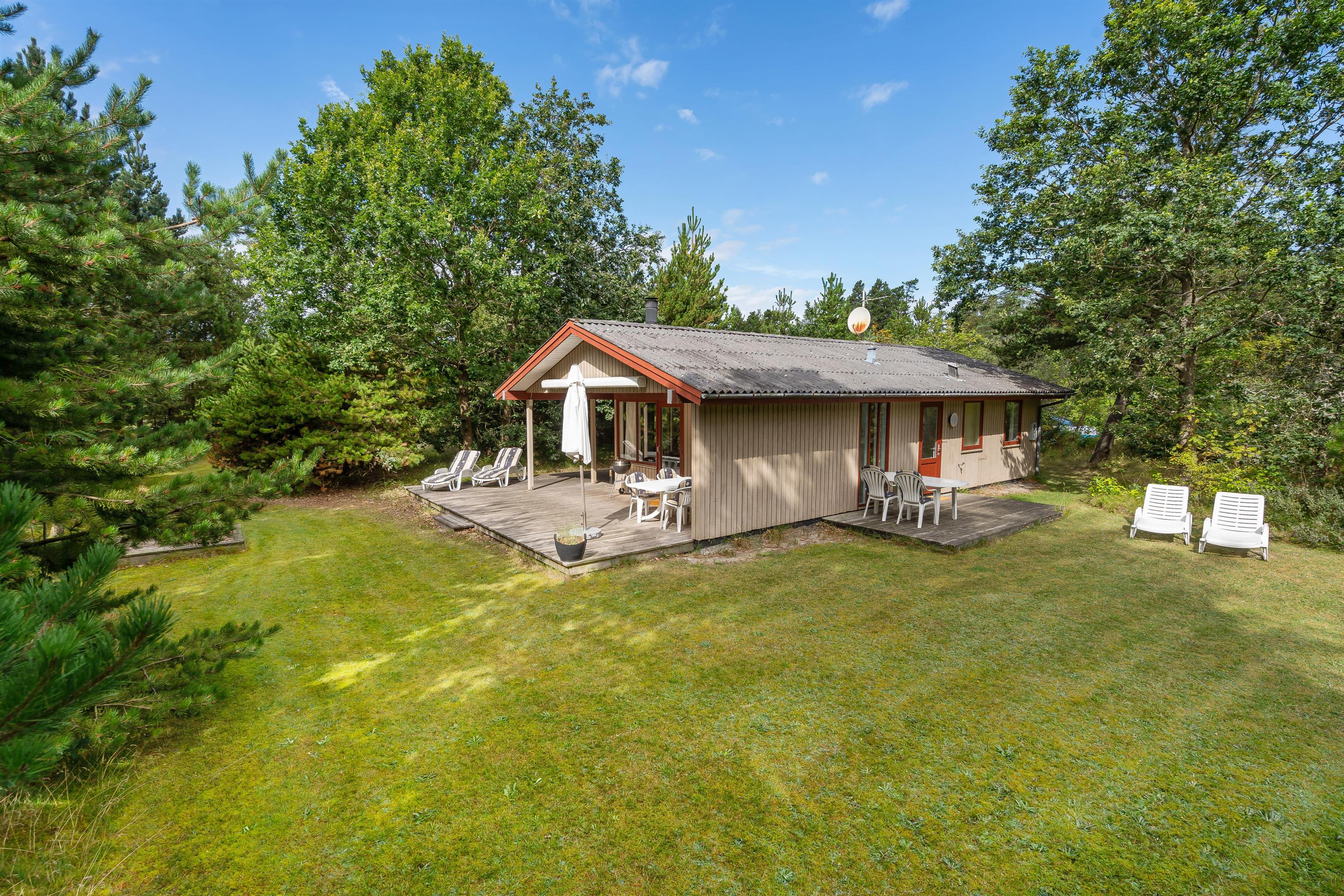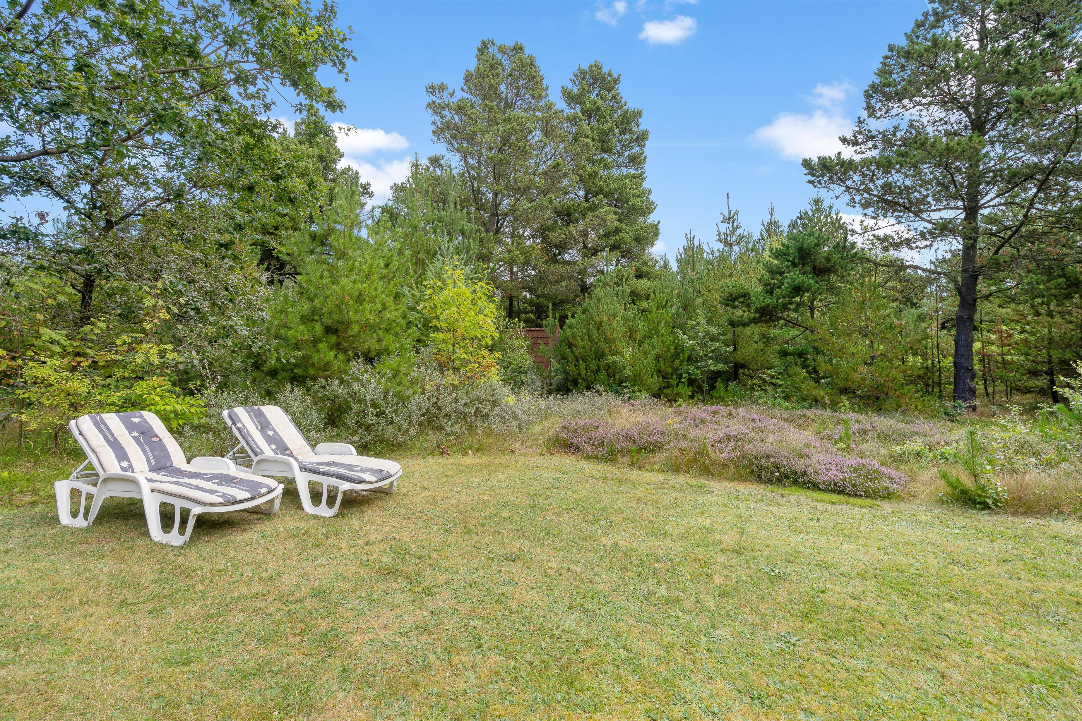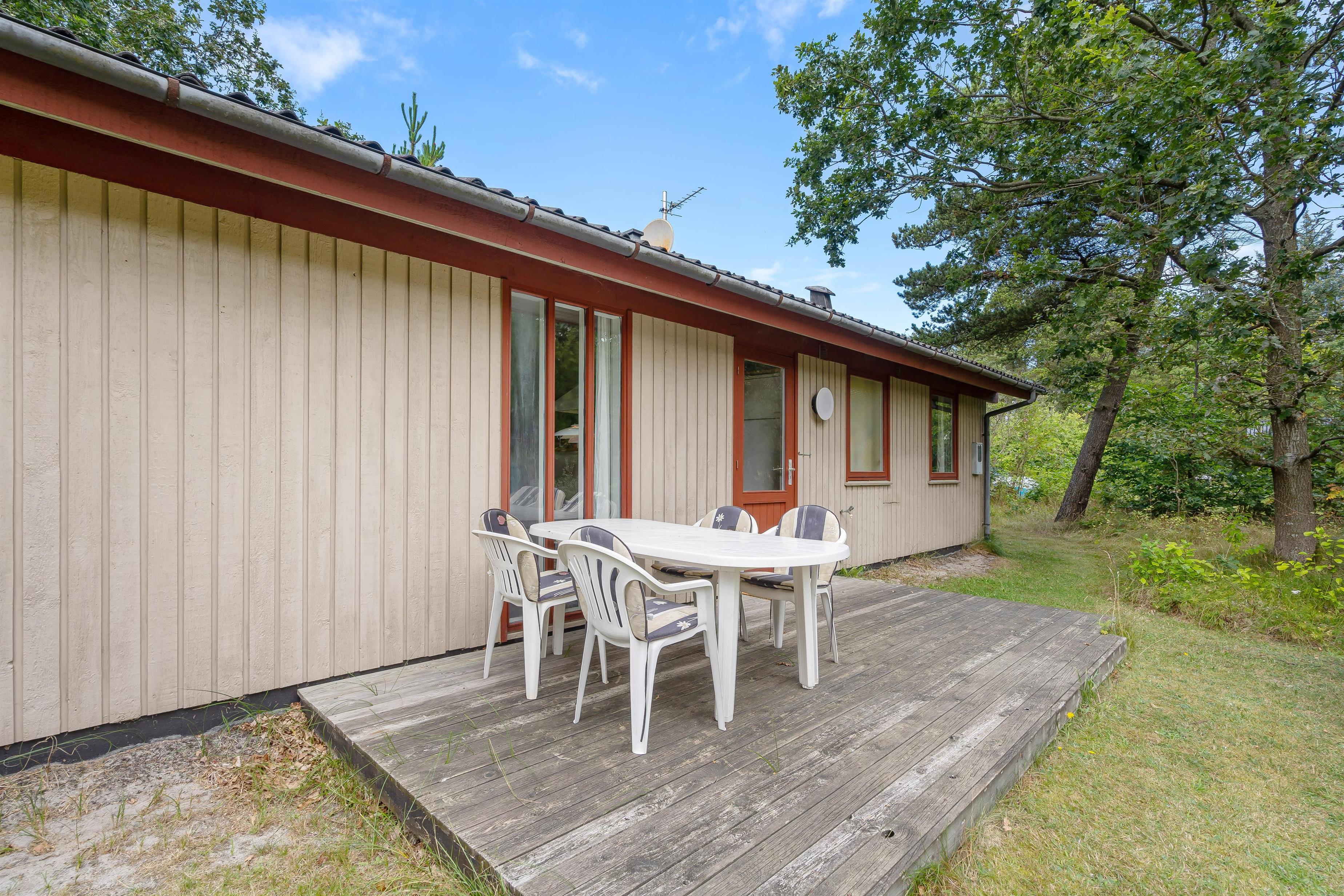 Sommerhusets grund, der er 2.000 kvadratmeter stor, er omgivet af natur, hvilket giver jer masser af privatliv på jeres ferie. På sommerhusets udeområde er der tænkt på både store og små, og derfor kan hele jeres ferieflok nyde de solrige dage udendørs.
