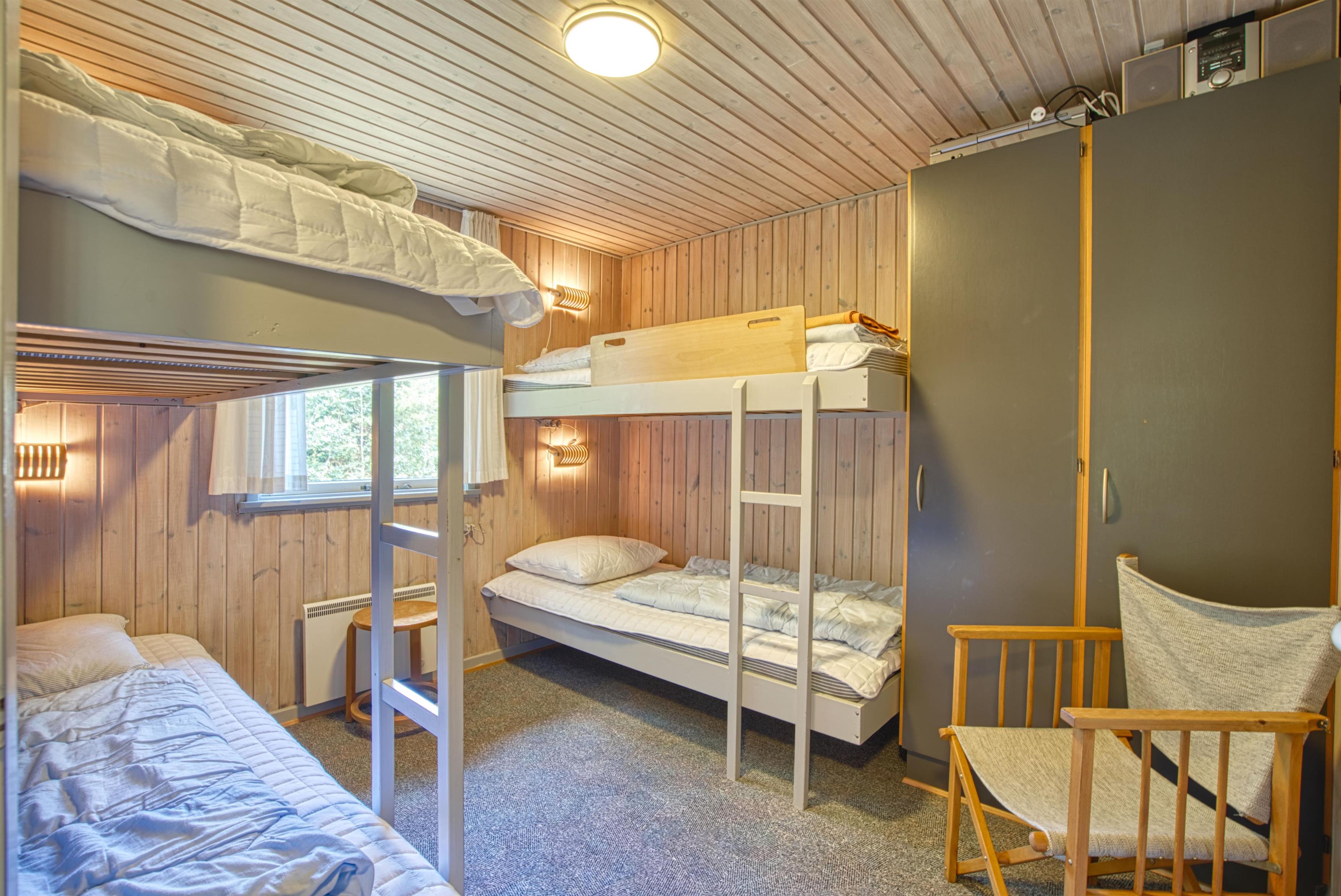 Sommerhusets 60 kvadratmeter byder på 2 gode soveværelser. Det ene soveværelse er indrettet med en dobbeltseng, og det andet er indrettet med en køjeseng. Derudover er der 1 badeværelse i sommerhuset.