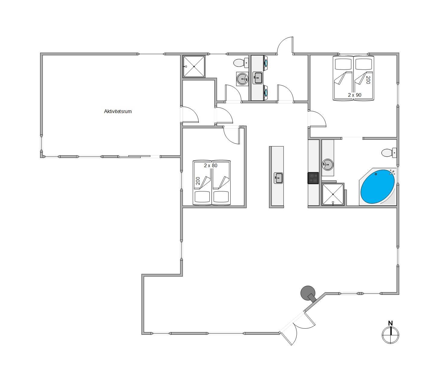 Højdepunktet i feriehuset finder I på det ene af sommerhusets badeværelser. Her står spabadet klar til at forkæle jer med mange afslappende stunder i løbet af jeres ferie, hvor I kan slappe fuldstændig af i det varme, boblende vand.