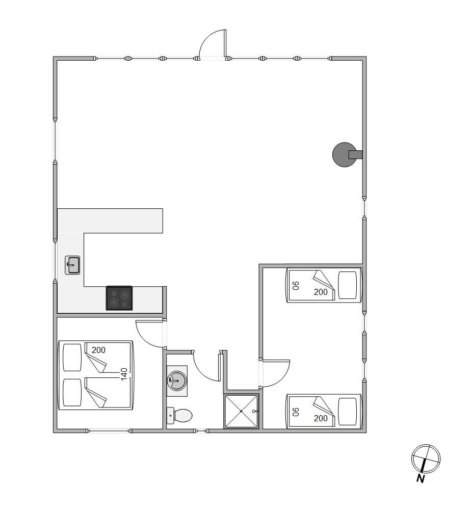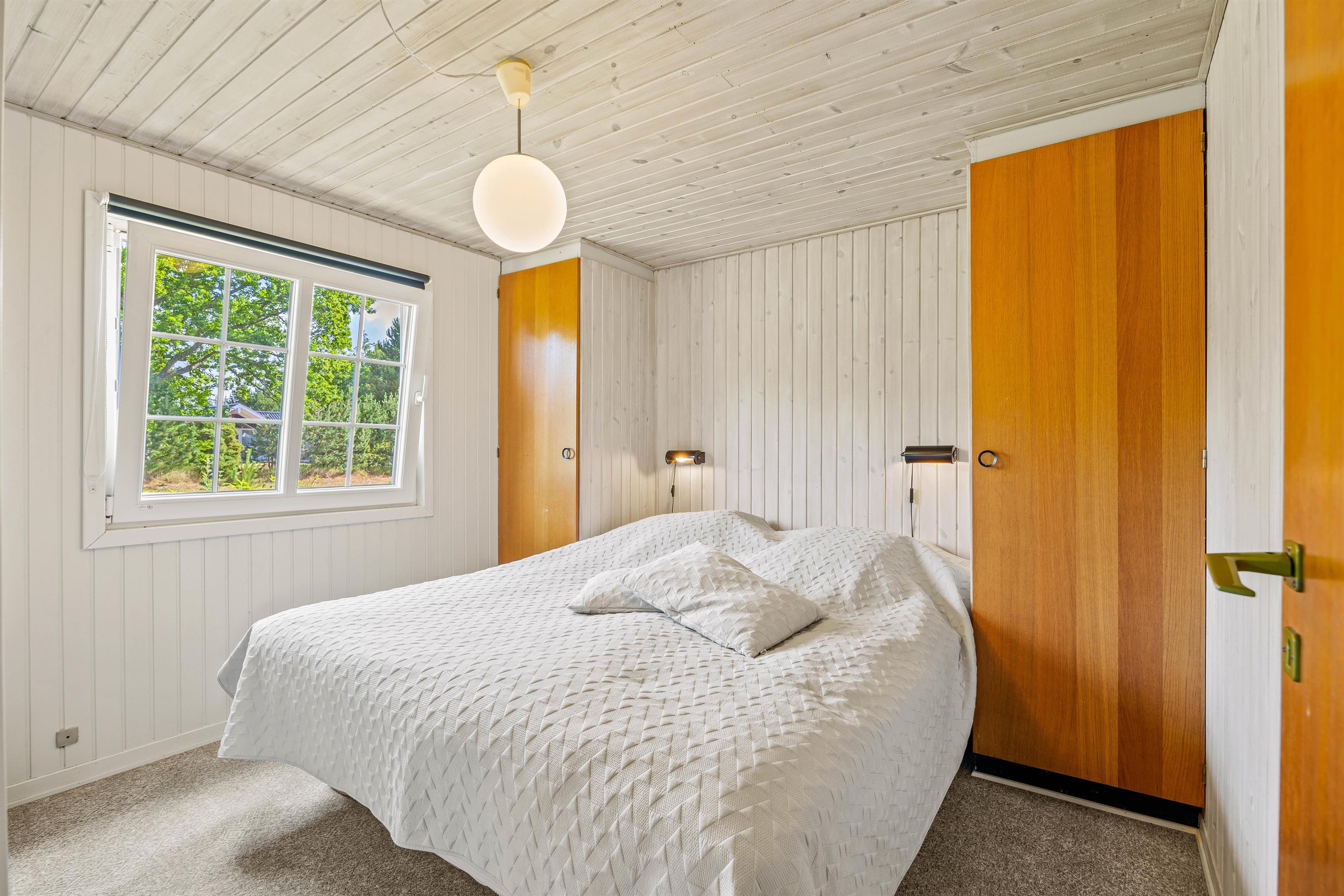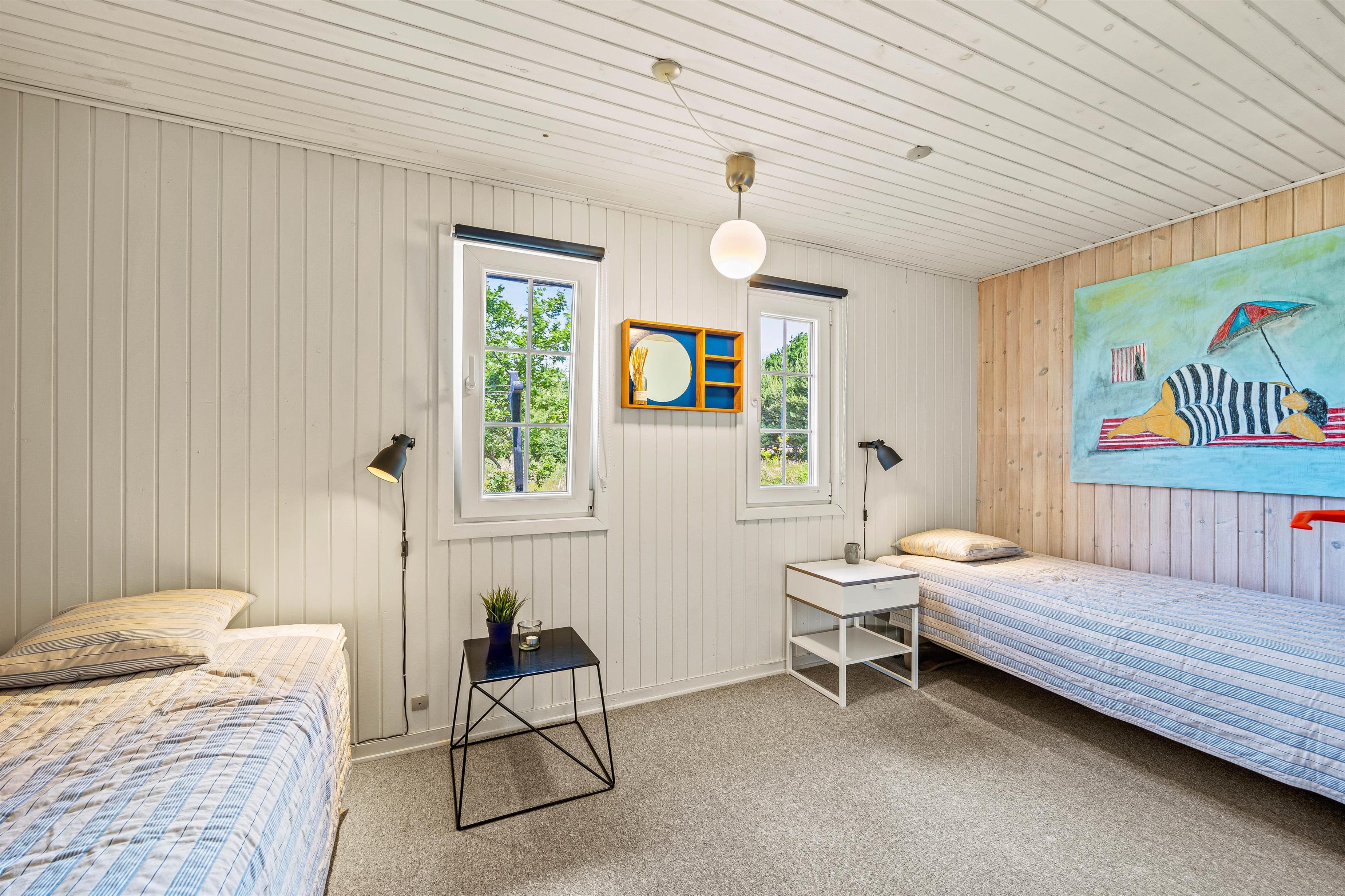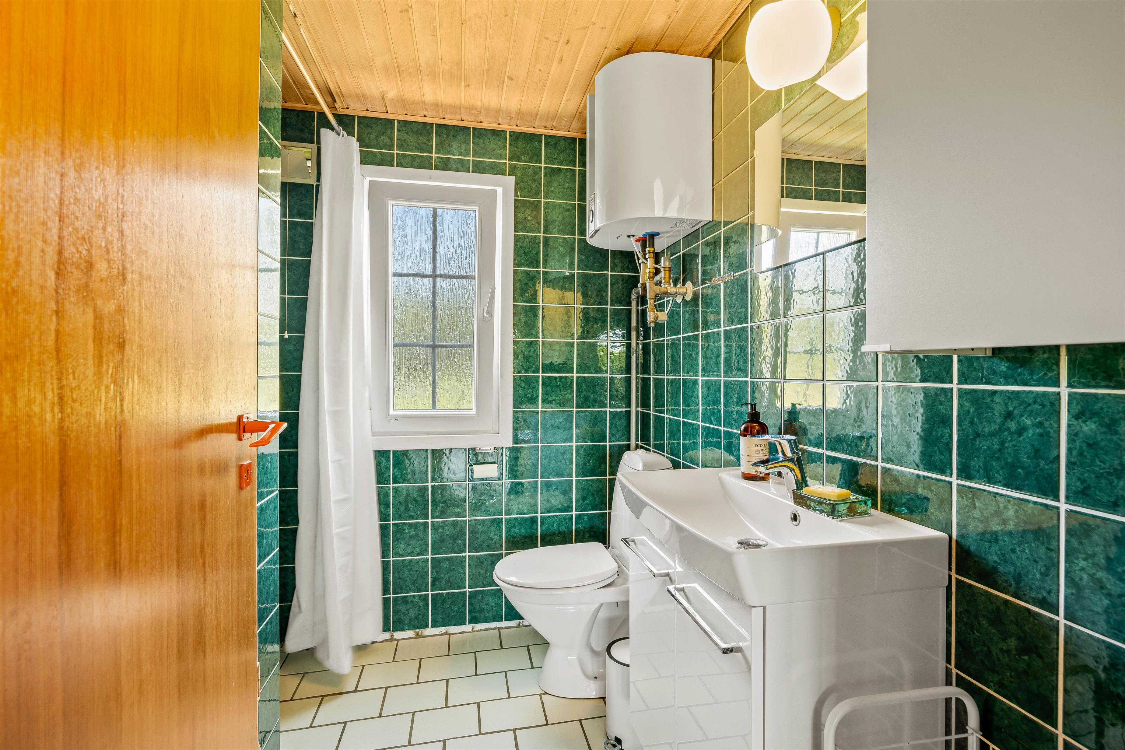 I dette sommerhus er der 73 kvadratmeter. Heraf er der 2 soveværelser, hvoraf den ene er indrettet med en dobbeltseng, og den anden indeholder 2 enkeltsenge. Badeværelserne har gulvvarme, så ingen fryser tæerne fra morgenstunden.