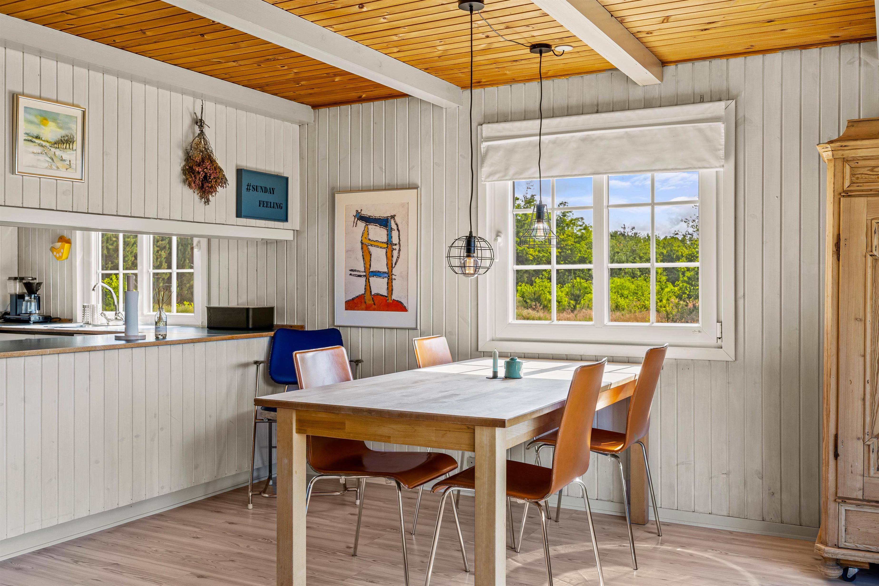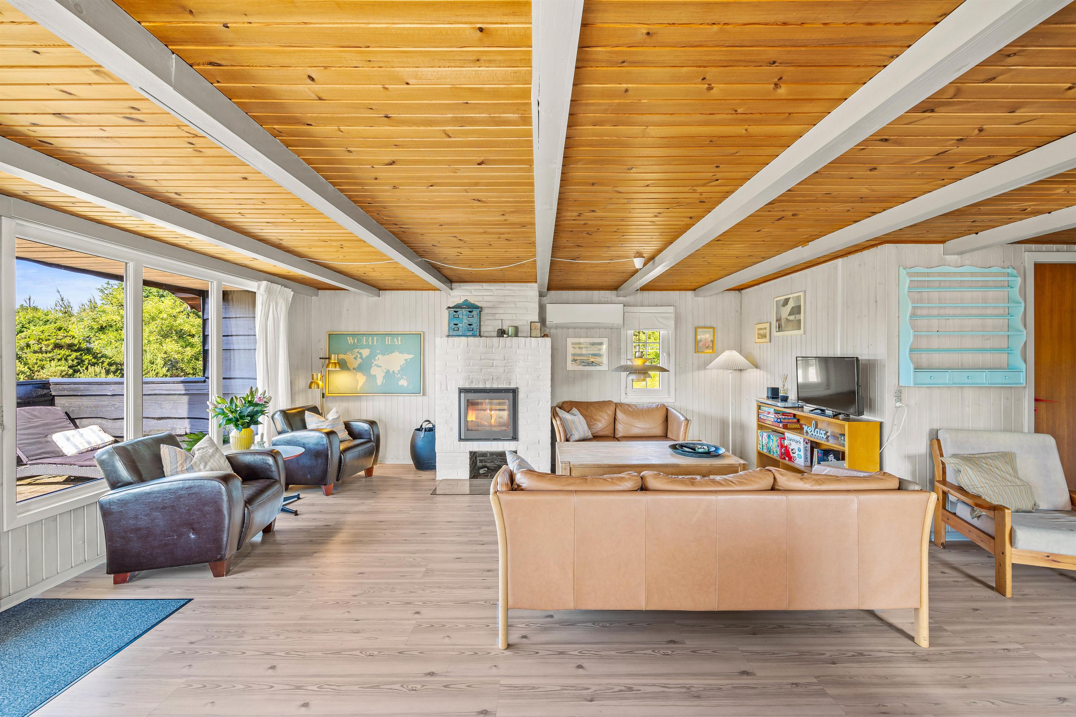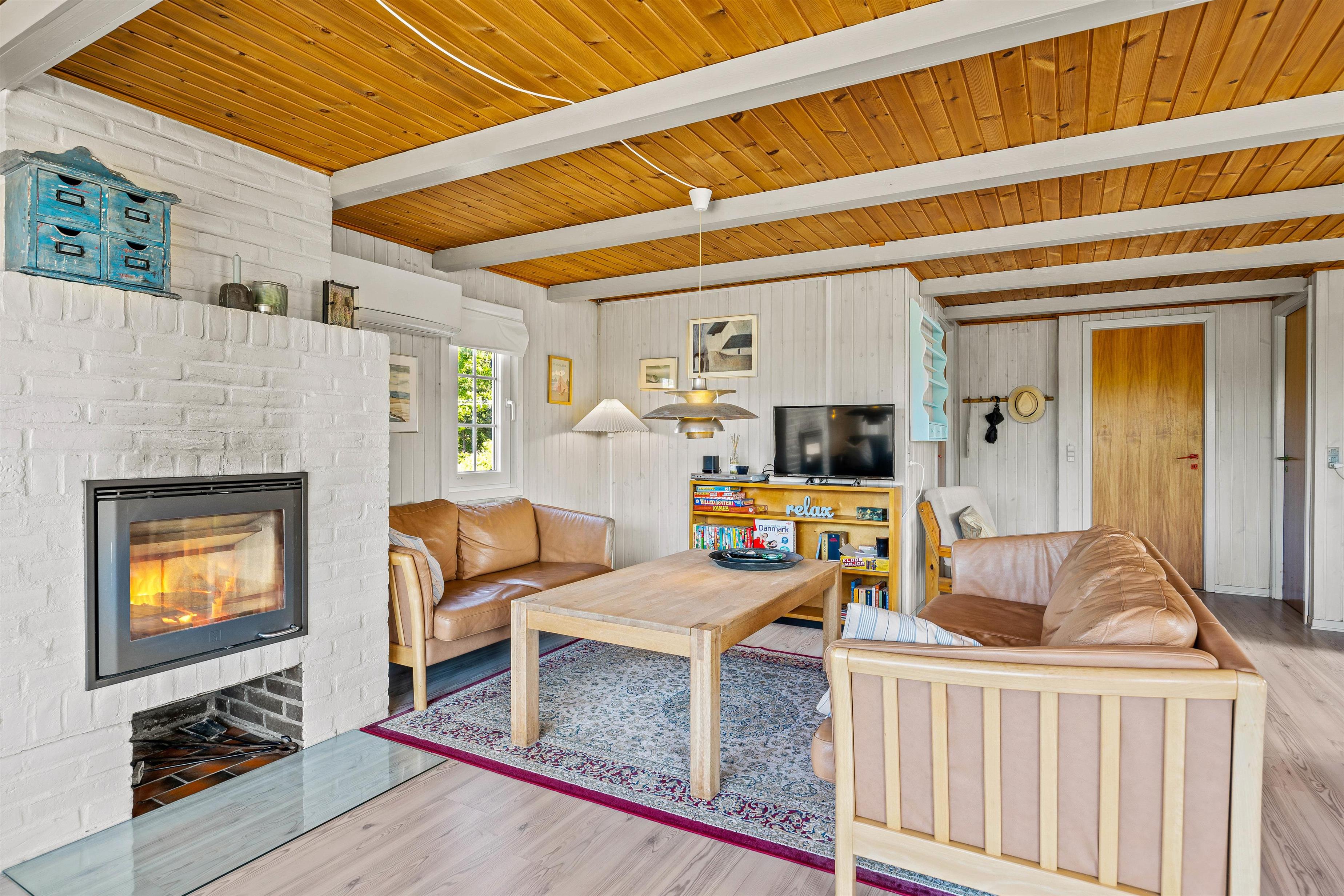 Stuen byder også på en brændeovn, som ikke blot skaber en hyggelige feriestemning, men den spreder også en dejlig varme i rummet. Sommerhuset har også fået installeret en energivenlig varmepumpe, der ellers kan sørge for en behagelig temperatur i sommerhuset.