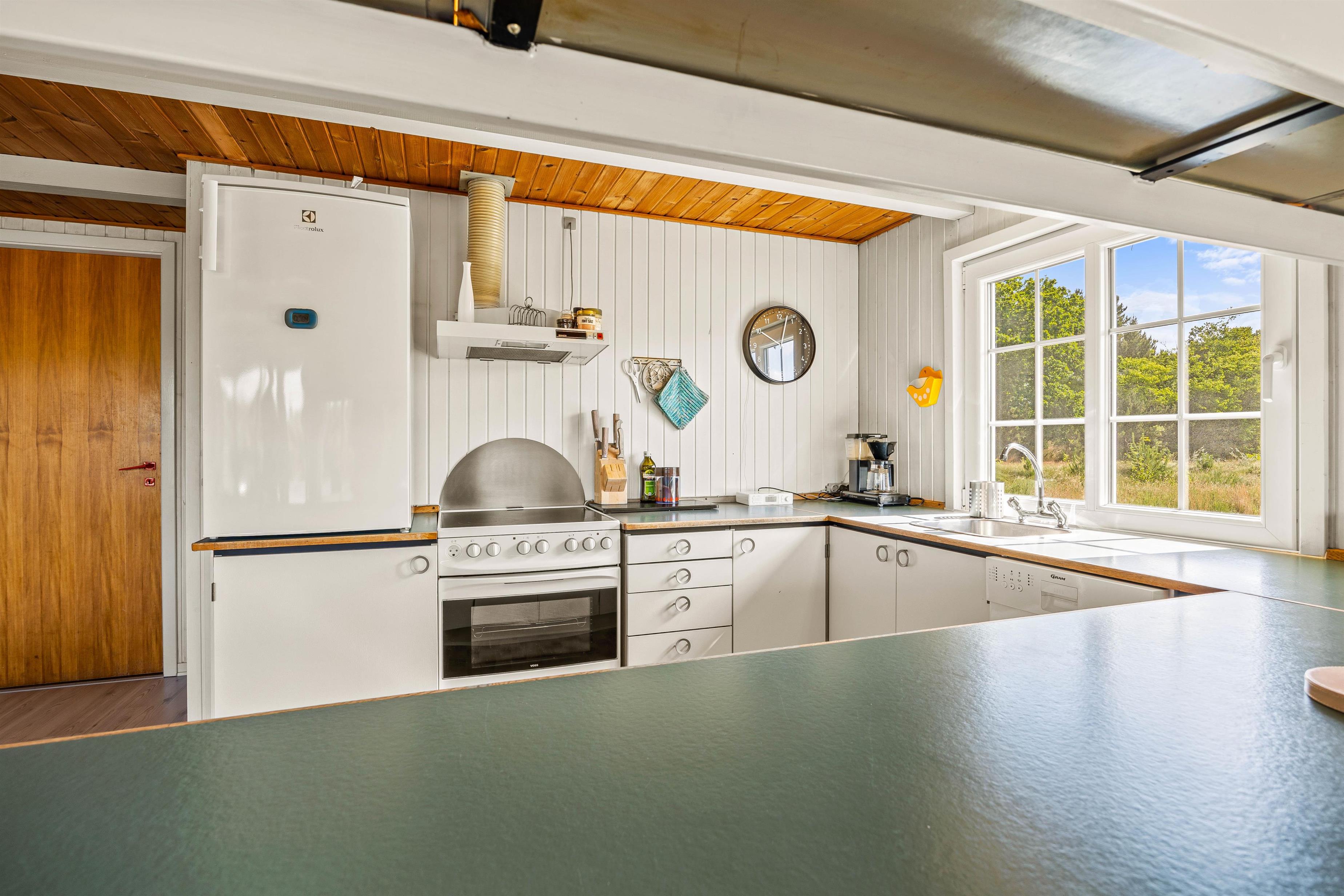 I dette sommerhus på Hyttestien 13 kan I se frem til mange hyggelige feriestunder: Hele ferieflokken kan samles i alrummet, hvor det er muligt at se film i tv’et fra sofaerne, spille underholdende spil omkring spisebordet eller lave mad i det veludstyrede køkken. Opvasken kan tages af sommerhusets opvaskemaskine.