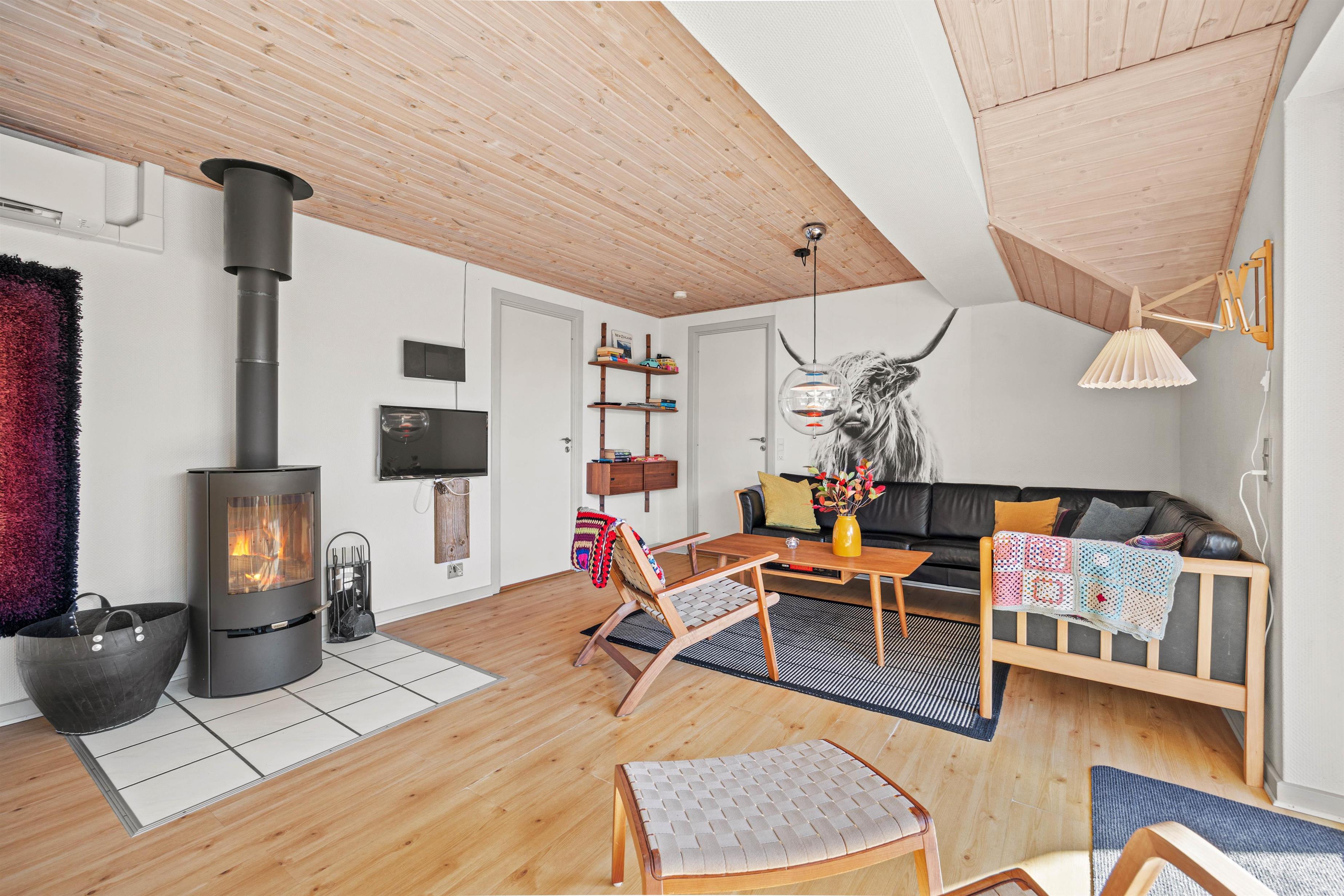 Uanset årstiden, tilbyder dette sommerhus en hyggelig oplevelse for op til 6 personer. Der er en brændeovn, der skaber en varm og indbydende atmosfære på de køligere aftener, samt en skøn spisestue, hvor I nemt kan spille brætspil eller planlægge næste dags aktiviteter. Den indbyggede og energibesparende luft-til-luft varmepumpe sikrer, at temperaturen i sommerhuset er behagelig året rundt.