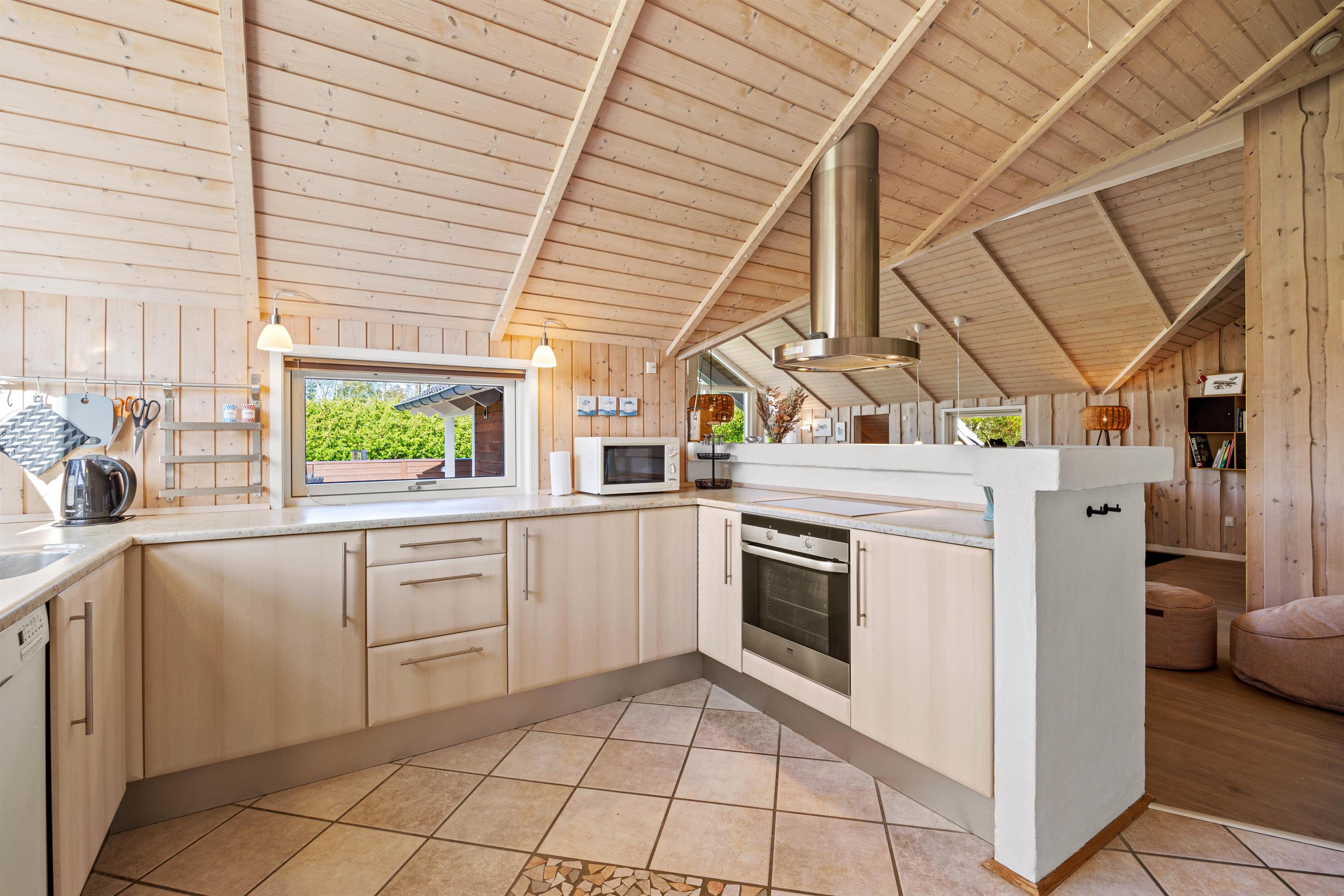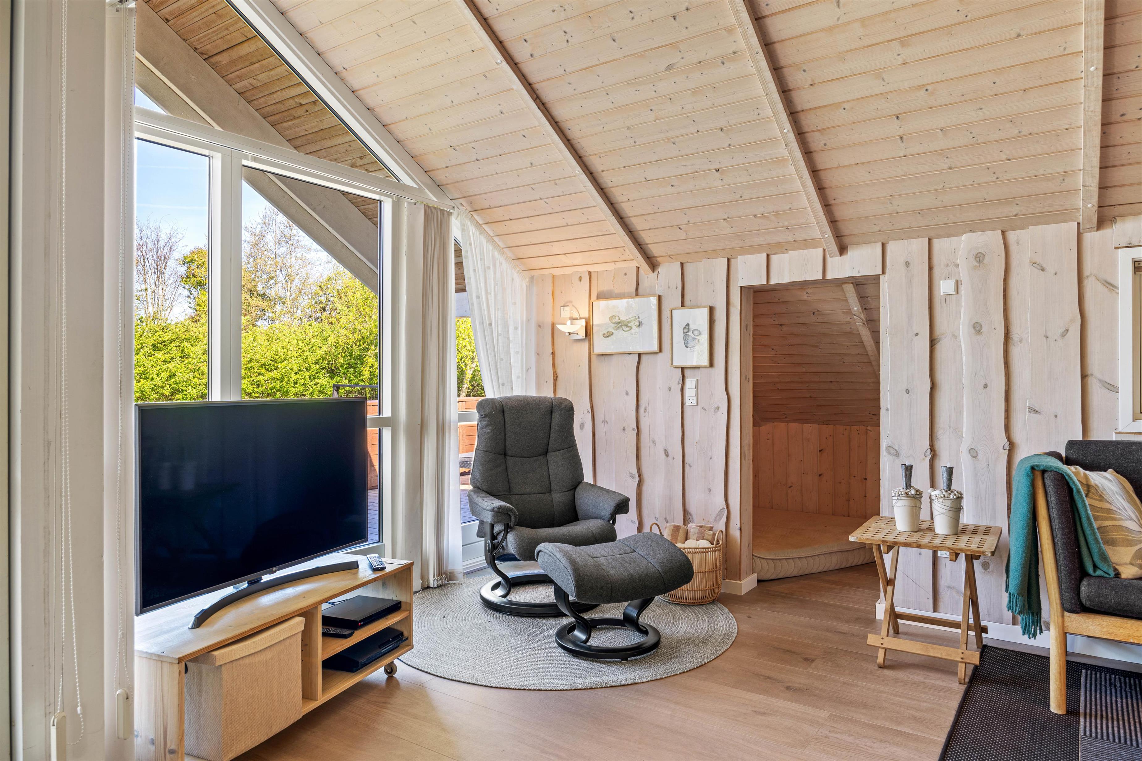 Sommerhusets hjerterum er det lyse og indbydende alrum, hvor køkken, spiseplads og opholdsstue ligger i åben forbindelse. Her er plads til brætspil, fælles madlavning og hyggelige stunder foran brændeovnen, som bidrager med varme og atmosfære på kølige dage. Med både Chromecast og danske tv-kanaler kan I streame jeres yndlingsfilm eller følge med i nyhederne, når dagen går på hæld. I stuen er der desuden en hyggelig alkove til afslapning med en bog eller en lur.