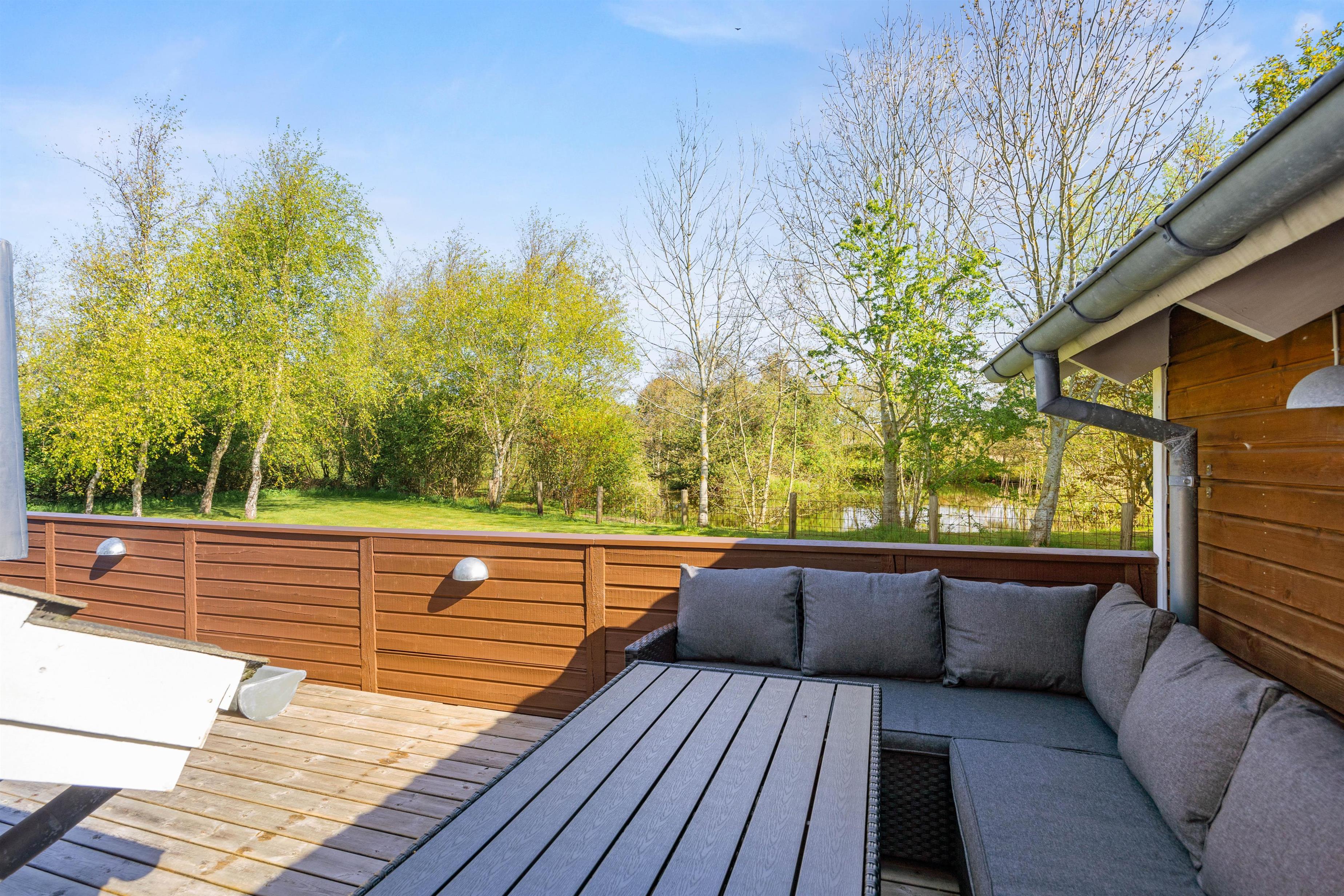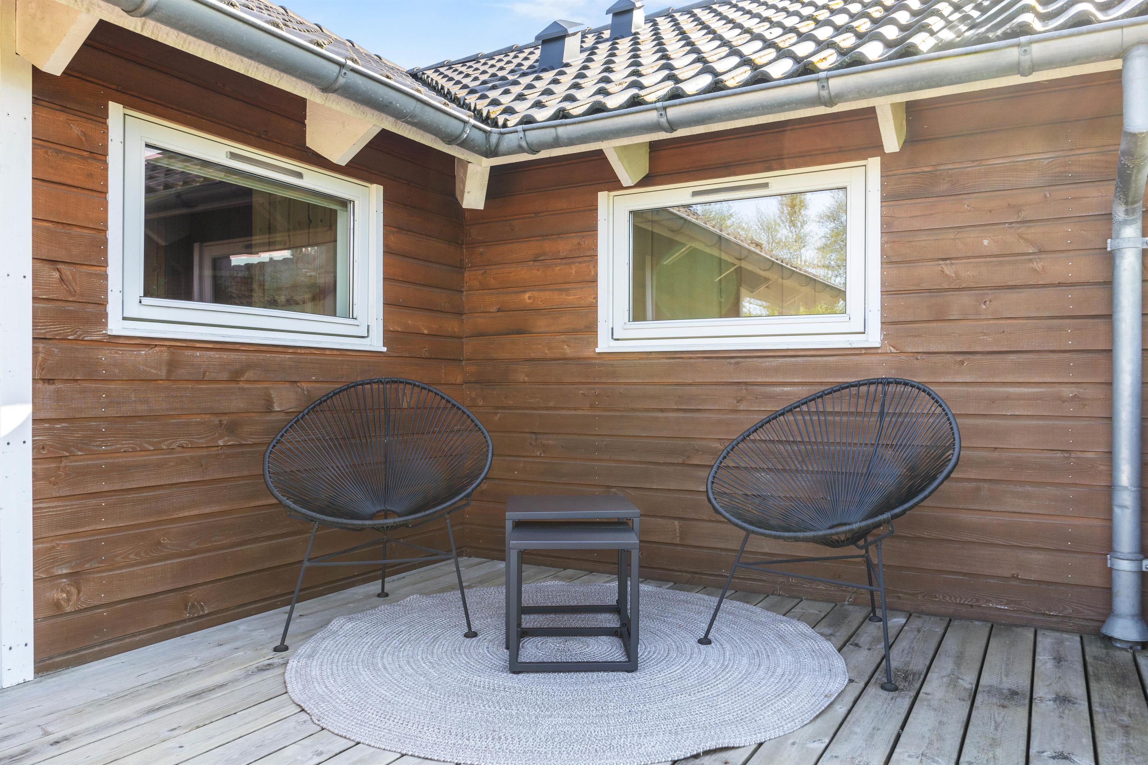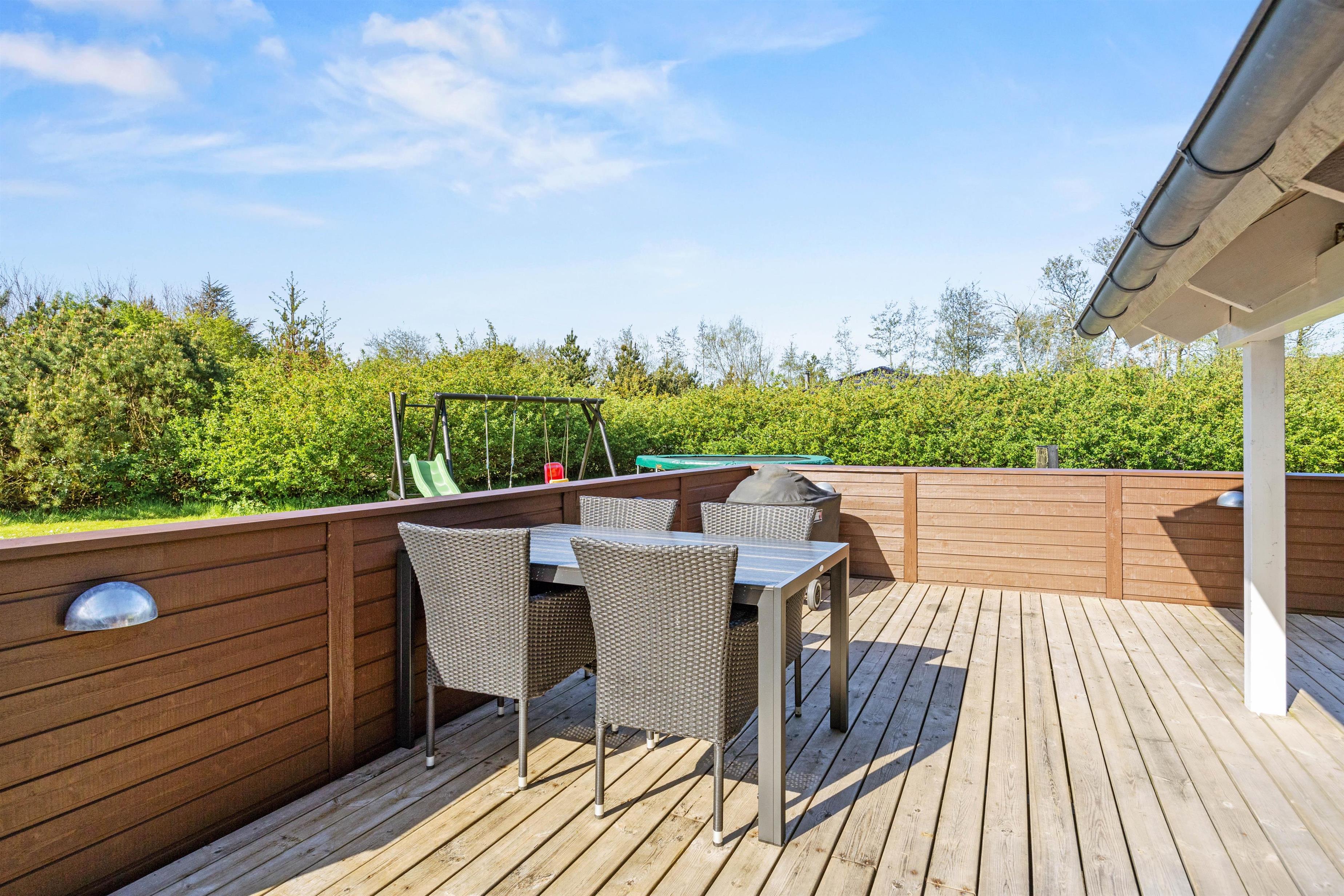 Den lukkede og delvist overdækkede terrasse inviterer til lange feriedage under åben himmel. Her kan I nyde dagens måltider ved havebordet, tænde op i grillen eller finde ro med en kop kaffe i havemøblerne. Uanset om solen skinner, eller skyerne trækker ind, er her gode rammer for udeliv i det vestjyske.