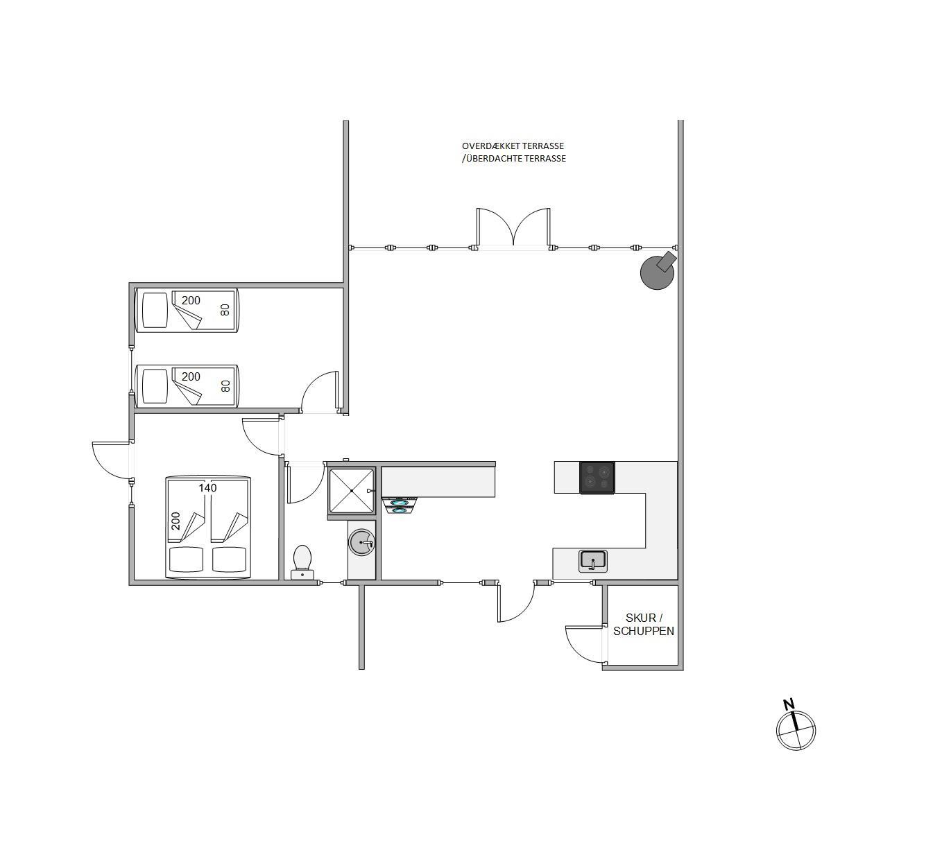 Sommerhusets 57m2 er indrettet yderst godt, og rummer også et badeværelse med varme i gulvet. Det flotte lysindfald fra tagvinduet gør rummet endnu mere lyst og rummeligt. De 4 sovepladser er fordelt over 2 rummelige soveværelser. Det ene soveværelse er udstyret med en dobbeltseng, imens det andet soveværelse er udstyret med 2 enkeltsenge.