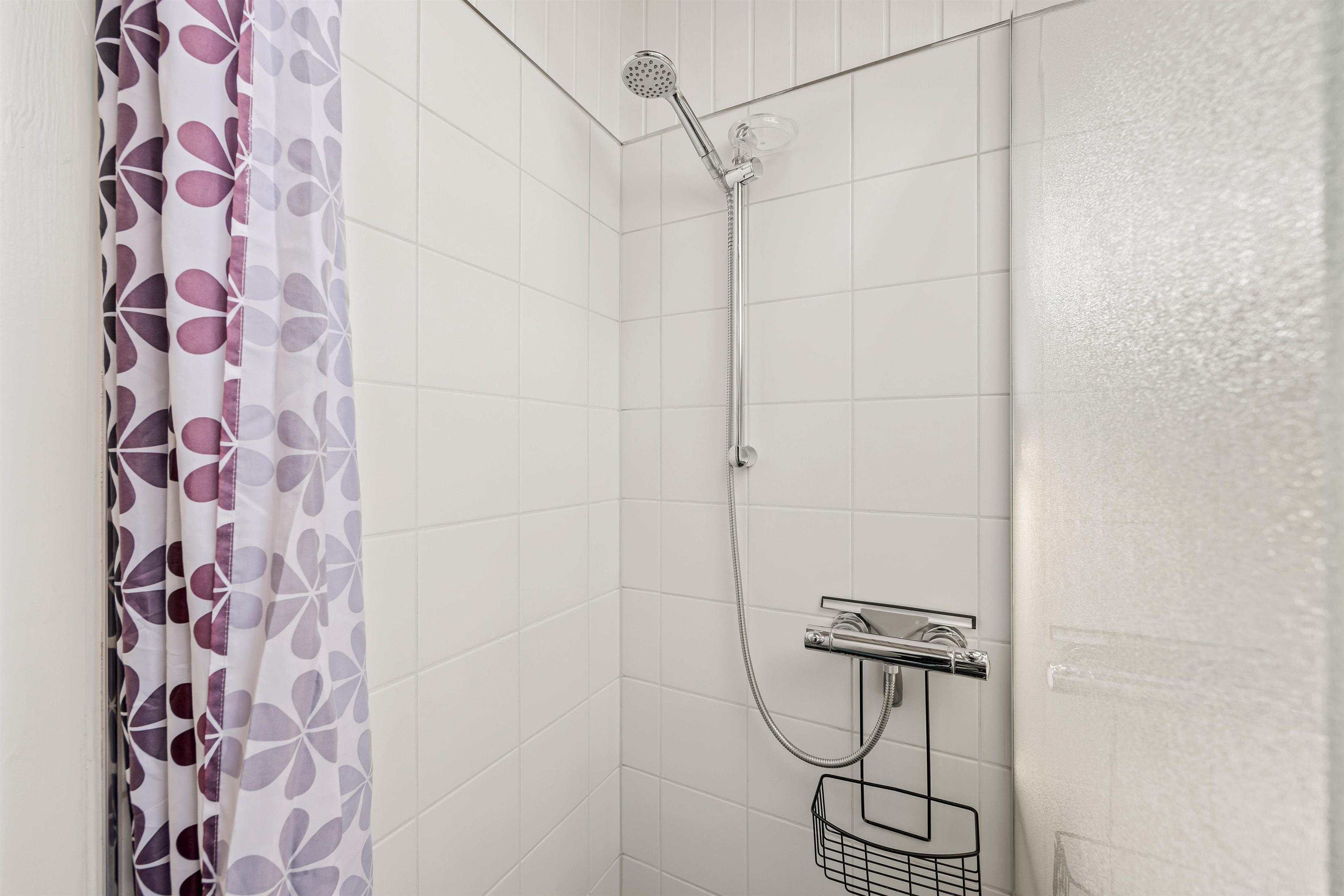 Den lette, lyse og nordisk sommerhusstil med naturlige farver og materialer, mærkes straks, når I kommer ind. Entreen er praktisk indrettet med en opbevaringsvæg, der grænser op til køkkenet, og rummer opvaskemaskine, mikroovn, fryser på 80L, men også vaskemaskine og tørretumbler.