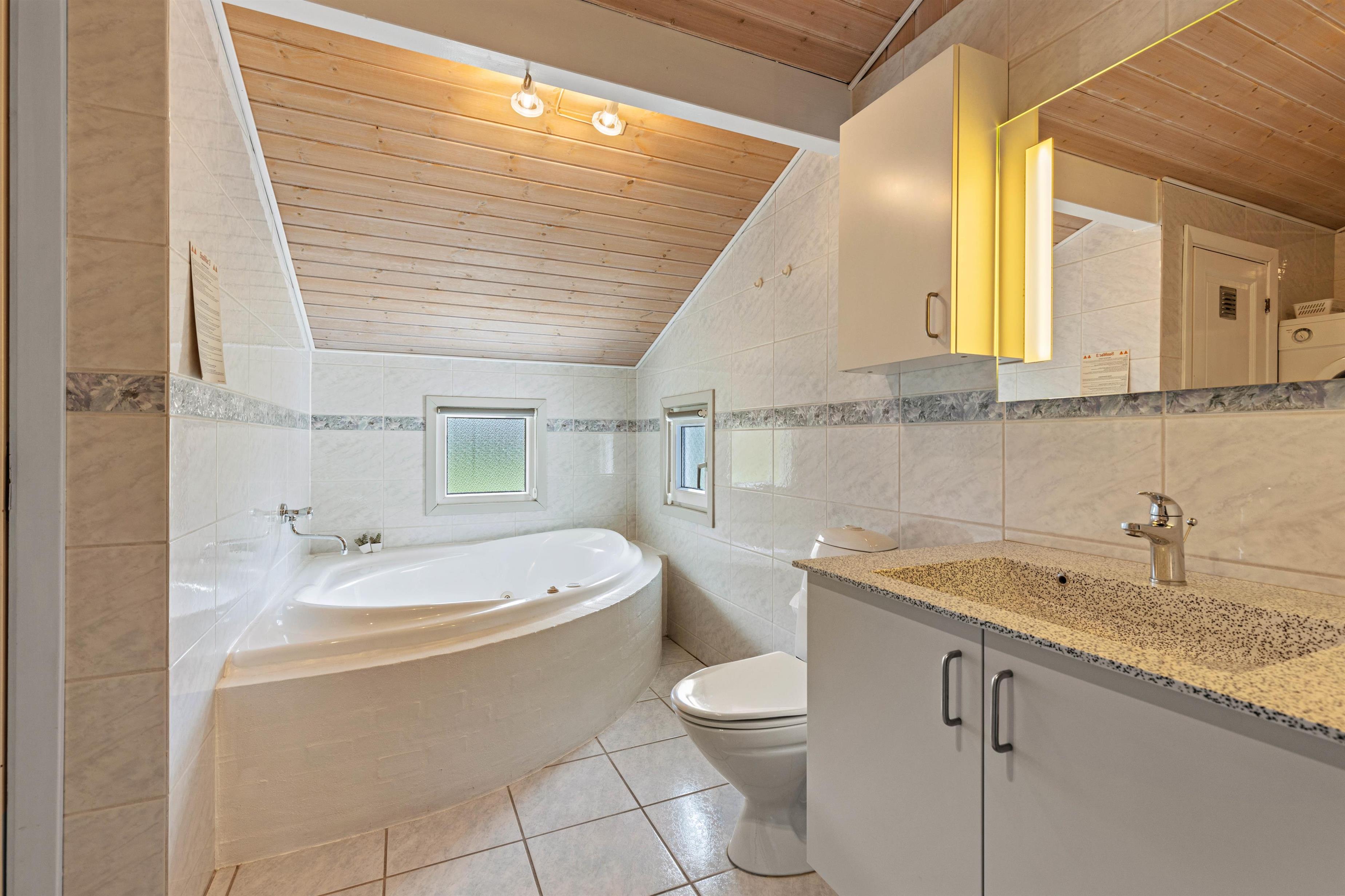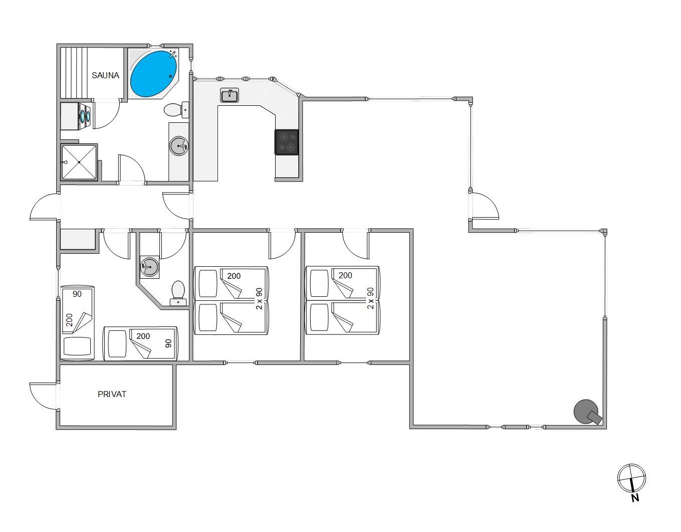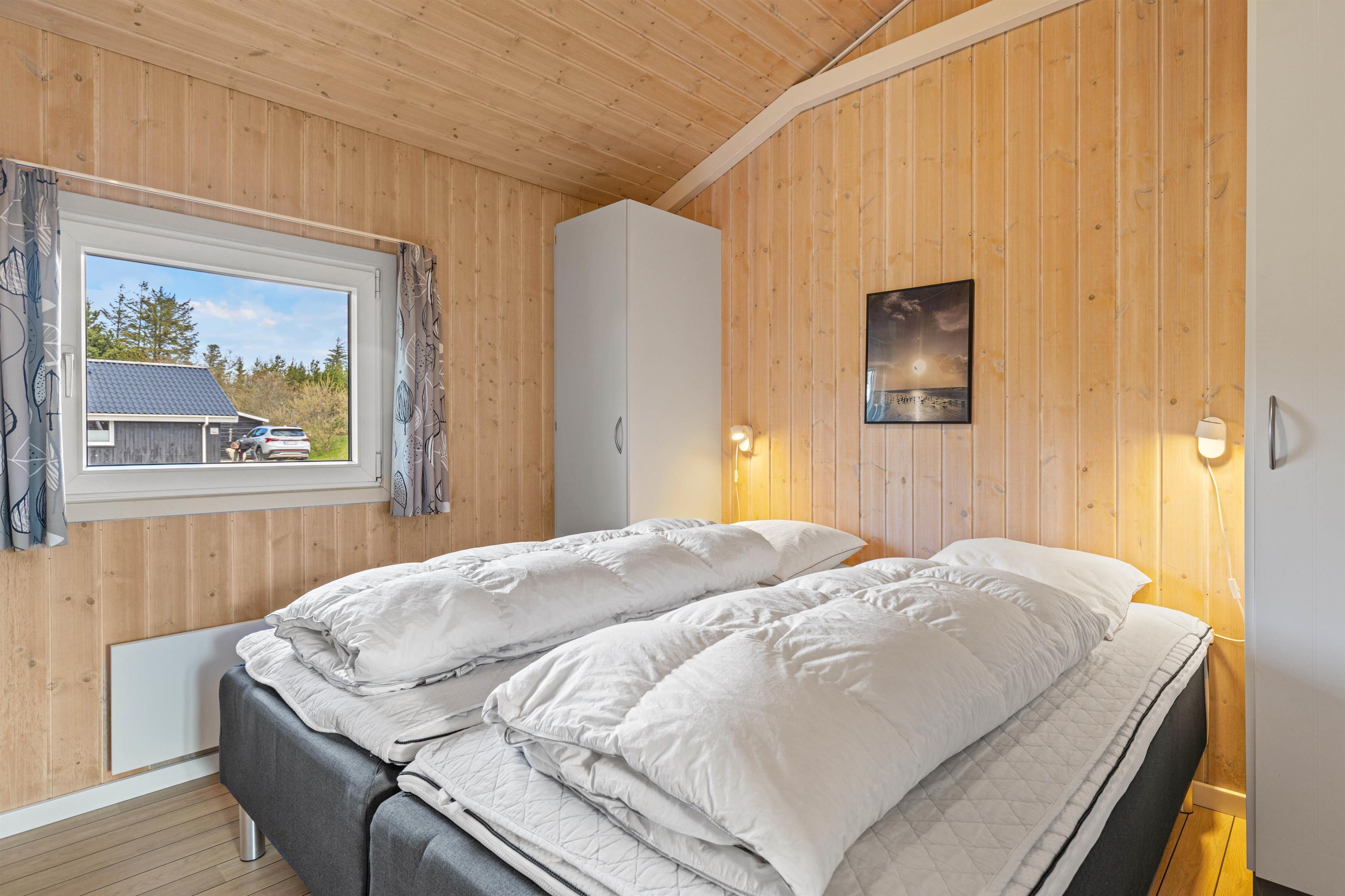 En anden mulighed er at udnytte wellnessområdet ved det store badeværelse til en skøn tur i sauna og spa, den helt optimale mulighed for afslapning, før I skal sove godt ud i de komfortable senge. Her er 3 soveværelser, 2 med dobbeltsenge og 1 værelse med 2 enkeltsenge. Læg mærke til, at den friske vesterhavsluft gør noget godt for nattesøvnen. Både badeværelset og gæstetoilettet har gulvvarme, så I behøver ikke at få kolde fødder under tandbørstningen.