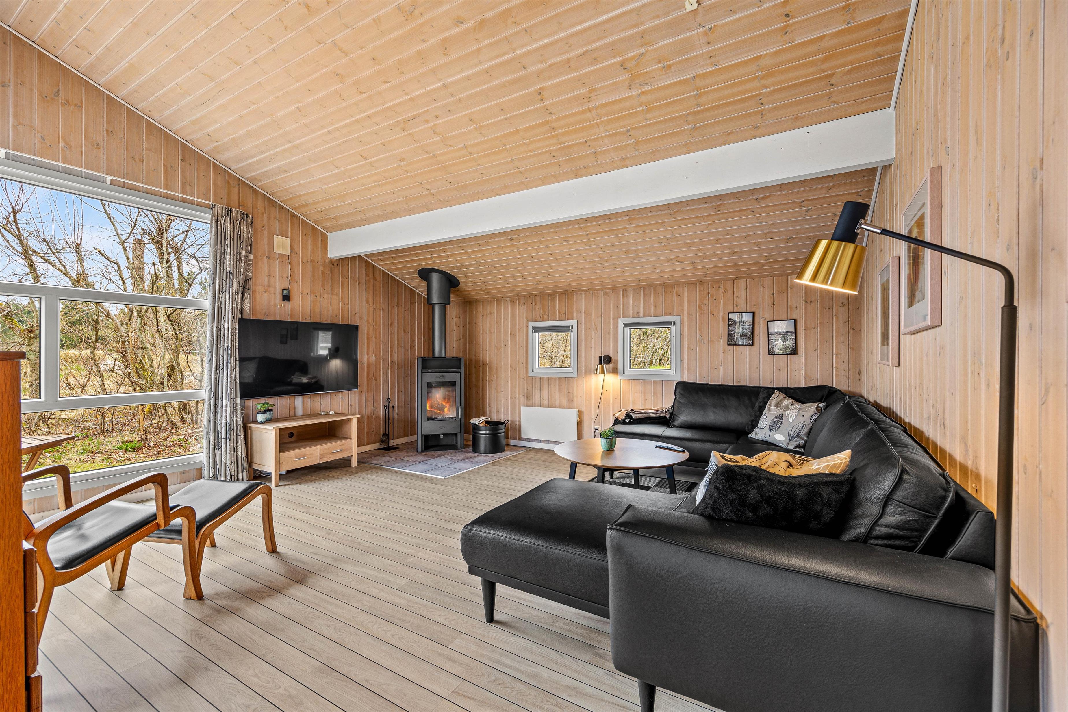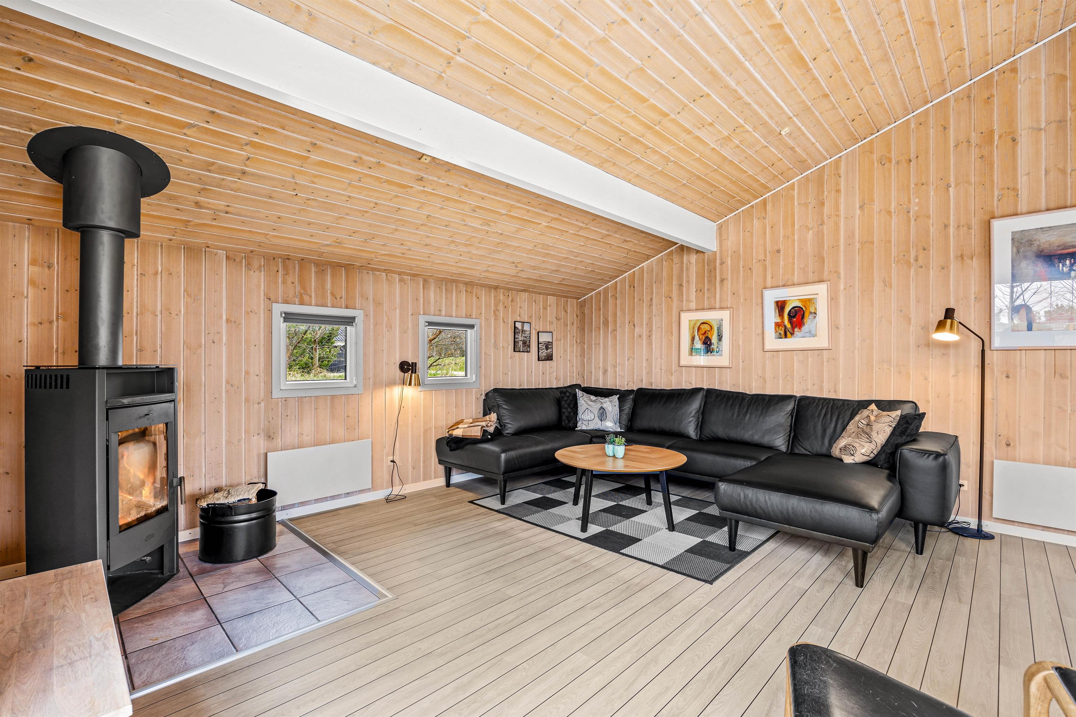 Den charmerende indretning og det fine lysindfald i opholdsområdet giver straks en skøn feriestemning. Her kan I arrangere en fælles madlavningsaften i det åbne køkken, hvorefter I kan samles omkring spisebordet og nyde resultaterne. Efter middagen kan I spille brætspil ved spisebordet, eller I kan rykke ind i stuen og slappe af i sofaen, imens ilden knitrer i brændeovnen.