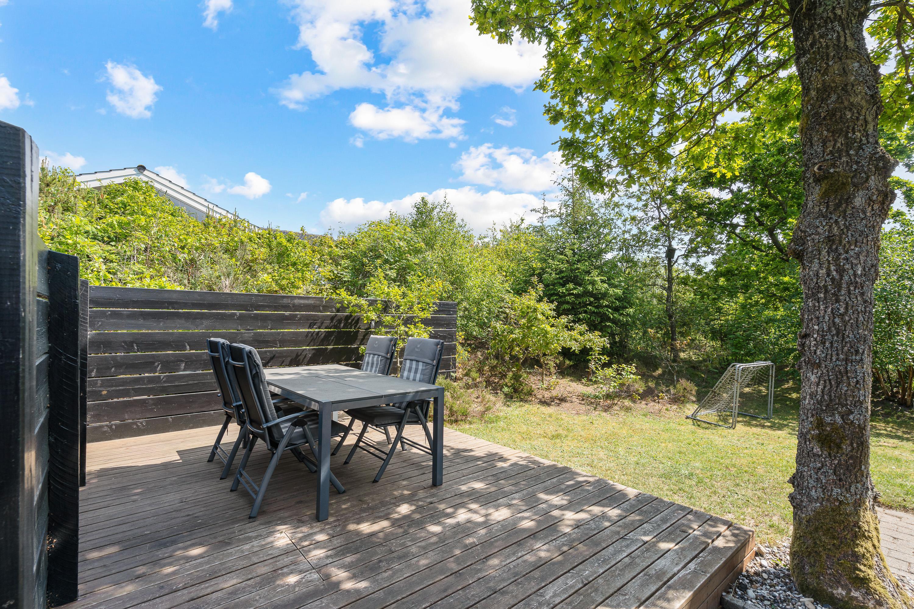 De to dejlige terrasser indbyder til solbadning og afslapning. Den ene terrasse er til dels overdækket, så der er altid mulighed for en hyggelig grillaften, også når vejret ikke helt spiller med. Træerne på grunden og den afskærmede terrasse giver til enhver tid ro og læ, det er det perfekte sted til virkelig afslapning, tag en lang morfar på solvognen og nyd lyden af fuglekvidre.