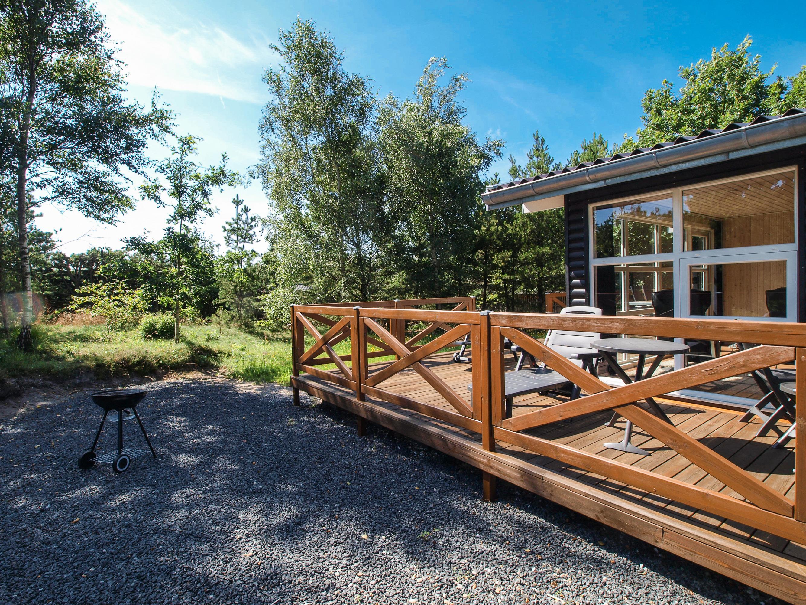 På den skønne terrasse står de gode havemøbler klar fra start. Her kan I starte dagen ud med morgenmad og fuglesang foroven, mens solen varmer jer. Børnene kan få lov til at tumle på græsplænen og bygge sandslotte i sandkassen, mens I helt uforstyrret nyder feriefreden. Hele grunden er omgivet af høje træer, hvilket giver jer masser af privatsfære.