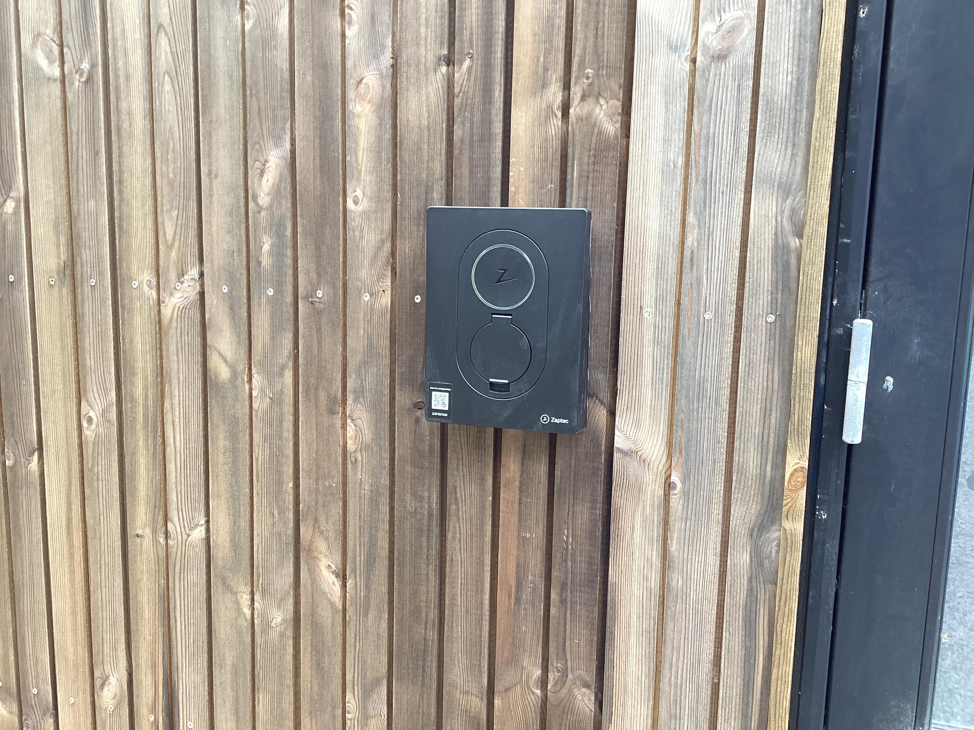 Ved sommerhuset er der ladestander til elbil – eget kabel medbringes.