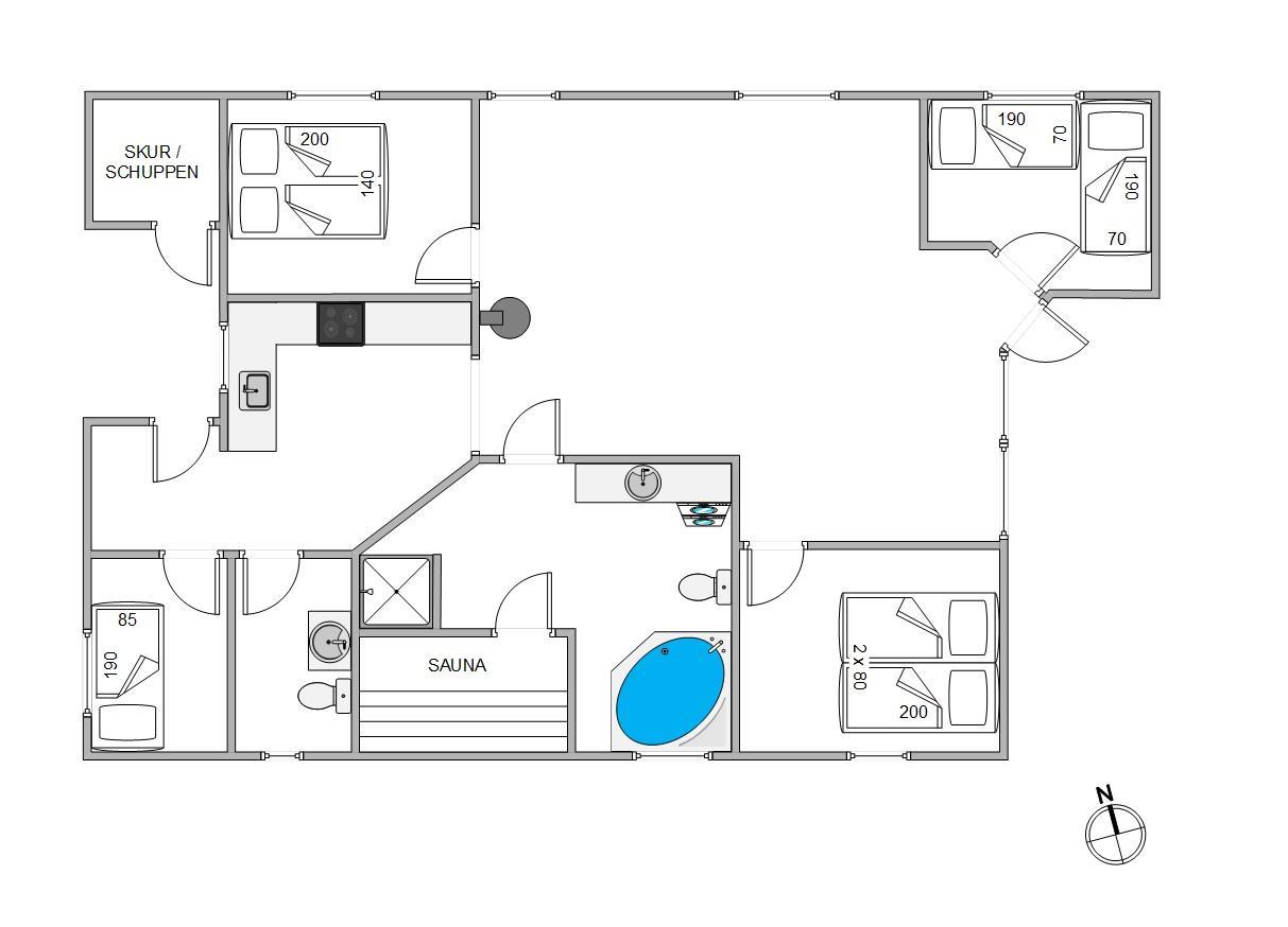 Her er I sikret en ekstra luksuriøs ferie med jeres egen lille wellnesoase på badeværelset. Her står saunaen og spabadet klar til at sørge for jer efter en lang dag ud i den friske luft.